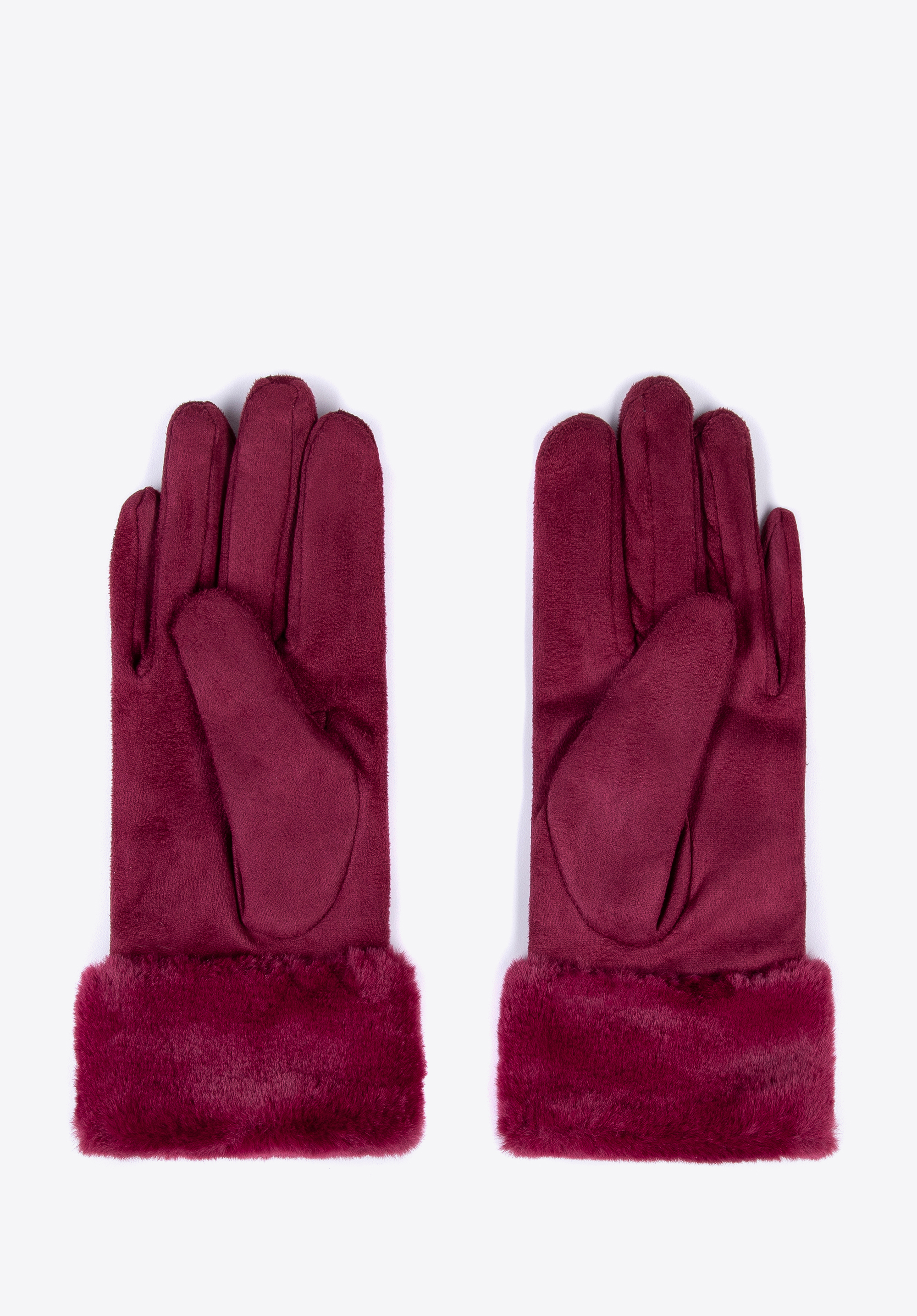Damskie rękawiczki ze sztucznym futerkiem dopełnią jesienno-zimowe stylizacje, szczególnie w połączeniu z płaszczem lub kurtką o miękkim wykończeniu. Przyjemne w dotyku tworzywo oraz dekoracyjne futerko przy nadgarstku nadają im kobiecego charakteru i zapewniają komfort noszenia.