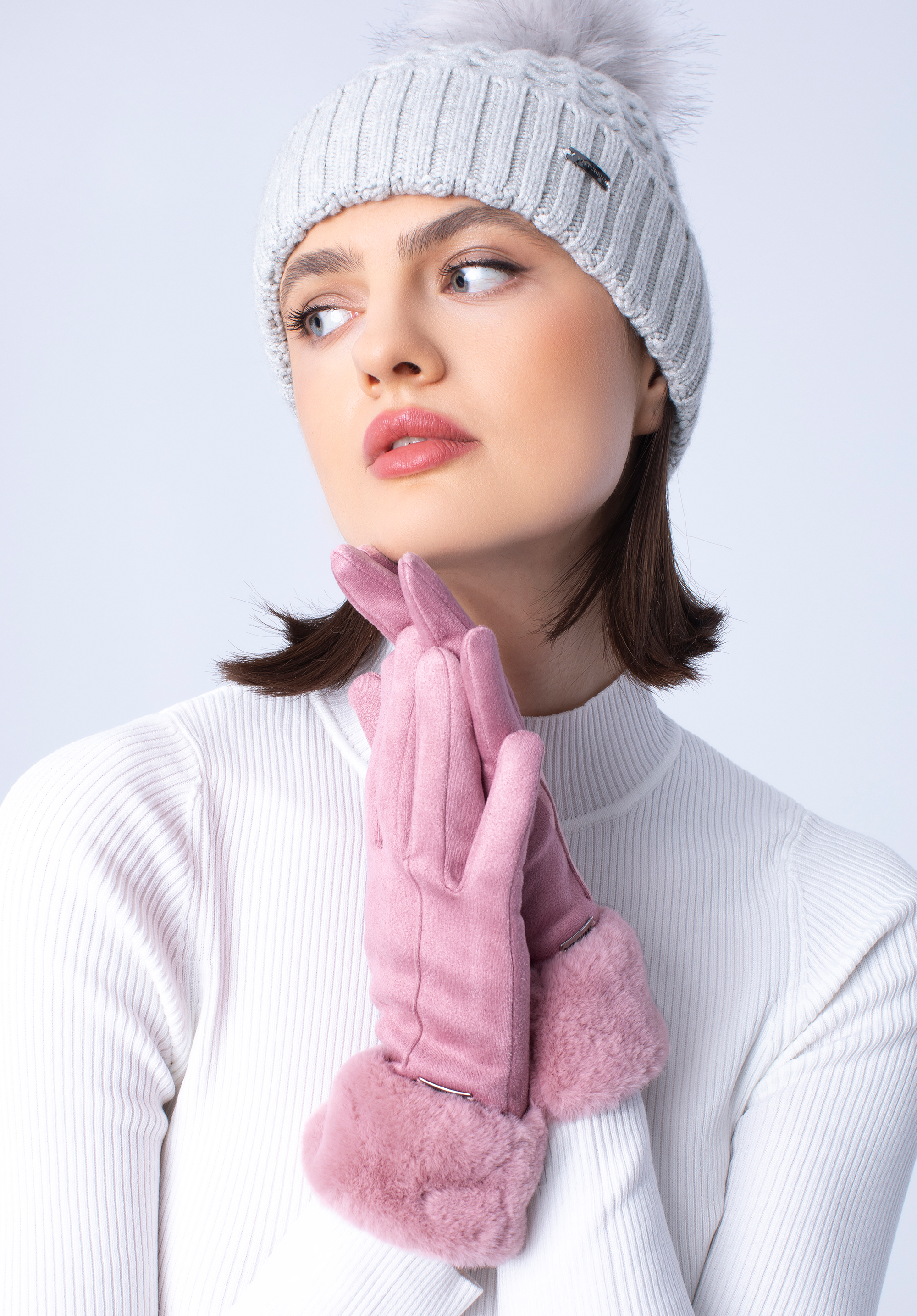 Damskie rękawiczki ze sztucznym futerkiem dopełnią jesienno-zimowe stylizacje, szczególnie w połączeniu z płaszczem lub kurtką o miękkim wykończeniu. Przyjemne w dotyku tworzywo oraz dekoracyjne futerko przy nadgarstku nadają im kobiecego charakteru i zapewniają komfort noszenia.