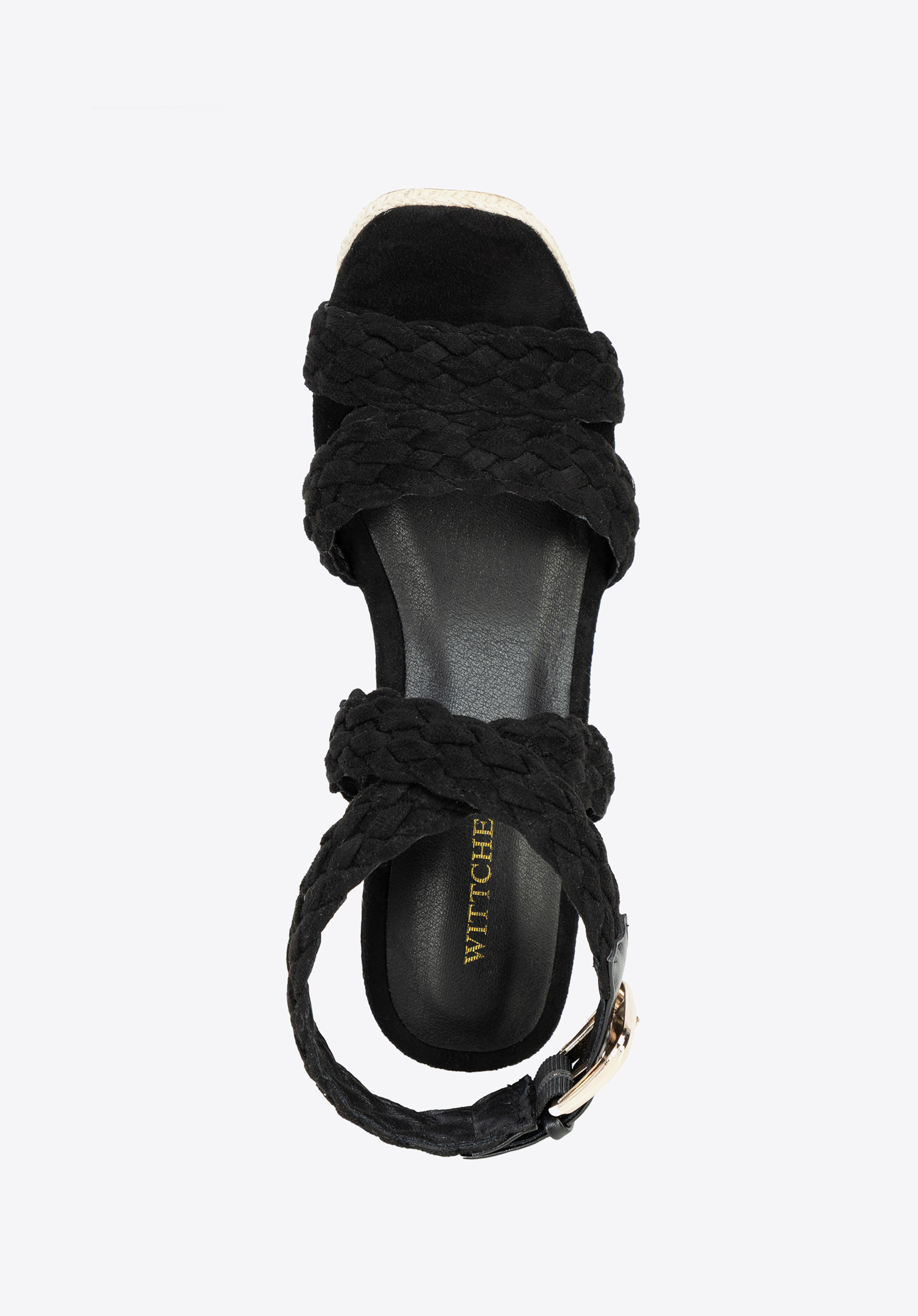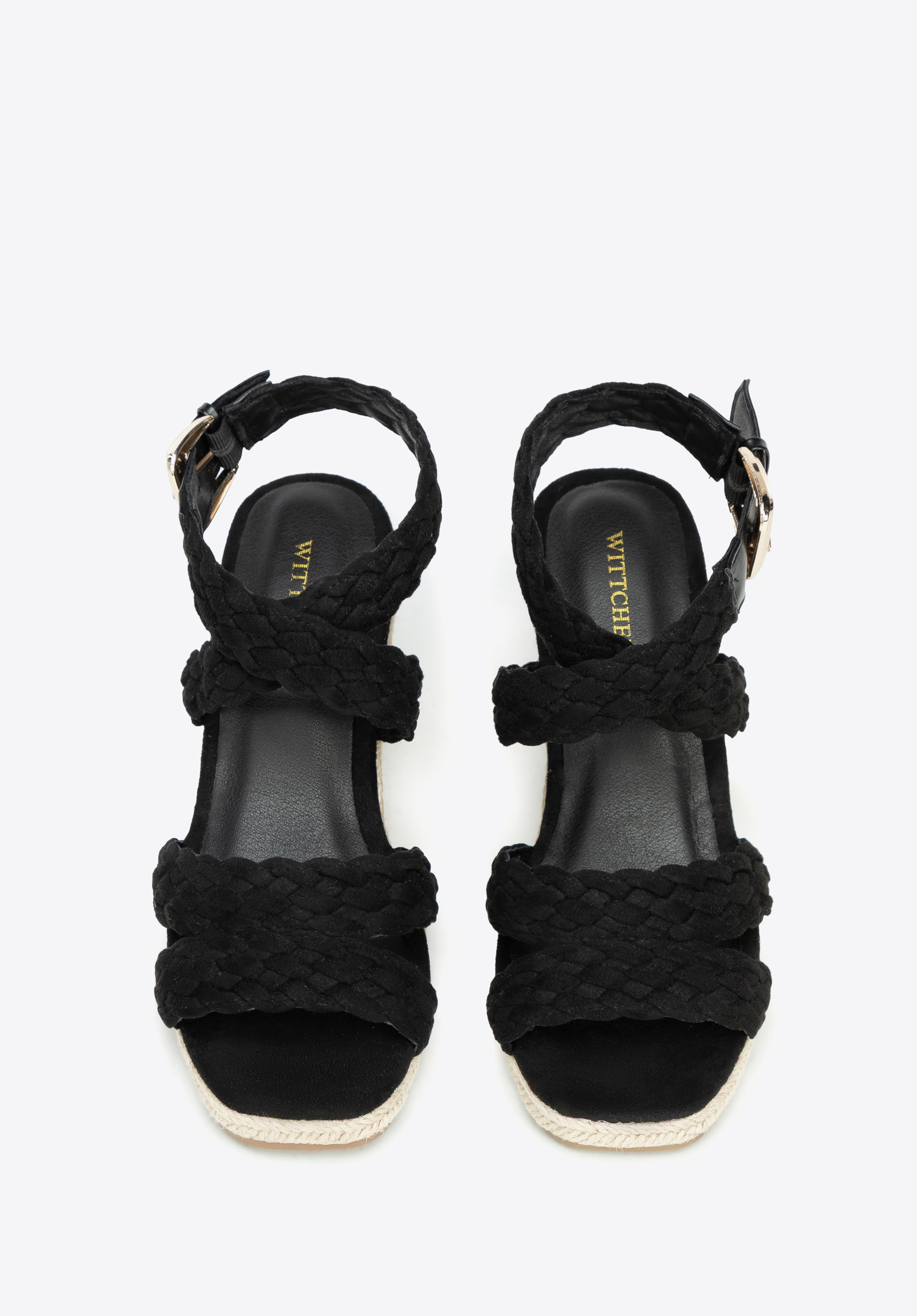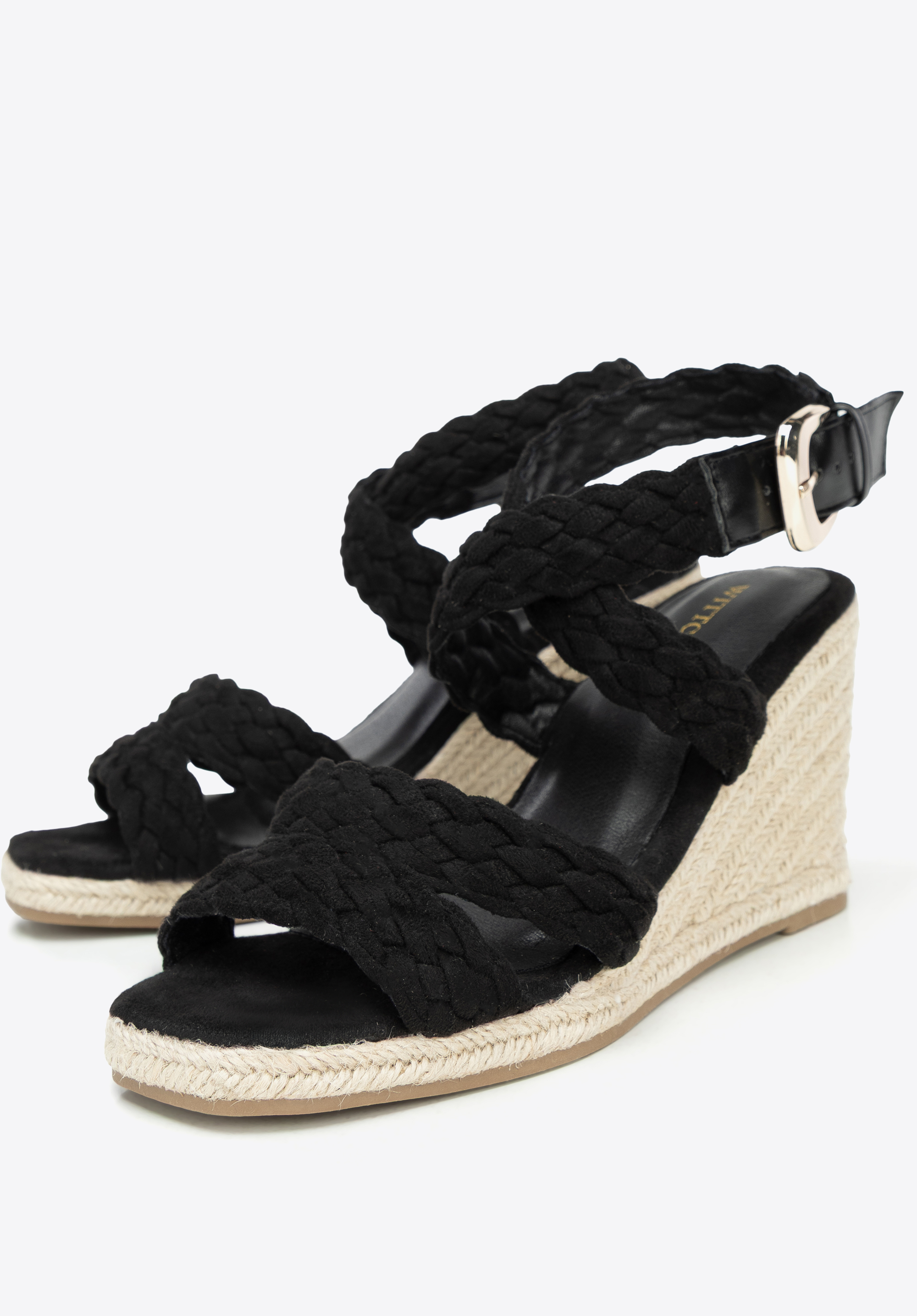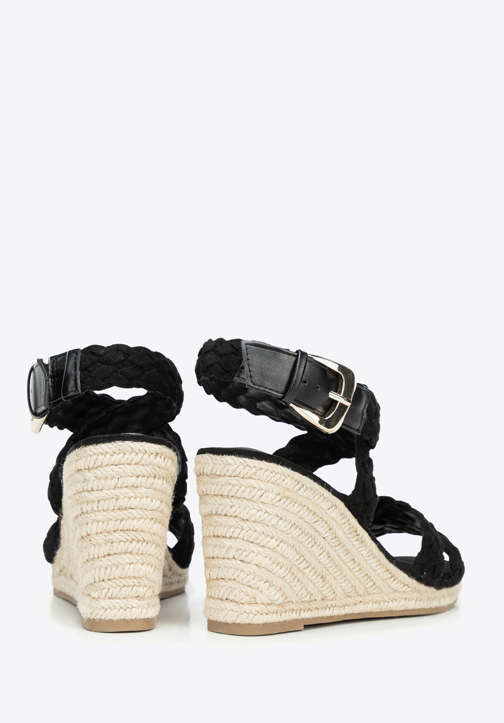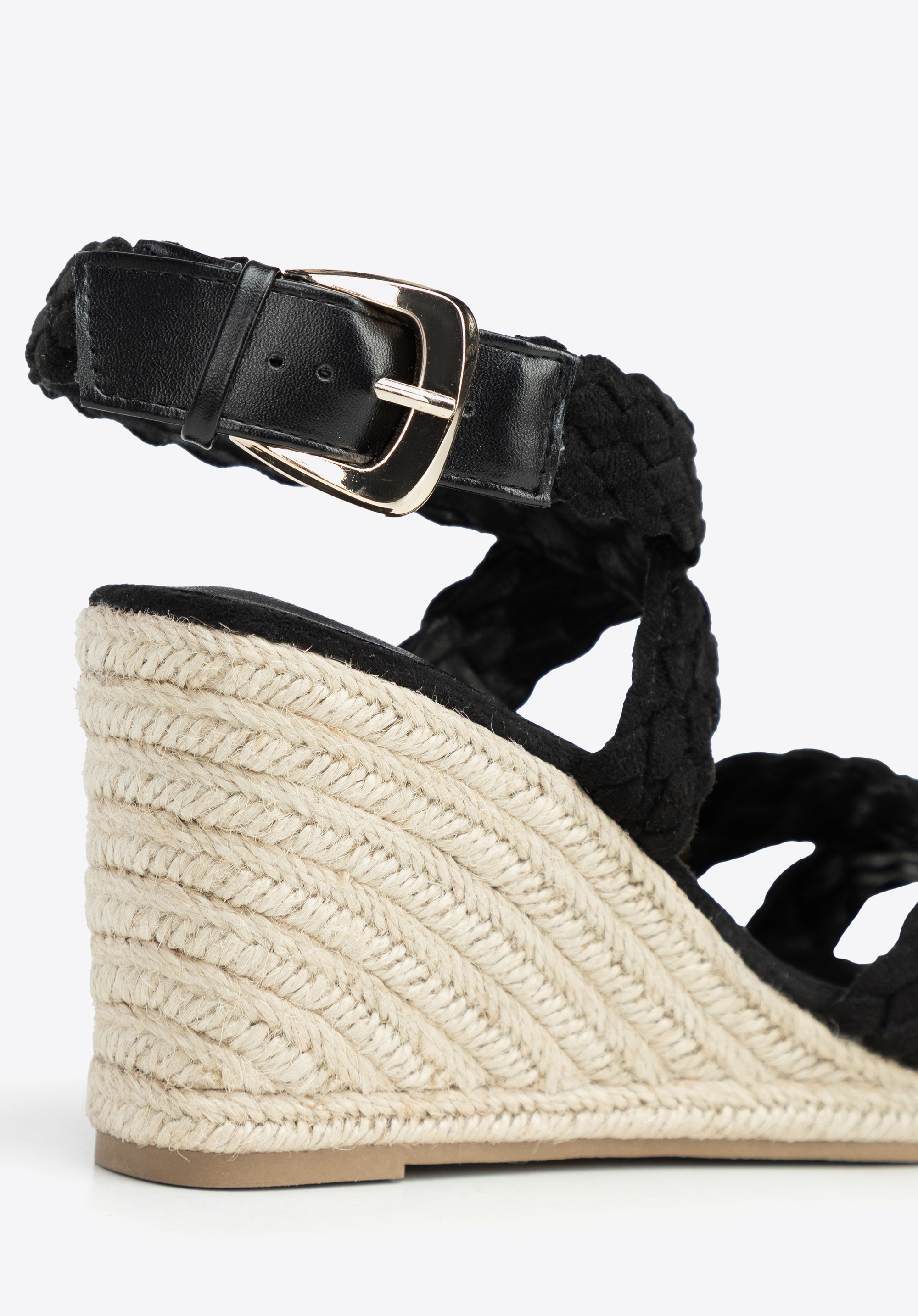 wysoki koturn wykończony w imitację sznurka, który doda Ci kilka centymetrów i sprawi, że Twoje nogi będą sięgać nieba! Ciekawą plecionkę znajdziesz również na