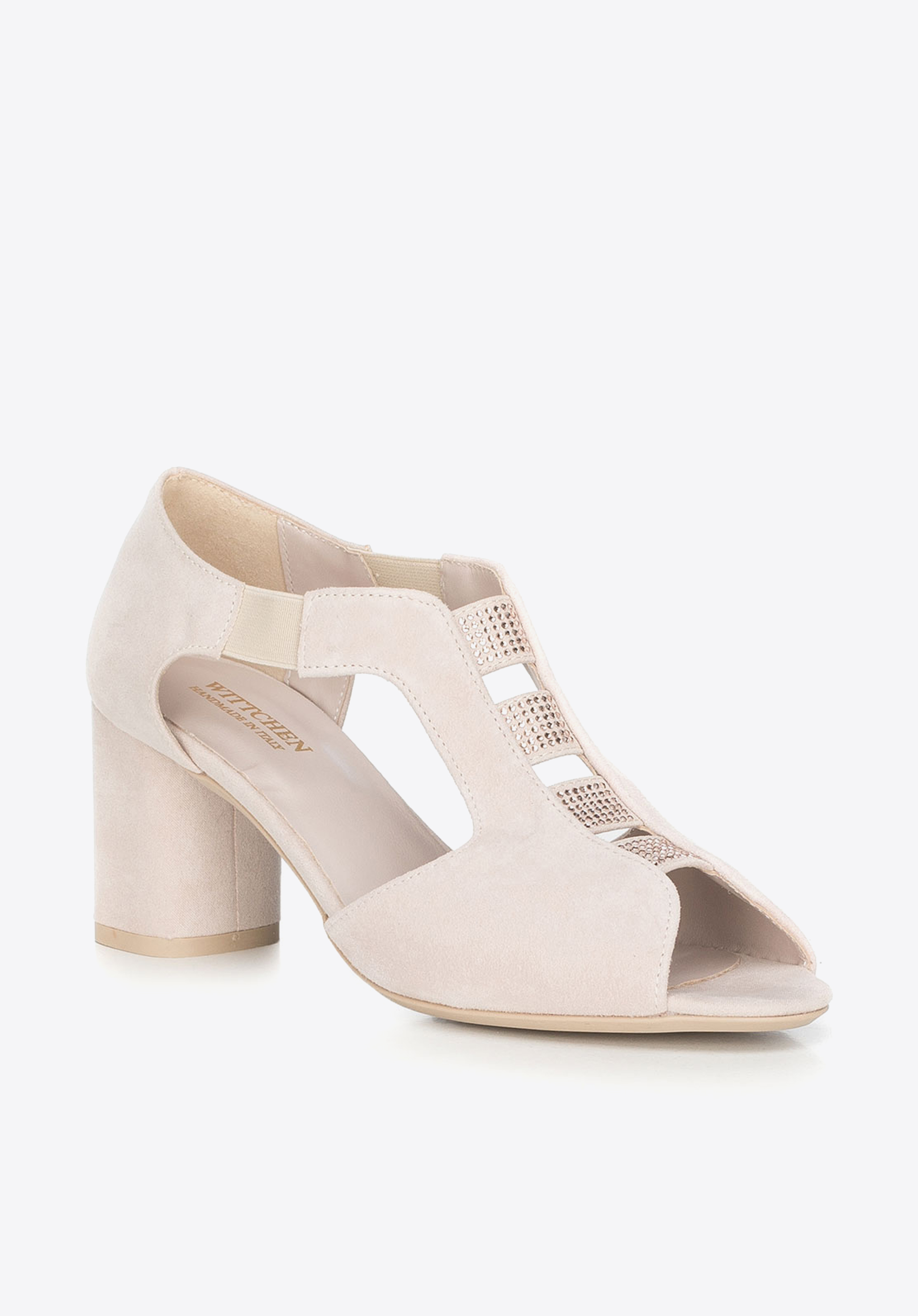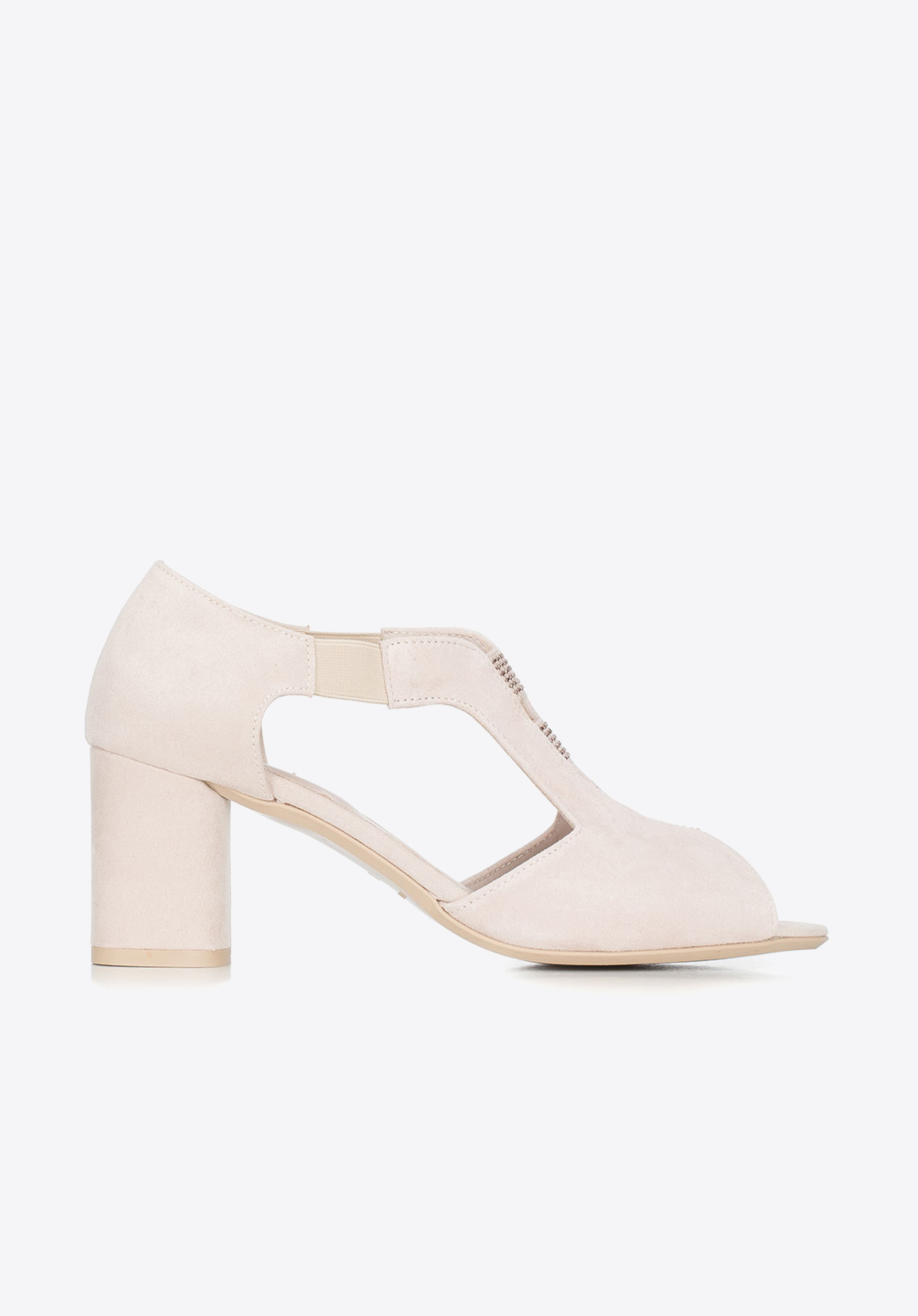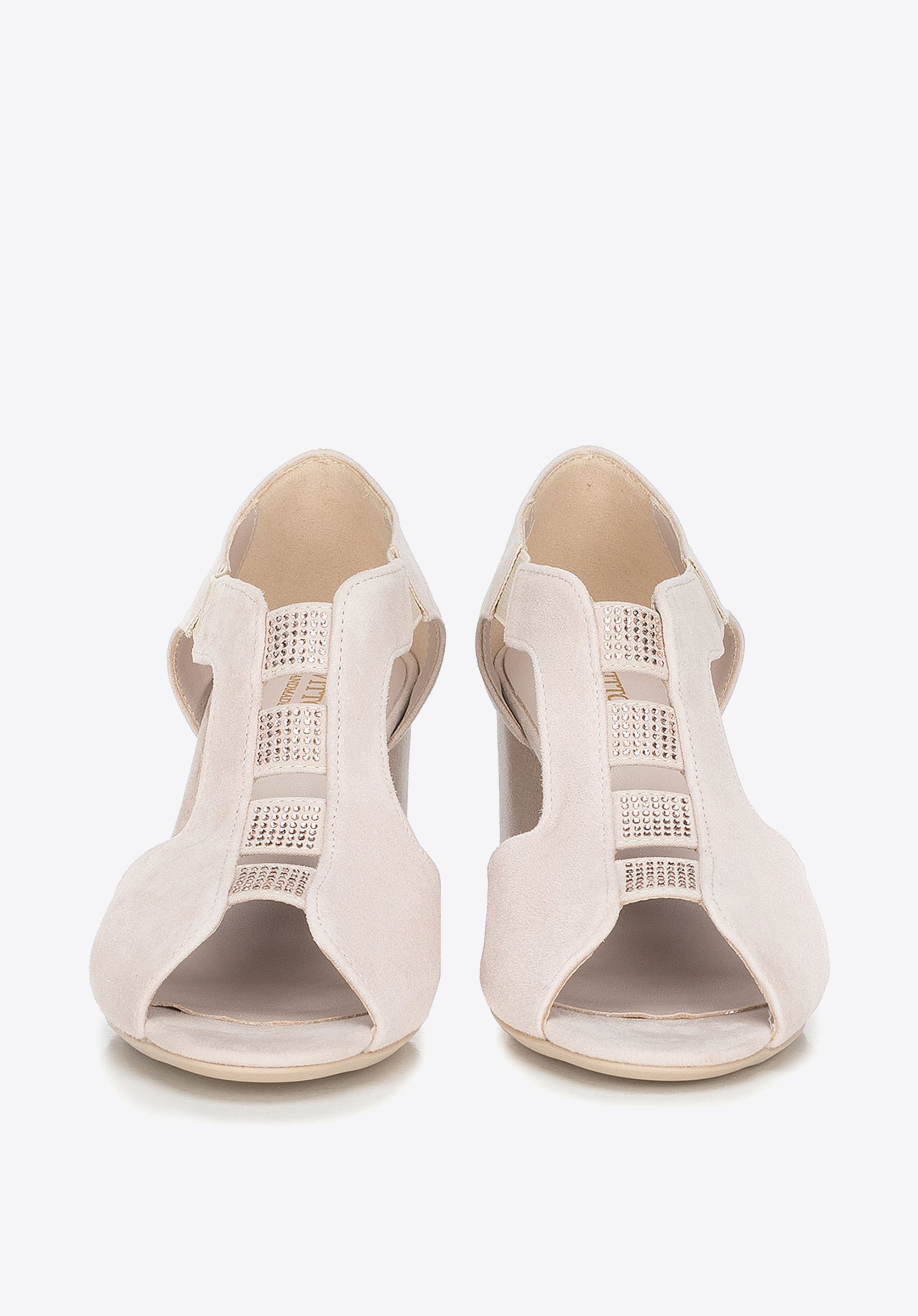 Zamszowe sandały damskie na grubym obcasie. Wykonane są z koziej skóry, która idealnie dostosowuje się do kształtu stopy. Ciekawe wycięcia z boku oraz na wysokości palców, dodają im charakteru, a ozdobne wstawki wzdłuż podbicia - wyjątkowości i klasy. Średniej wysokości obcas typu słupek owinięty jest materiałem w kolorze cholewki. Funkcjonalne gumki sprawią, że zakładanie butów to czysta przyjemność! Komfort i wygoda użytkowania to jedne z wielu zalet tych butów. Nasza rada: buty te z pewnością sprawią, że poczujesz się wyjątkowa.