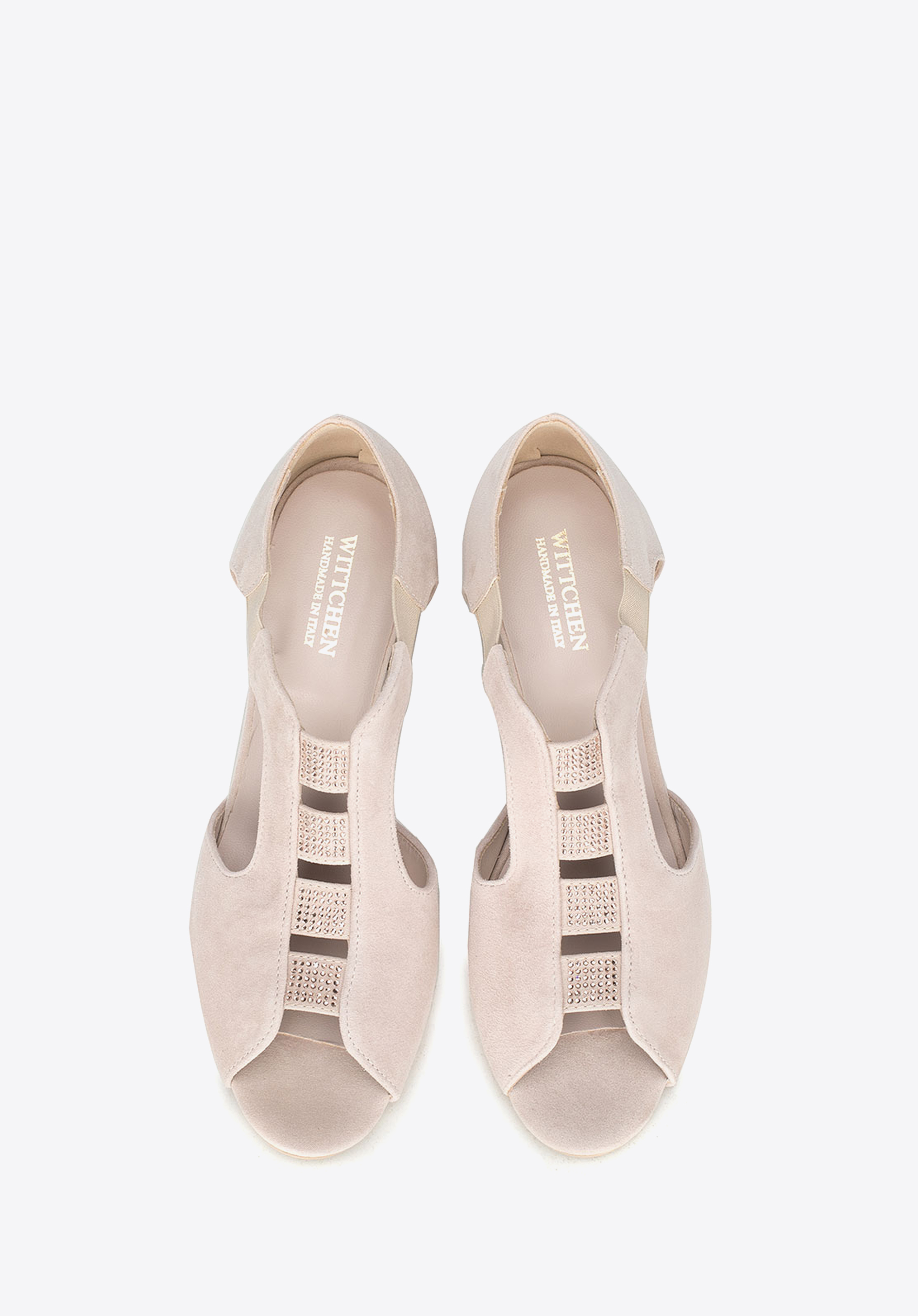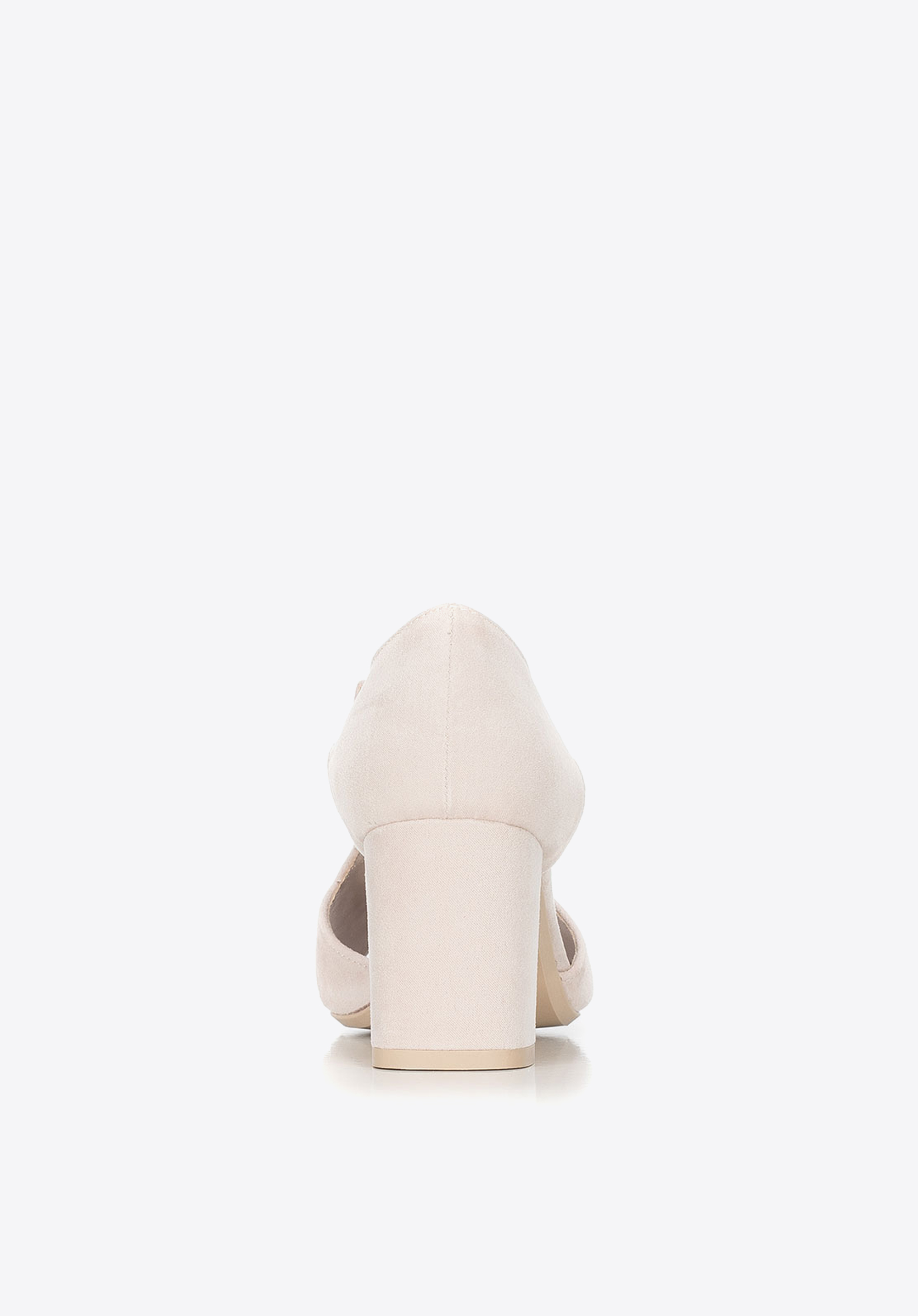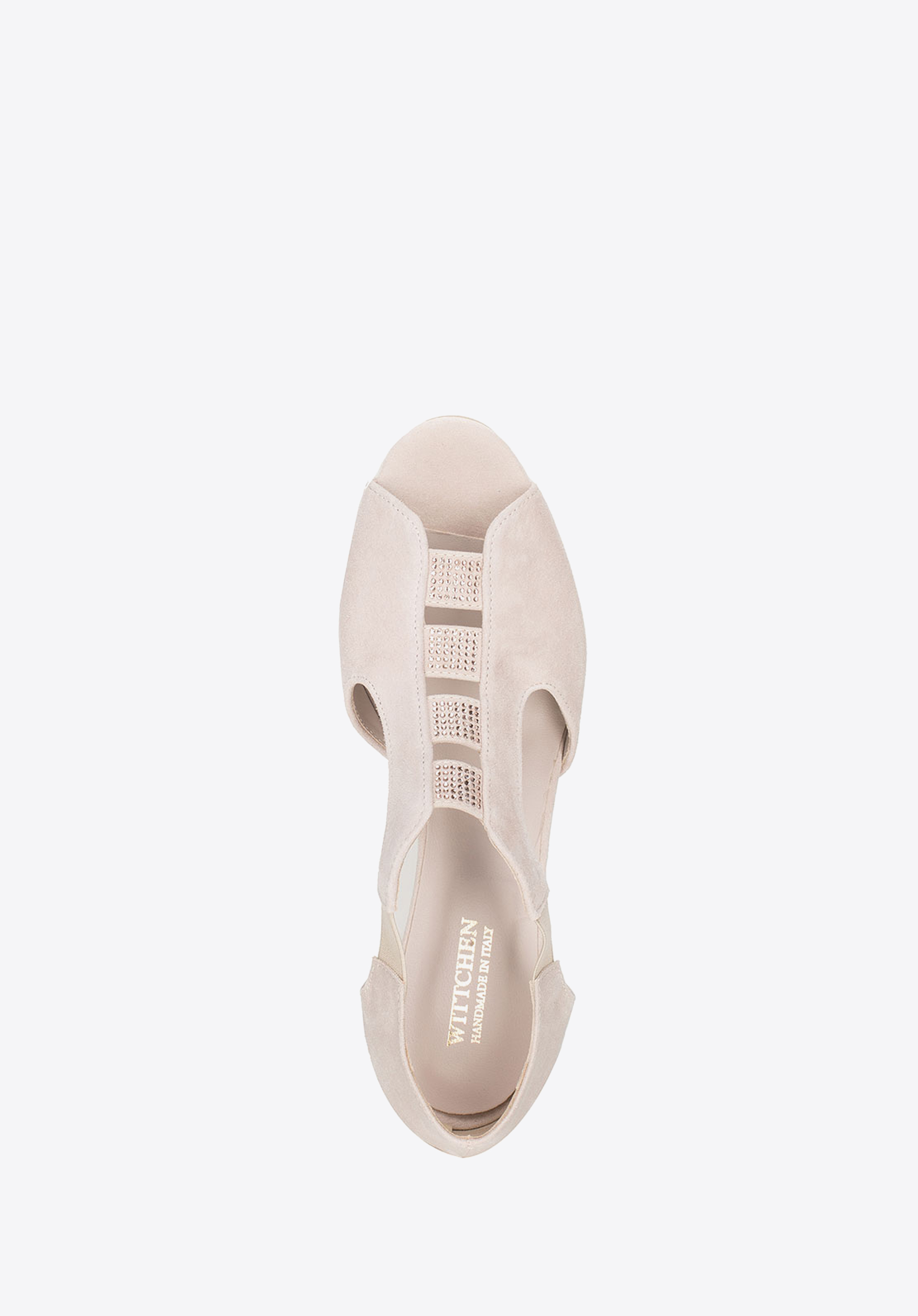 Zamszowe sandały damskie na grubym obcasie. Wykonane są z koziej skóry, która idealnie dostosowuje się do kształtu stopy. Ciekawe wycięcia z boku oraz na wysokości palców, dodają im charakteru, a ozdobne wstawki wzdłuż podbicia - wyjątkowości i klasy. Średniej wysokości obcas typu słupek owinięty jest materiałem w kolorze cholewki. Funkcjonalne gumki sprawią, że zakładanie butów to czysta przyjemność! Komfort i wygoda użytkowania to jedne z wielu zalet tych butów. Nasza rada: buty te z pewnością sprawią, że poczujesz się wyjątkowa.