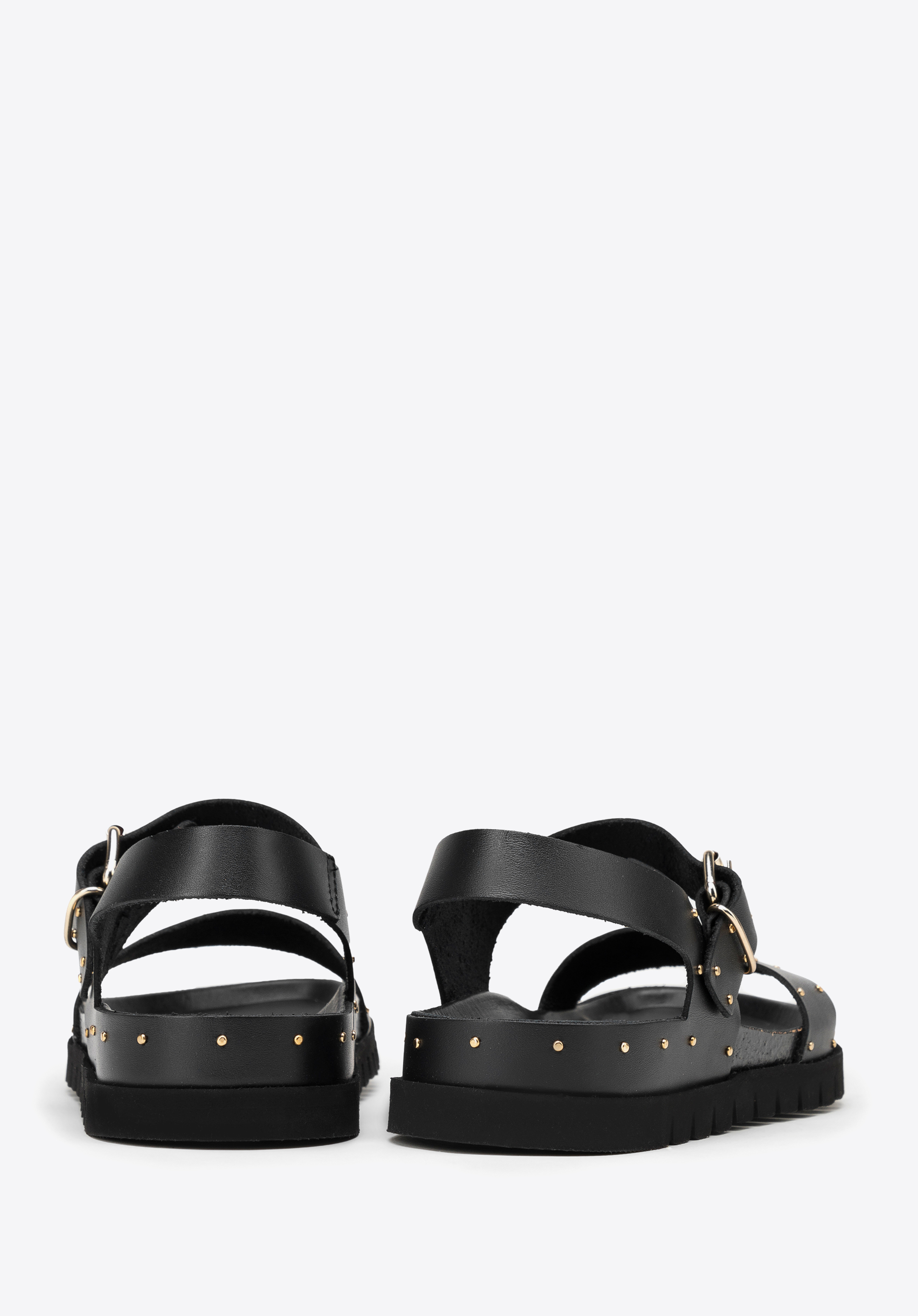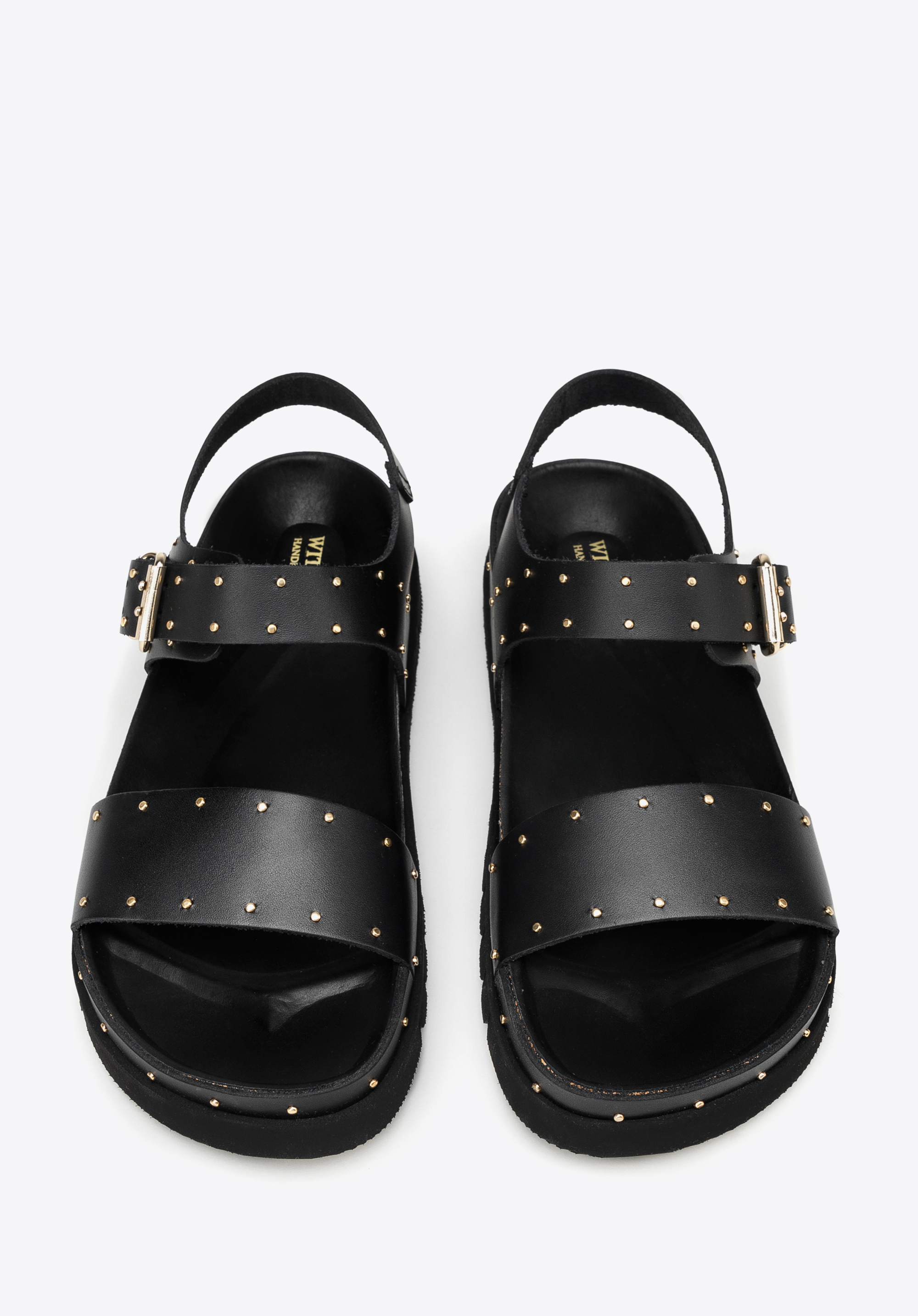 skórzana wkładka zapewni komfortowe chodzenie. Ponadczasowy fason dopasujesz do niemal każdego stroju: zarówno długiej sukienki w klimacie boho, jak i ulubionych dżinsowych szortów i koszulki. Damskie sandały skórzane z drobnymi nitami na platformie to letni must have dla miłośniczek klasyki w nowoczesnym wydaniu.