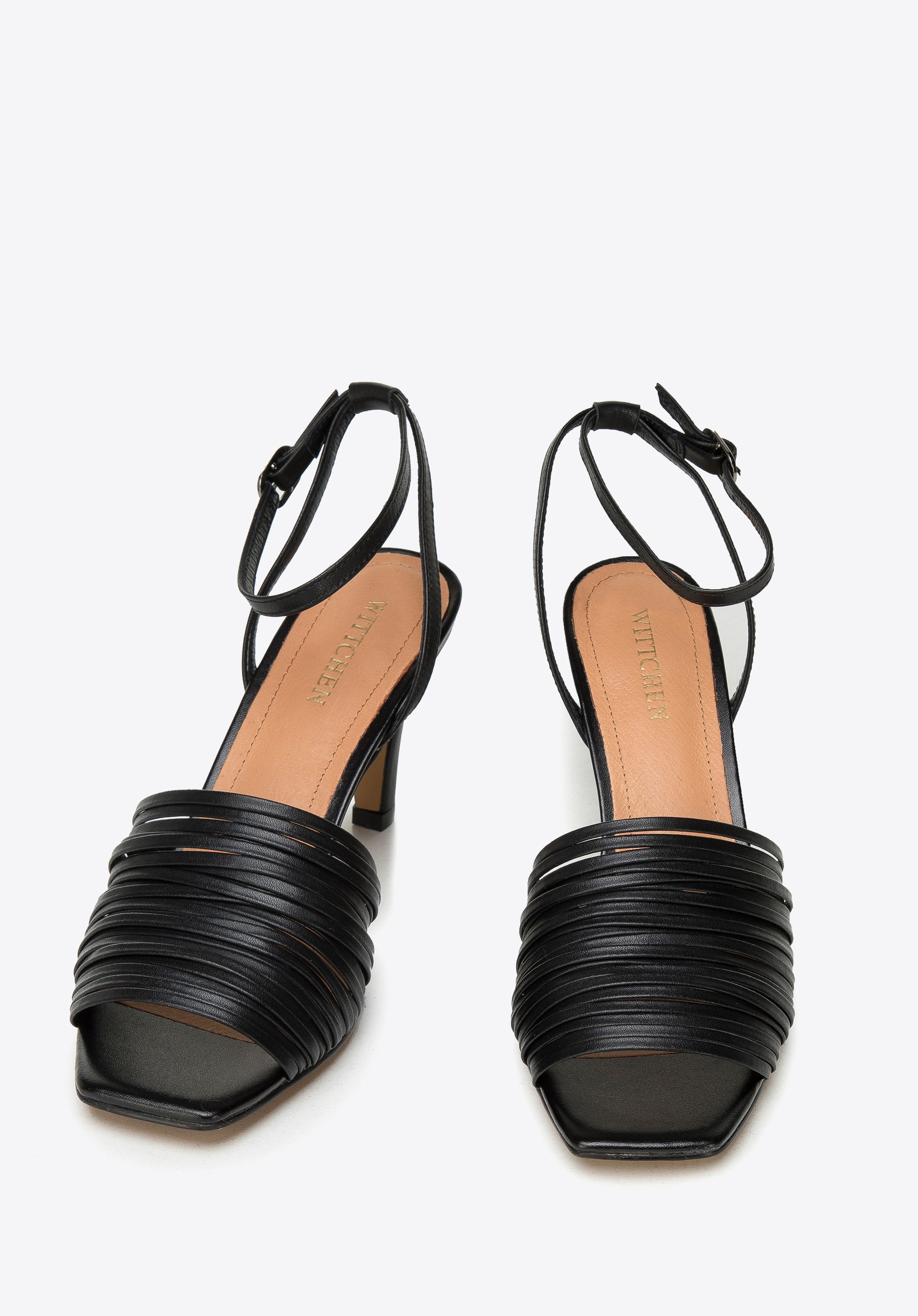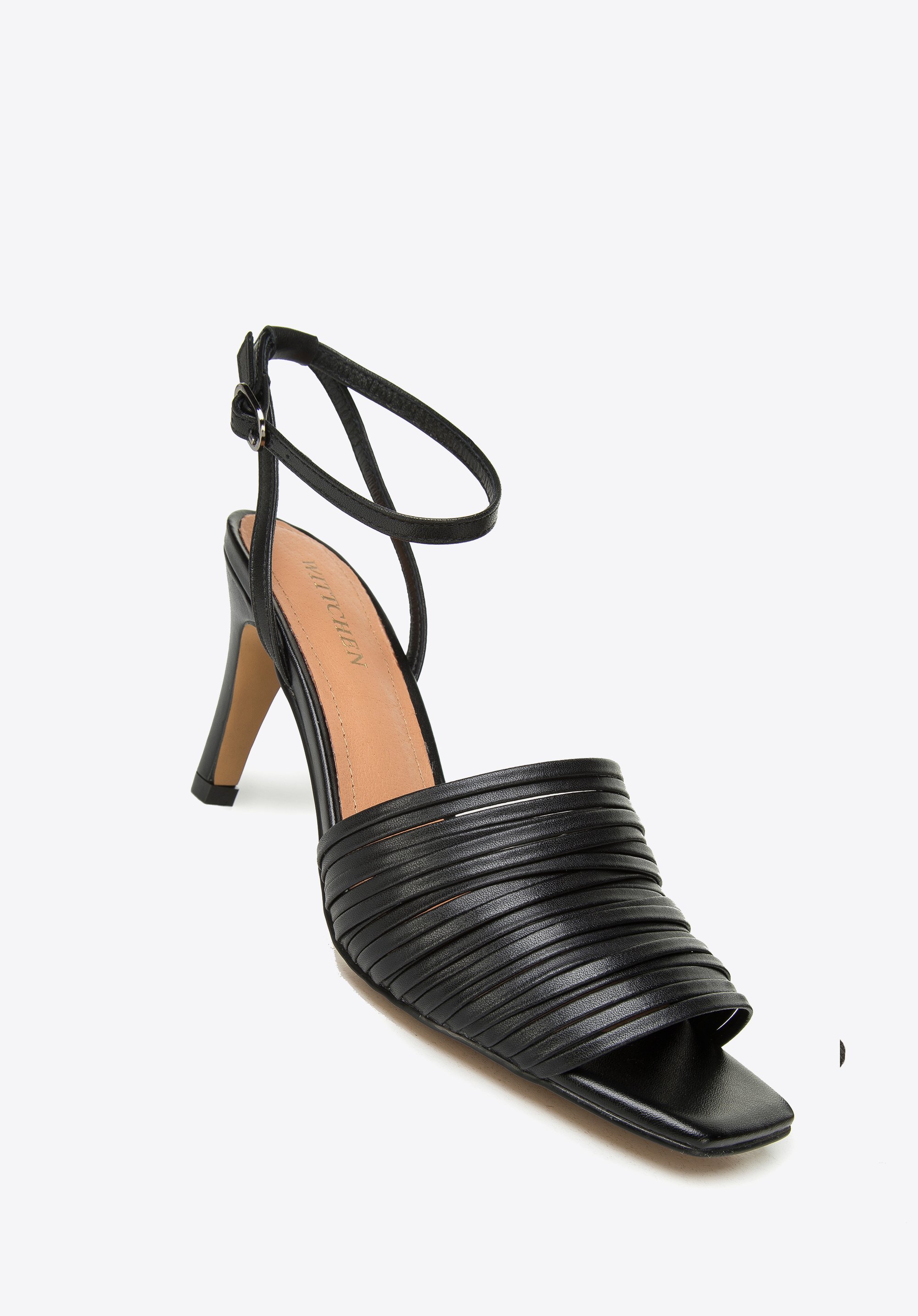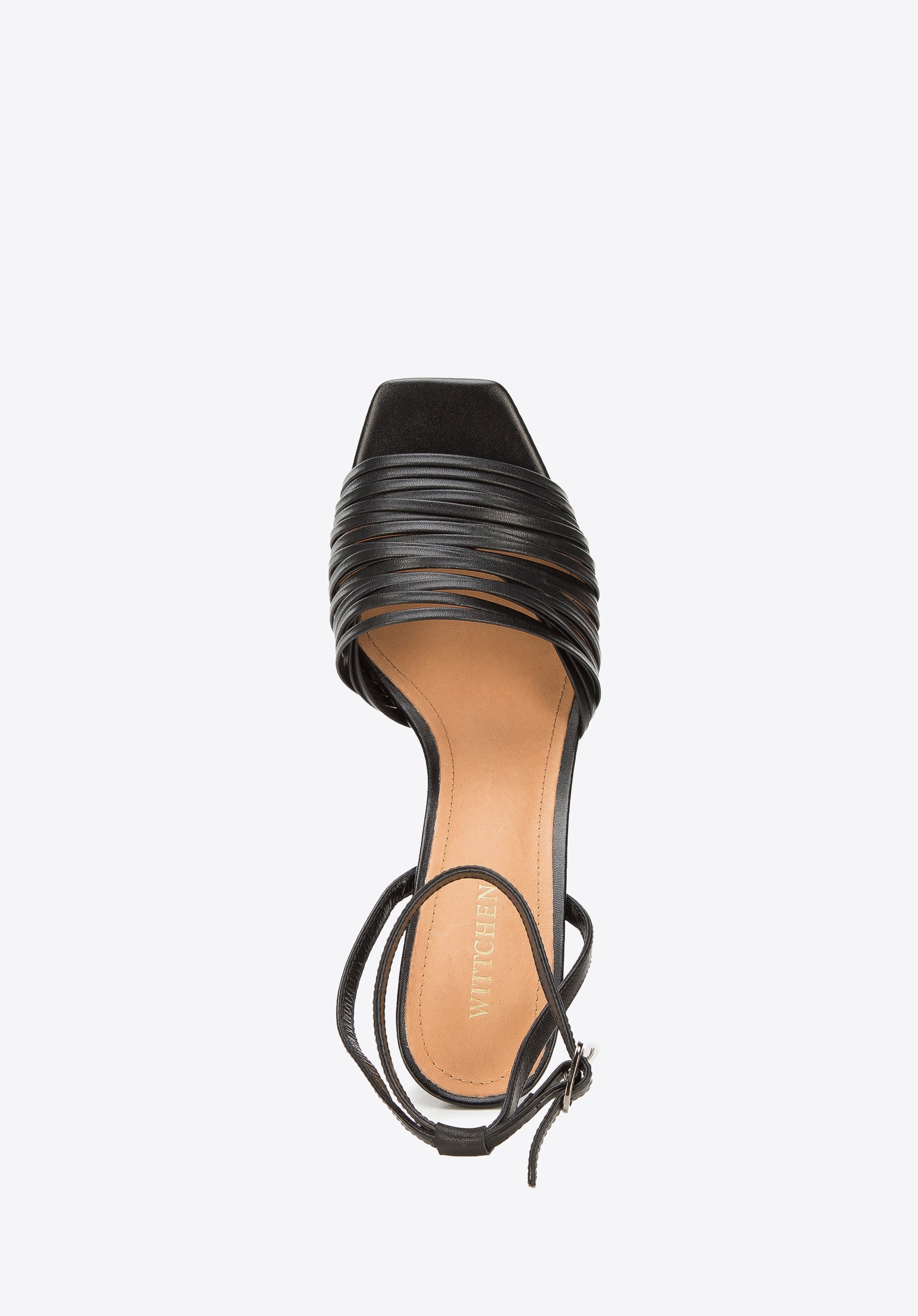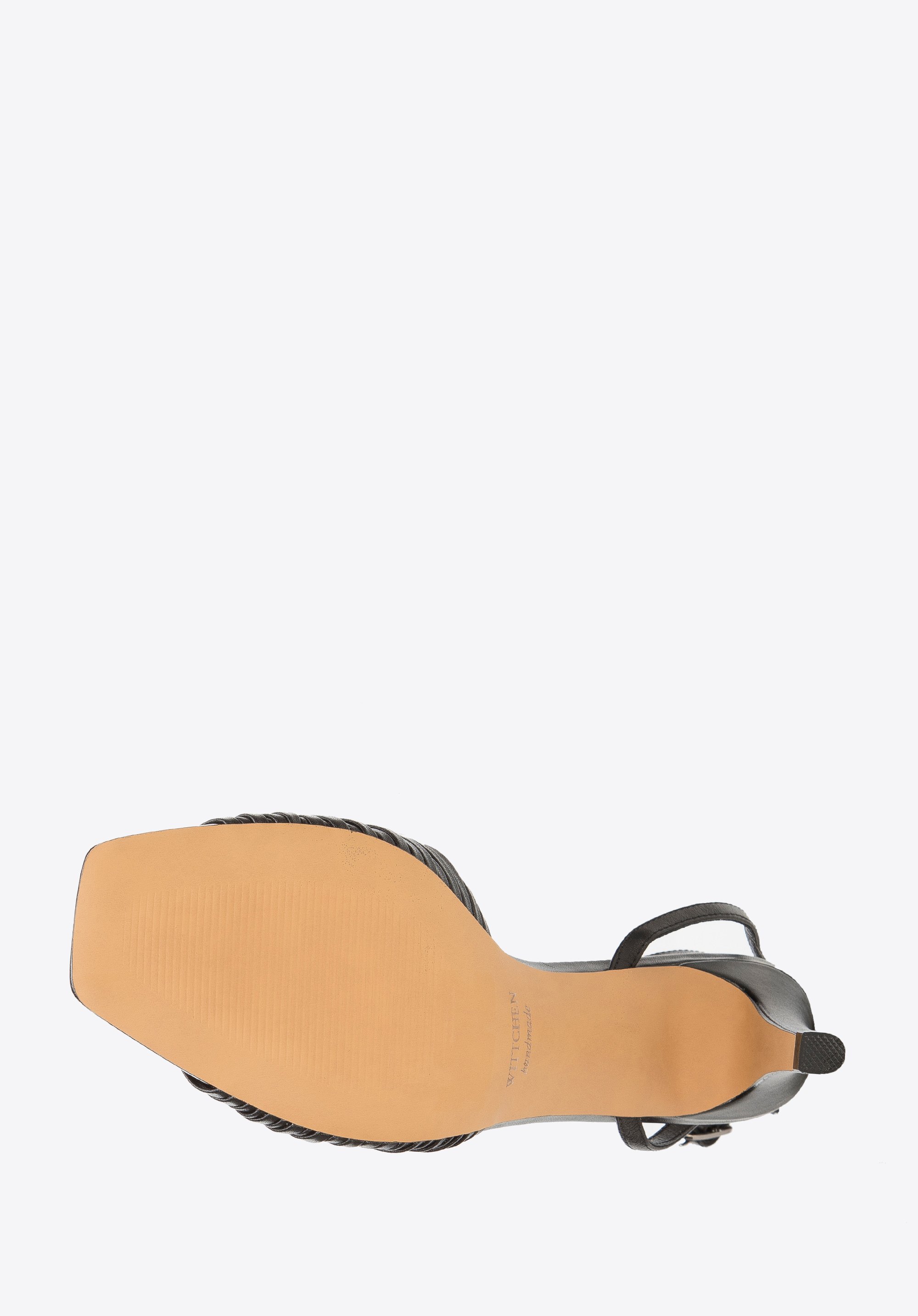 z tyłu cienki, zapinany wokół kostki pasek zmysłowo podkreśla to, co najpiękniejsze w kobiecej stopie.