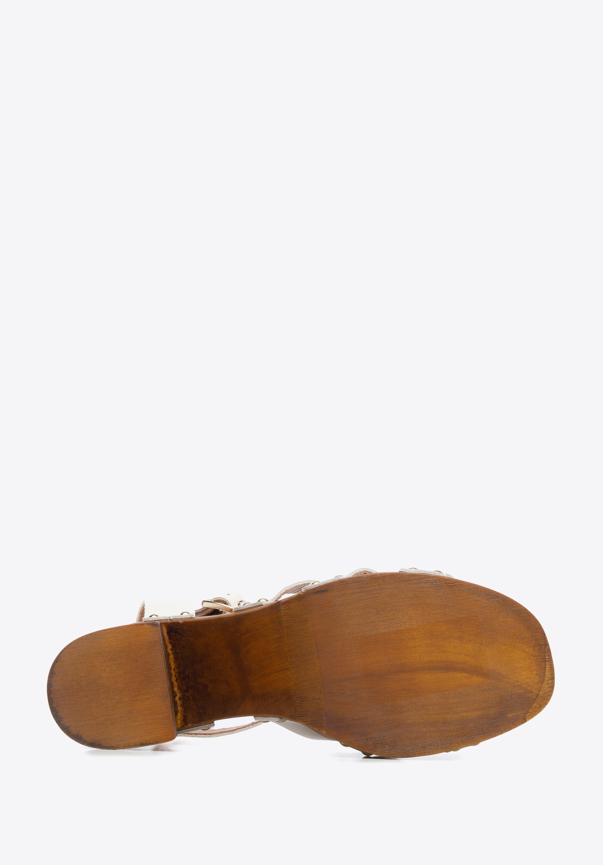 - podeszwa wykonana z tworzywa sztucznego imitującego drewno;