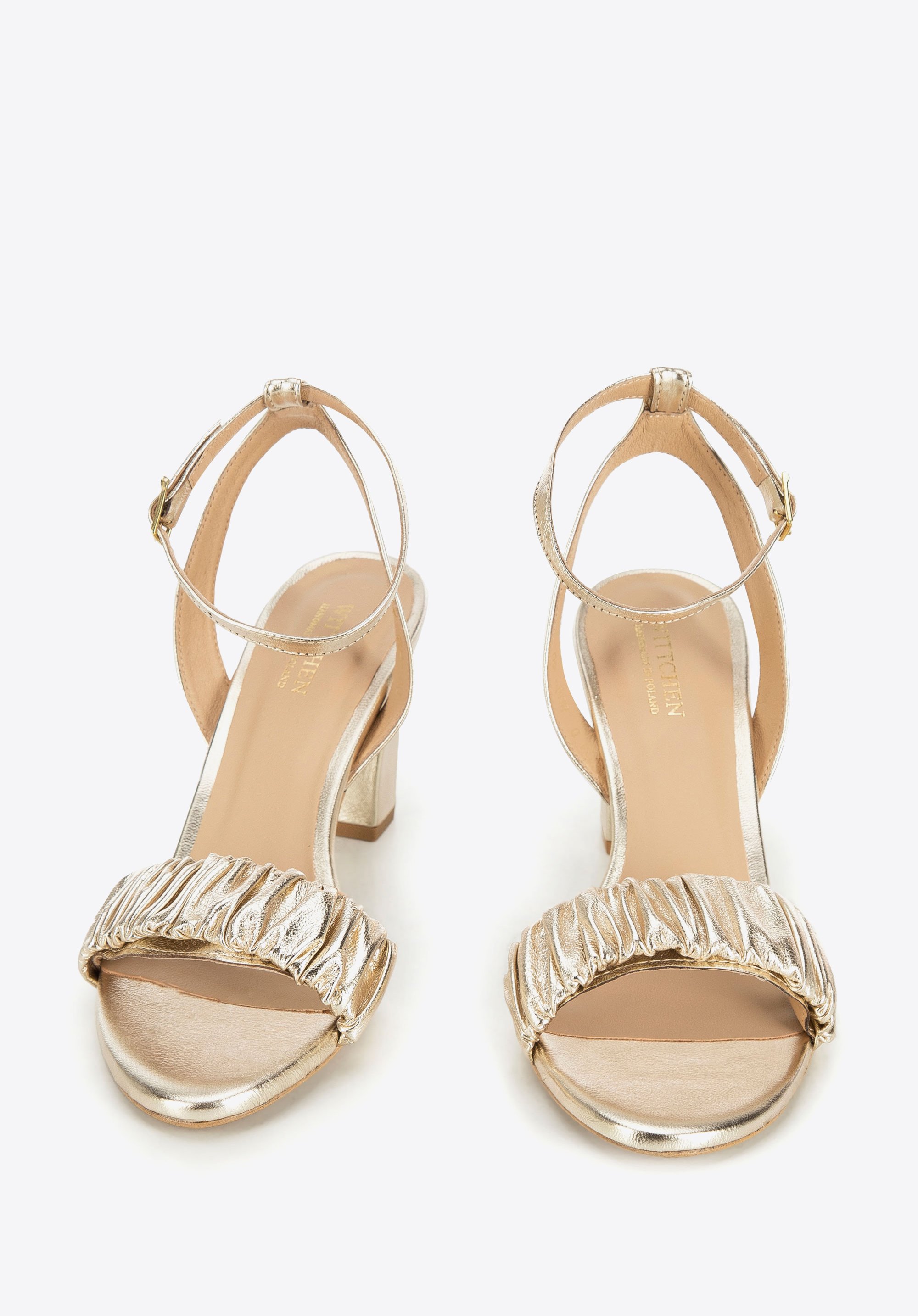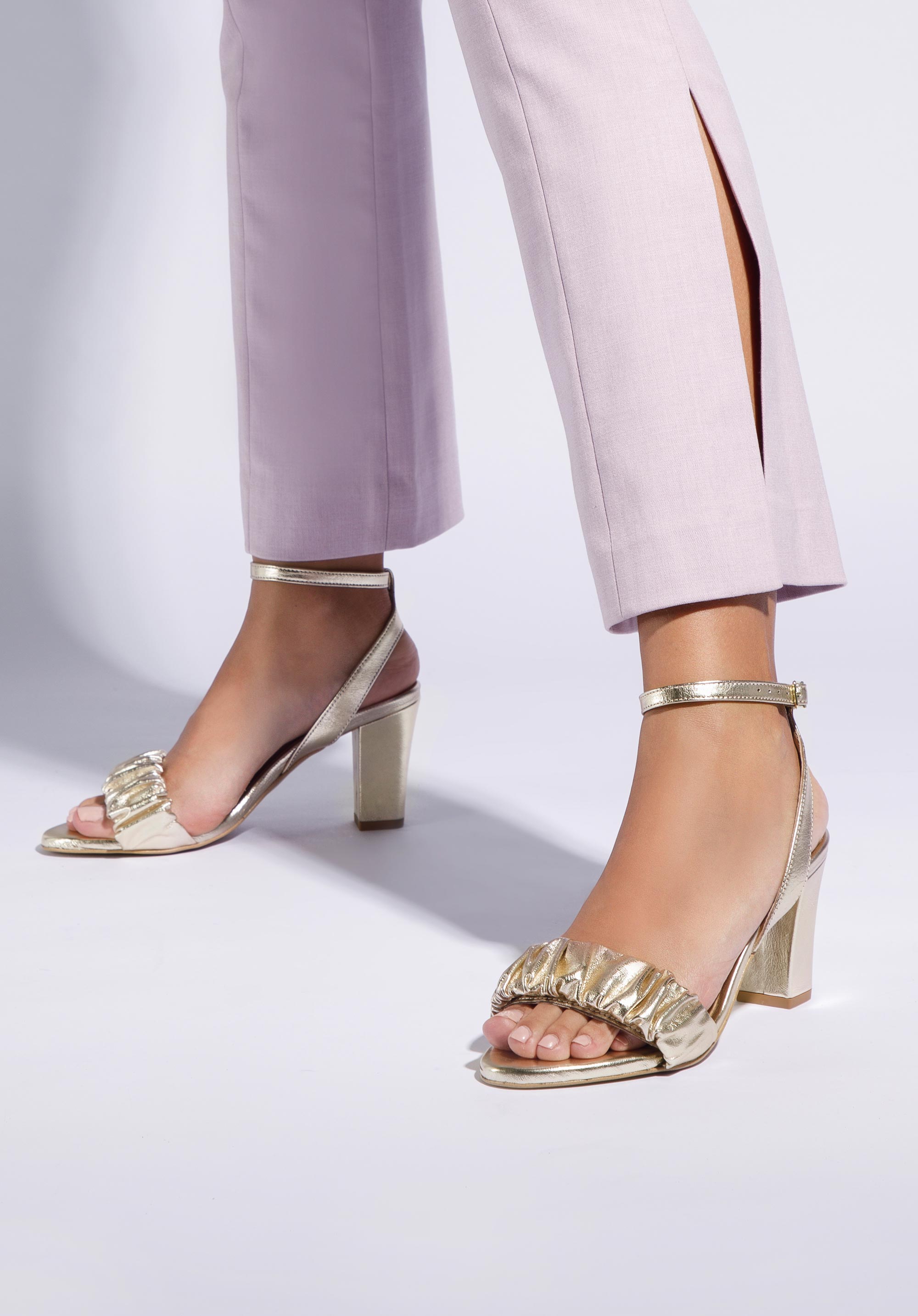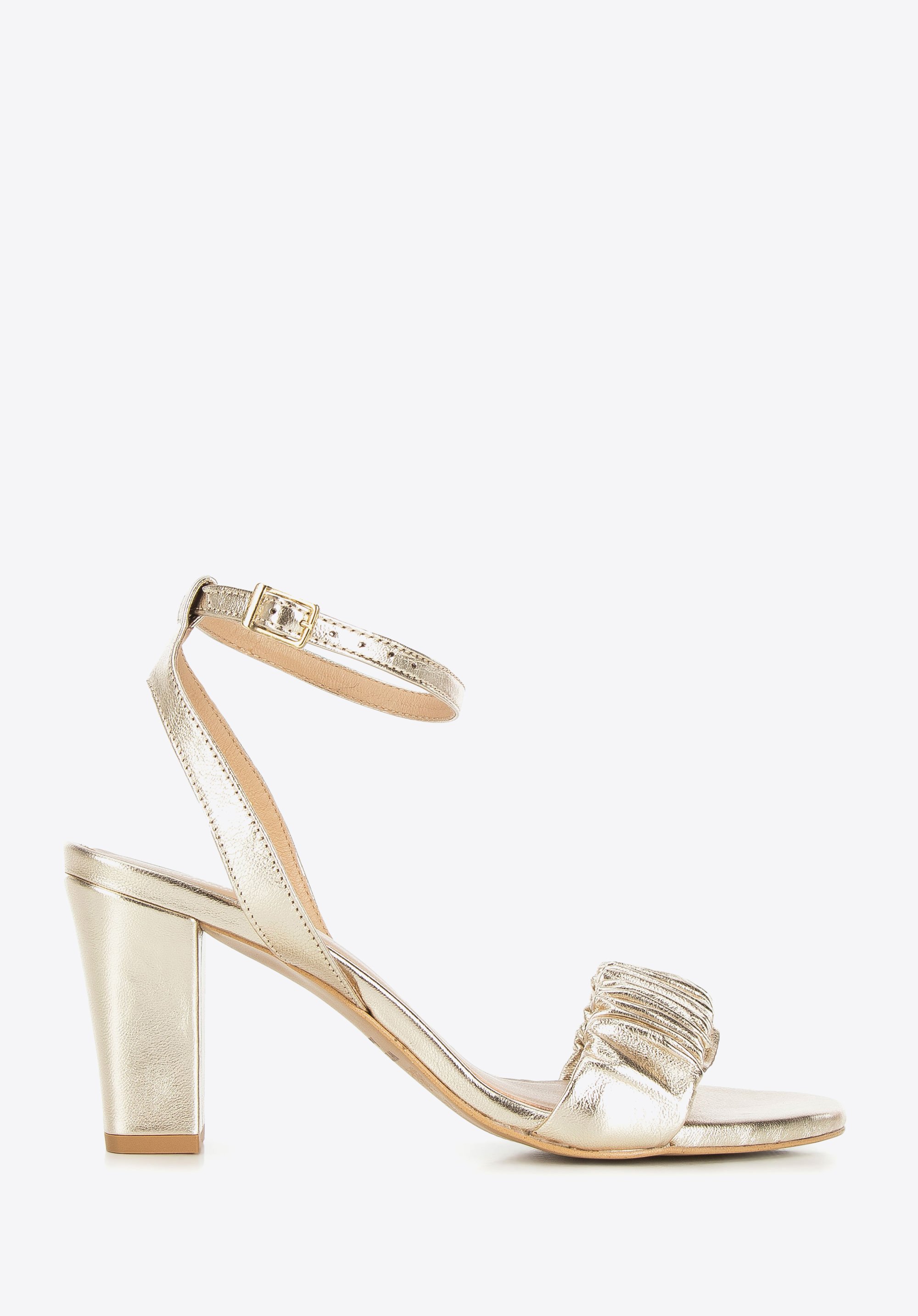 Obcas jest dość wysoki, ale wygodny: ładnie wysmukli Twoją sylwetkę i umożliwi przechodzenie w tych butach wiele godzin. Ten zgrabny model założysz i do zwiewnej sukienki, i do dżinsów z marynarką. Damskie sandały z marszczonej skóry z na słupku to kobiecy dodatek na każdą wyjątkową okazję.