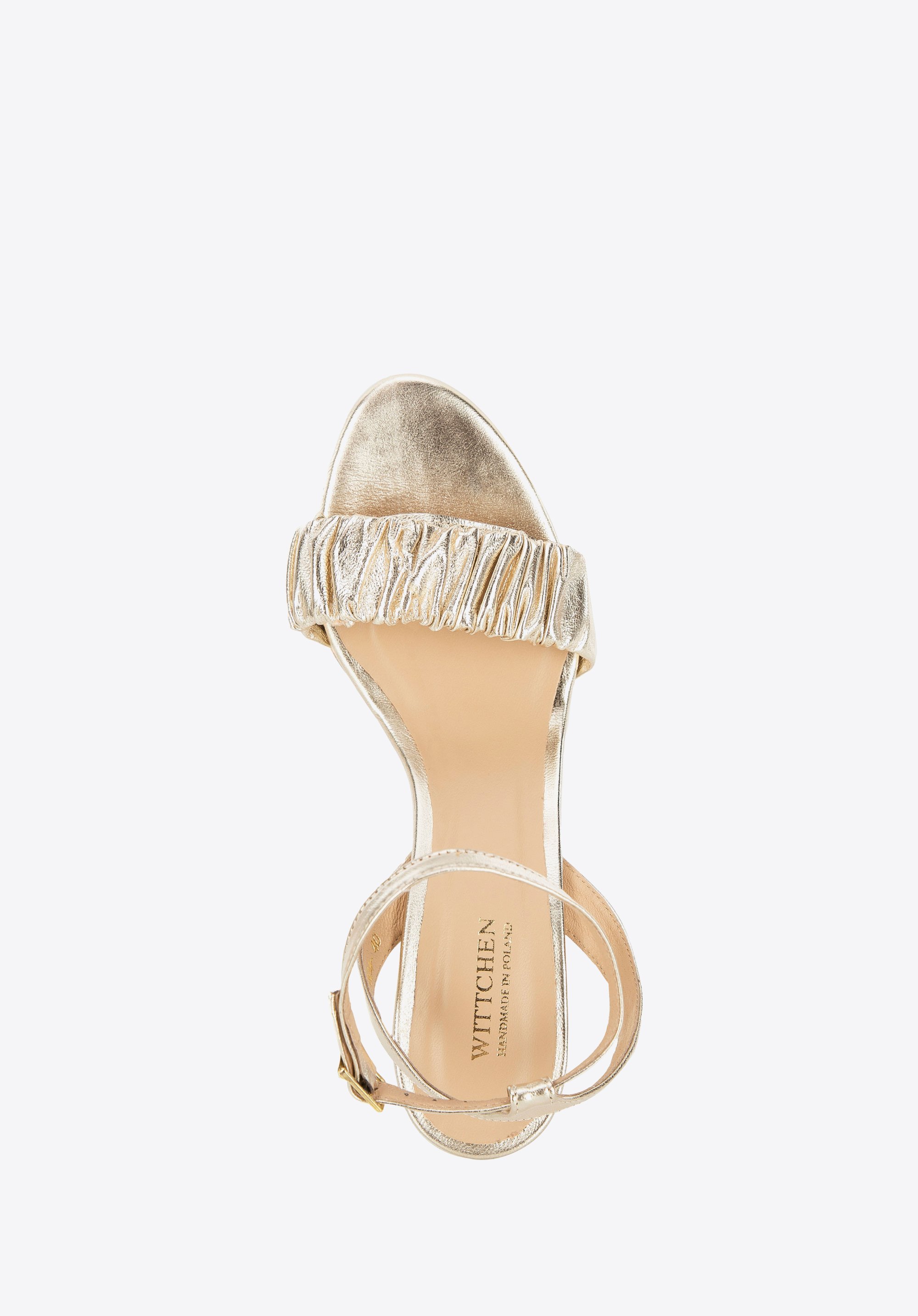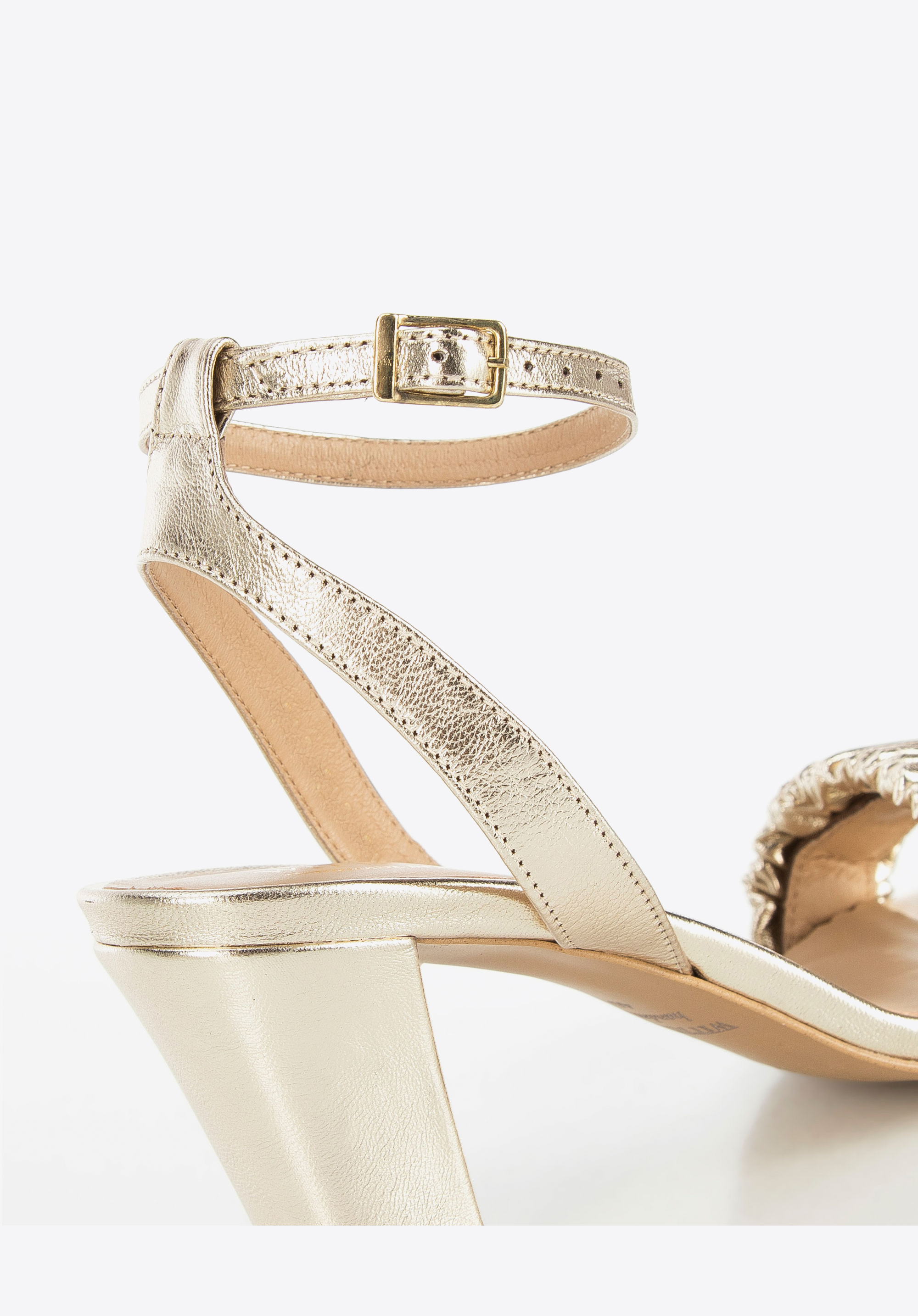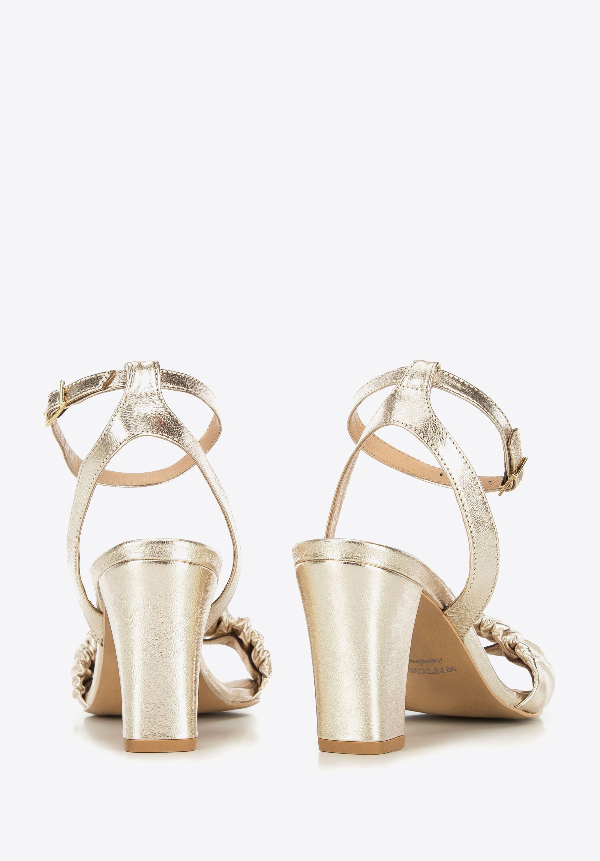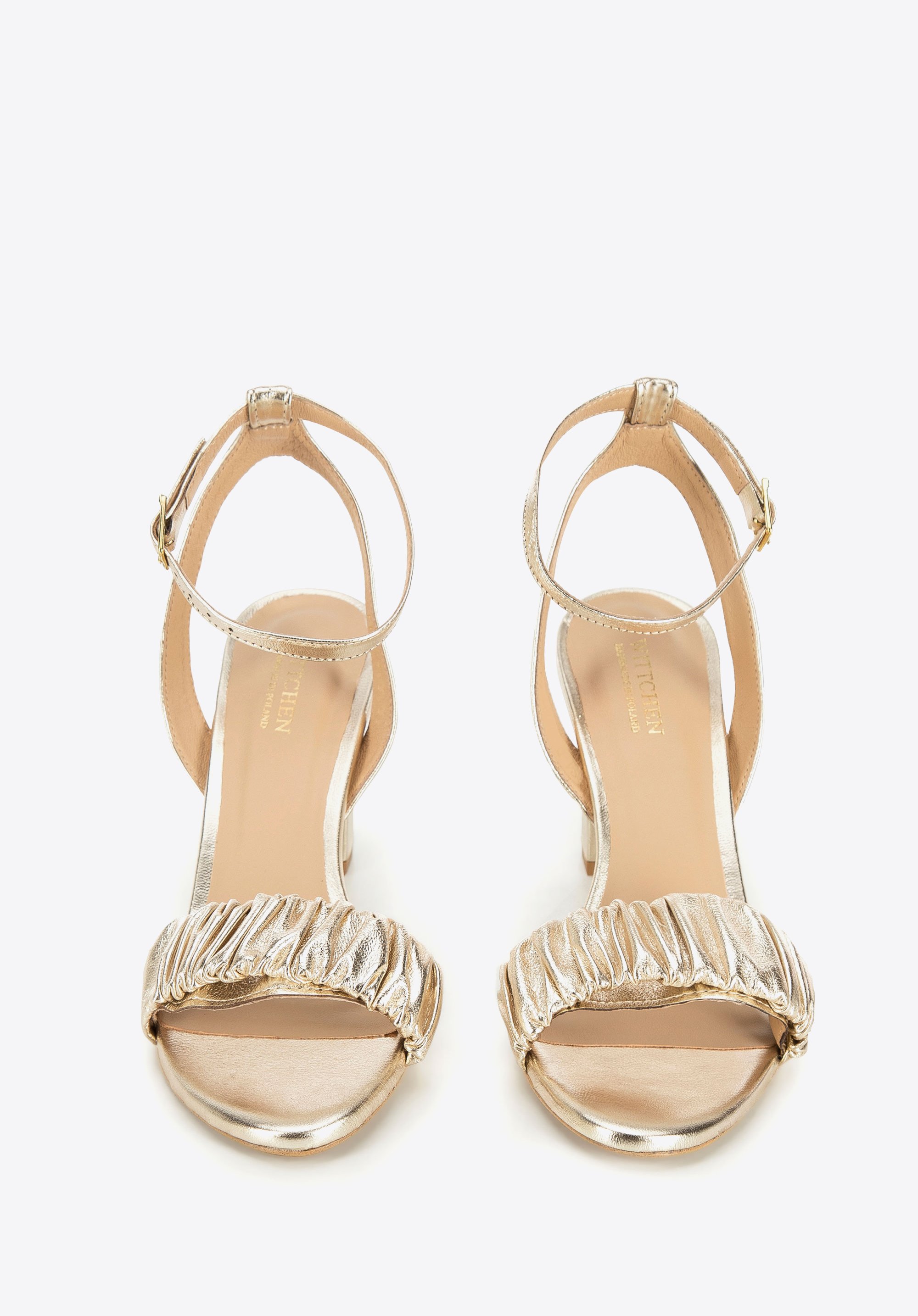 Obcas jest dość wysoki, ale wygodny: ładnie wysmukli Twoją sylwetkę i umożliwi przechodzenie w tych butach wiele godzin. Ten zgrabny model założysz i do zwiewnej sukienki, i do dżinsów z marynarką. Damskie sandały z marszczonej skóry z na słupku to kobiecy dodatek na każdą wyjątkową okazję.