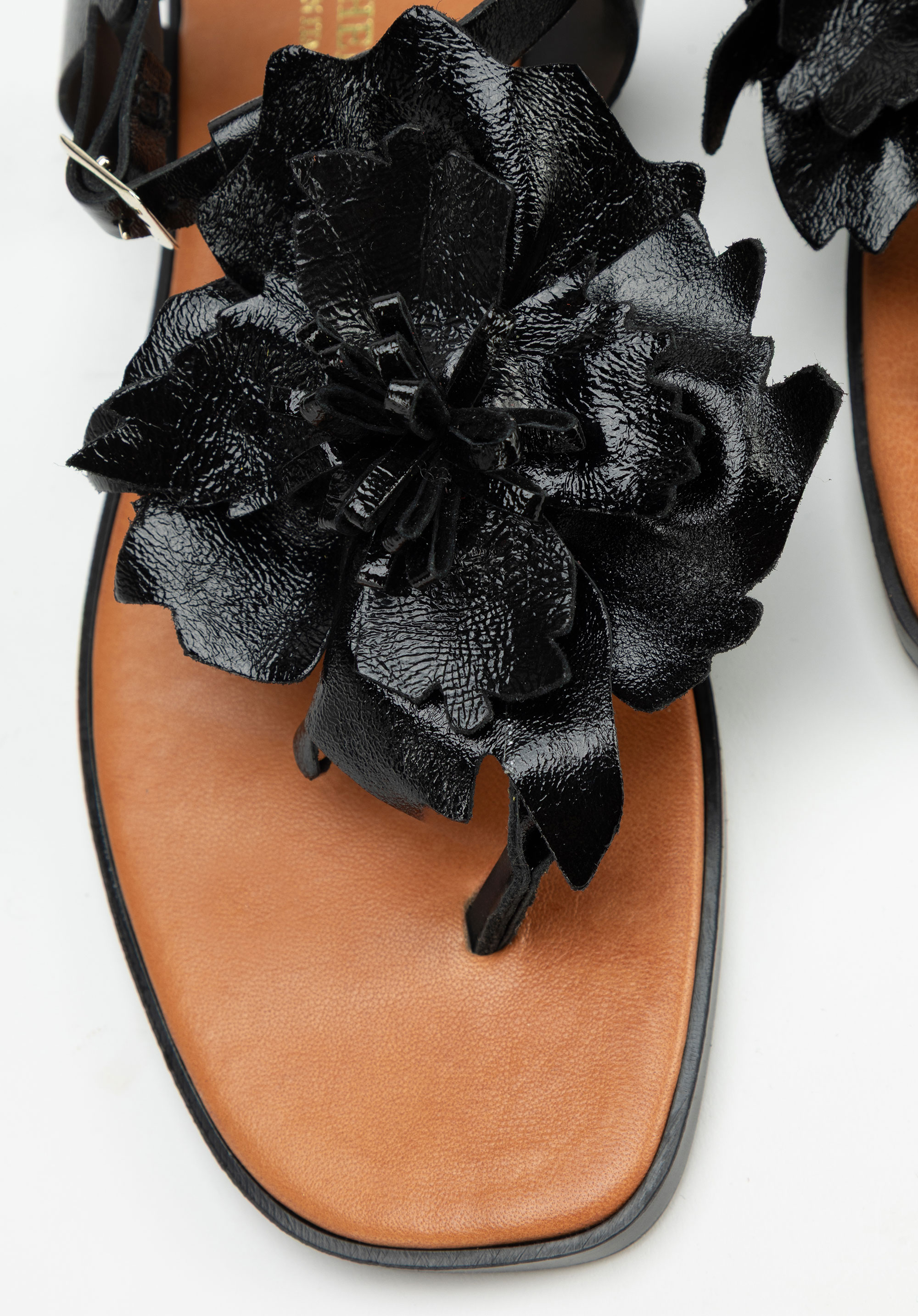 Te damskie sandały typu japonki to kwintesencja letniego szyku w naturalnym, włoskim stylu. Wykonane ze skóry naturalnej, zachwycają nie tylko jakością, ale i subtelnym detalem – trójwymiarowymi kwiatami na przodzie, które dodają im uroku i lekkości. Kwadratowy, odkryty nosek oraz płaski obcas czynią je idealnym wyborem na ciepłe dni – zarówno na spacer po mieście, jak i na wakacyjne wyjazdy.