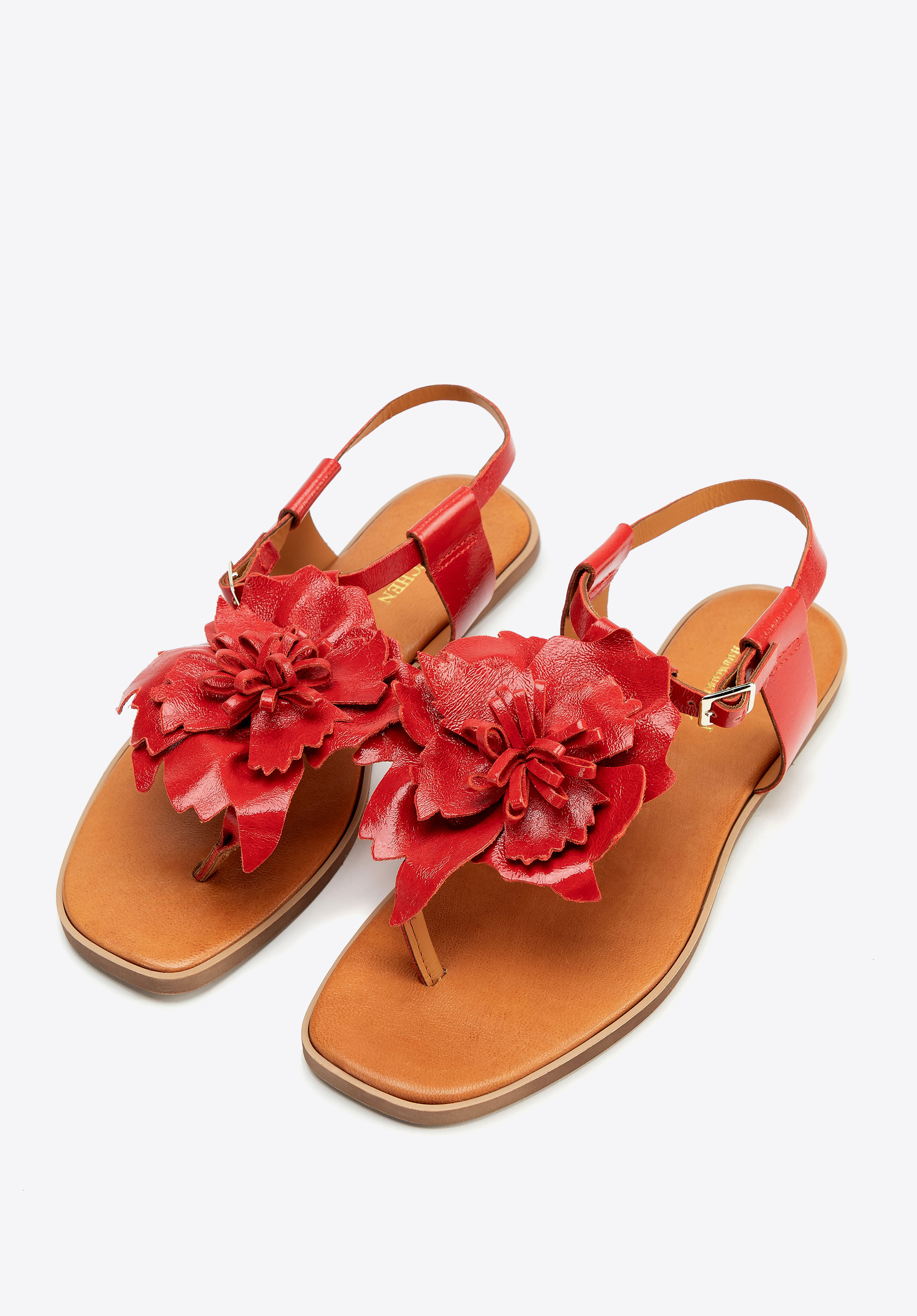 Te damskie sandały typu japonki to kwintesencja letniego szyku w naturalnym, włoskim stylu. Wykonane ze skóry naturalnej, zachwycają nie tylko jakością, ale i subtelnym detalem – trójwymiarowymi kwiatami na przodzie, które dodają im uroku i lekkości. Kwadratowy, odkryty nosek oraz płaski obcas czynią je idealnym wyborem na ciepłe dni – zarówno na spacer po mieście, jak i na wakacyjne wyjazdy.