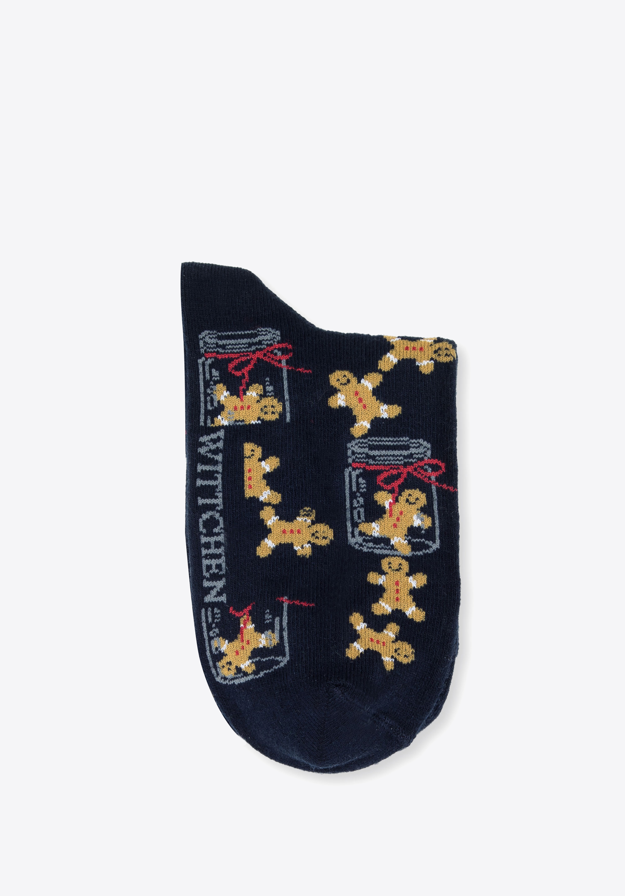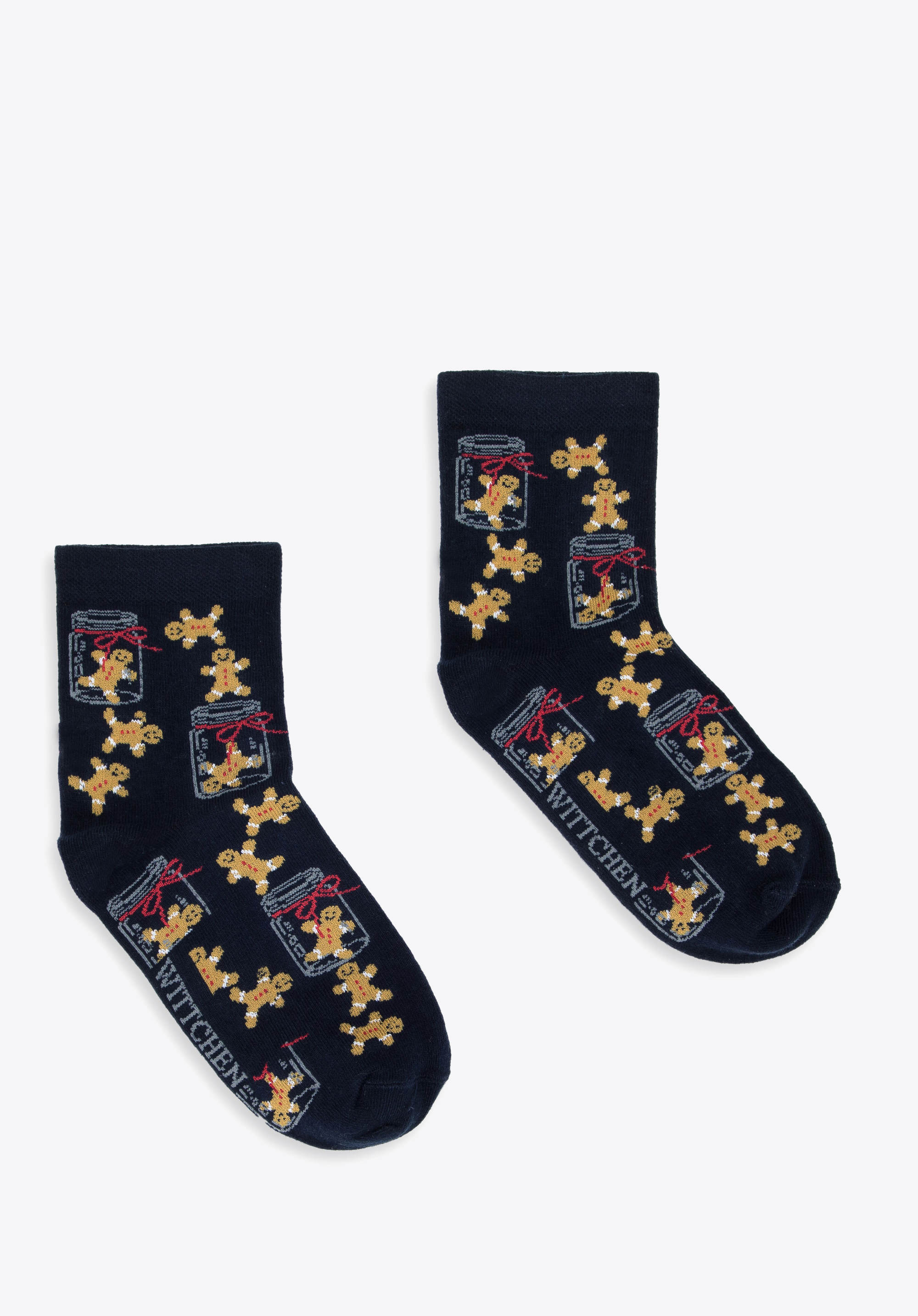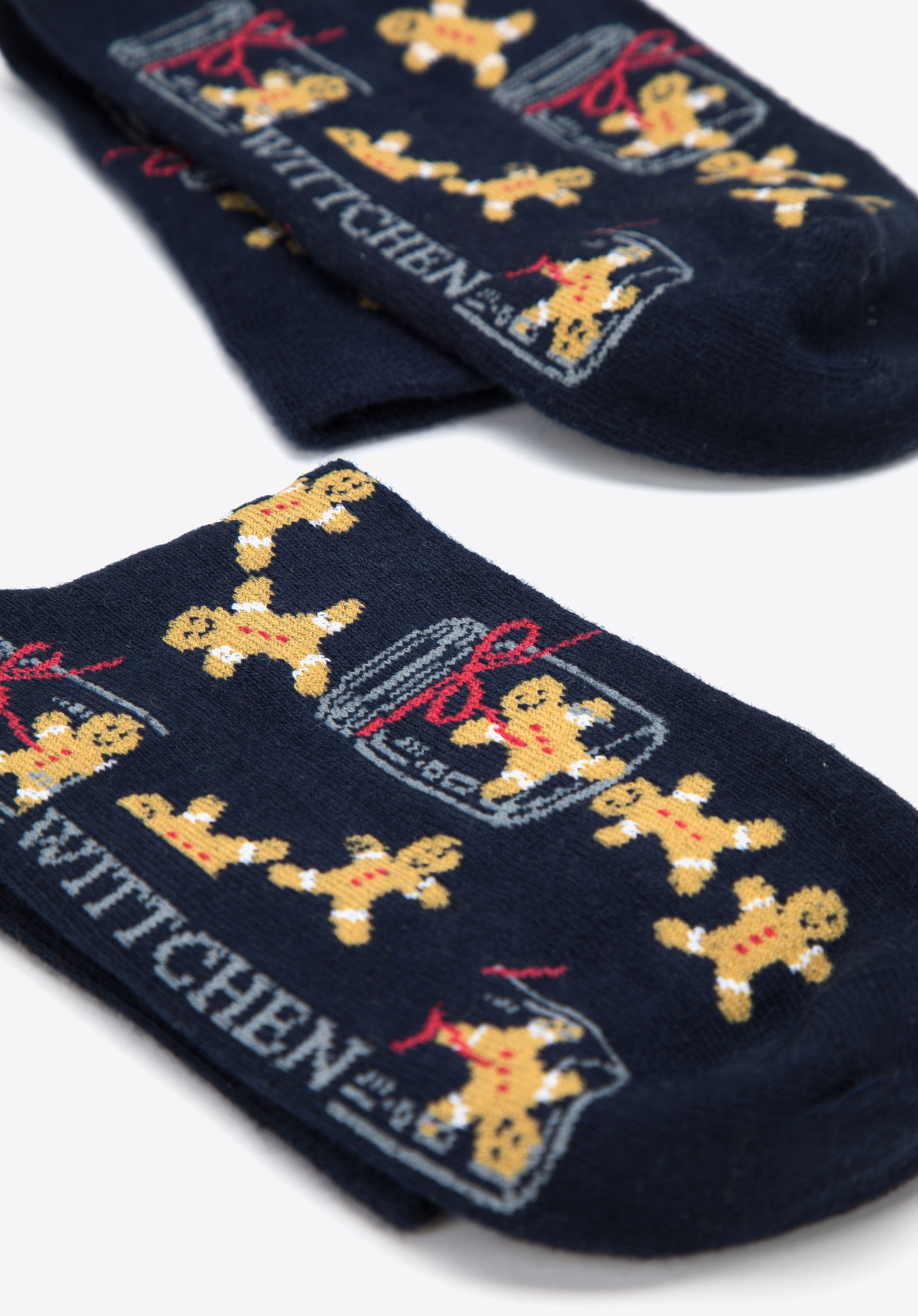 Wzór w drobne, piernikowe ciastka pokrywa całą skarpetę, a od spodu widnieje logo WITTCHEN. To świetny dodatek na przedświąteczny czas, a dzięki uniwersalnym kolorom możesz je nosić również przez cały rok. Damskie skarpetki w małe pierniczki to również świetny pomysł na prezent dla każdej kobiety.
