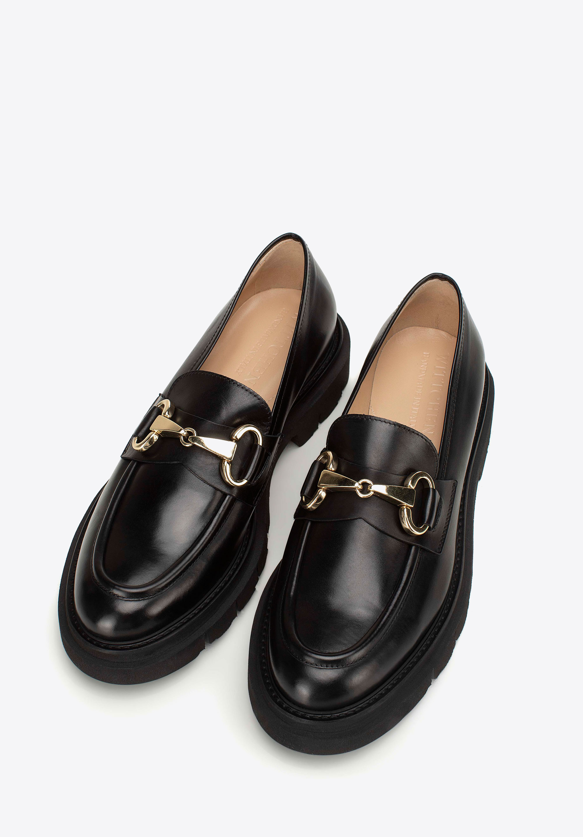 Damskie mokasyny zachwycają swoją klasyką! Ręcznie uszyte z najwyższej jakości skóry, prezentują się wytwornie i są synonimem trwałości. To buty, które nie tylko podążają za trendami, ale je wyznaczają. Ozdobna, złota klamra dodaje im charakteru i jest akcentem, który przyciąga spojrzenia. Solidna podeszwa ze żłobieniami nie tylko świetnie amortyzuje kroki, ale również zapewnia stabilność.