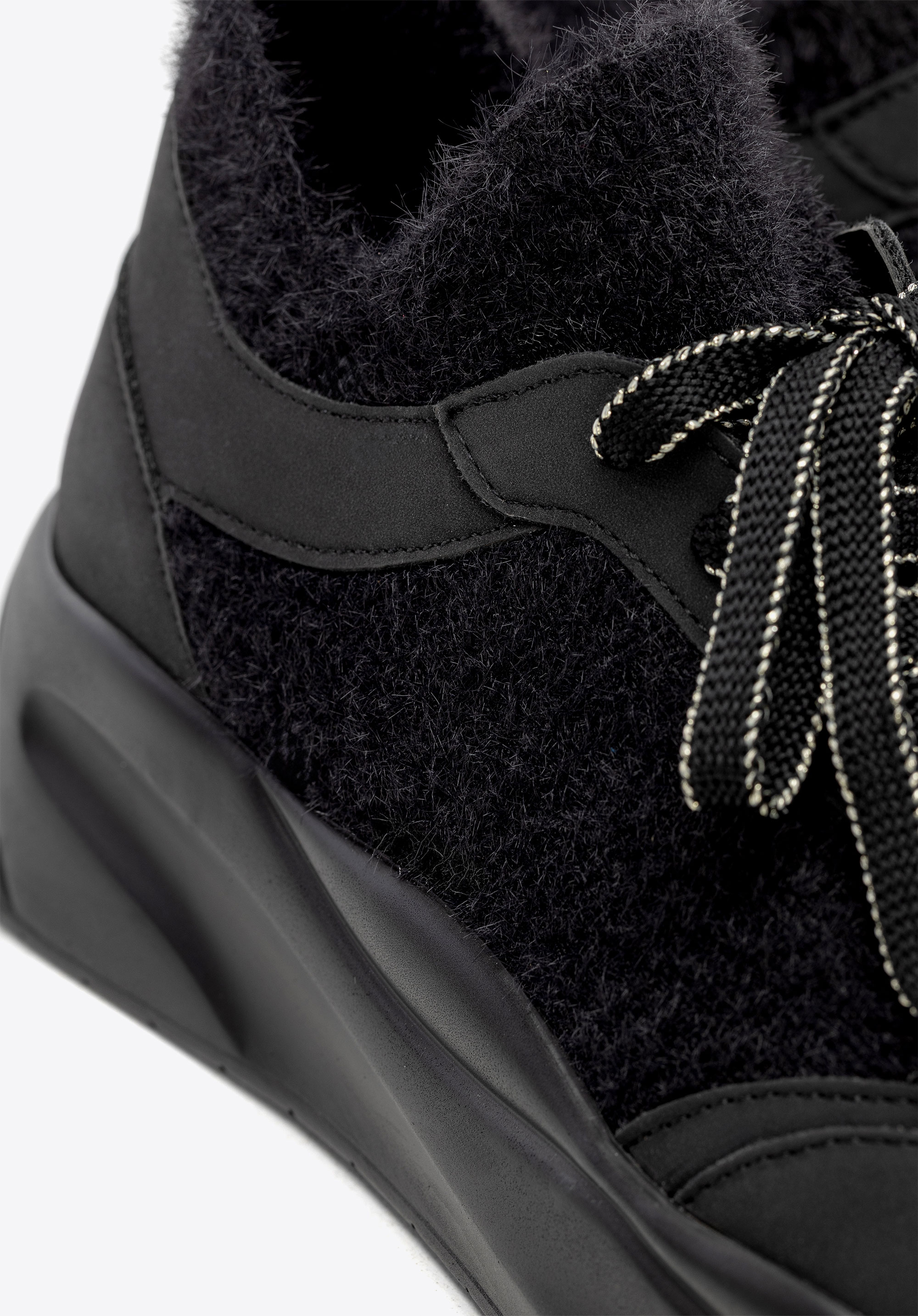 - Materiał: Ekoskóra w połączeniu z syntetycznym futerkiem tworzy nowoczesny i efektowny design, dbając jednocześnie o wygodę i ochronę stóp.