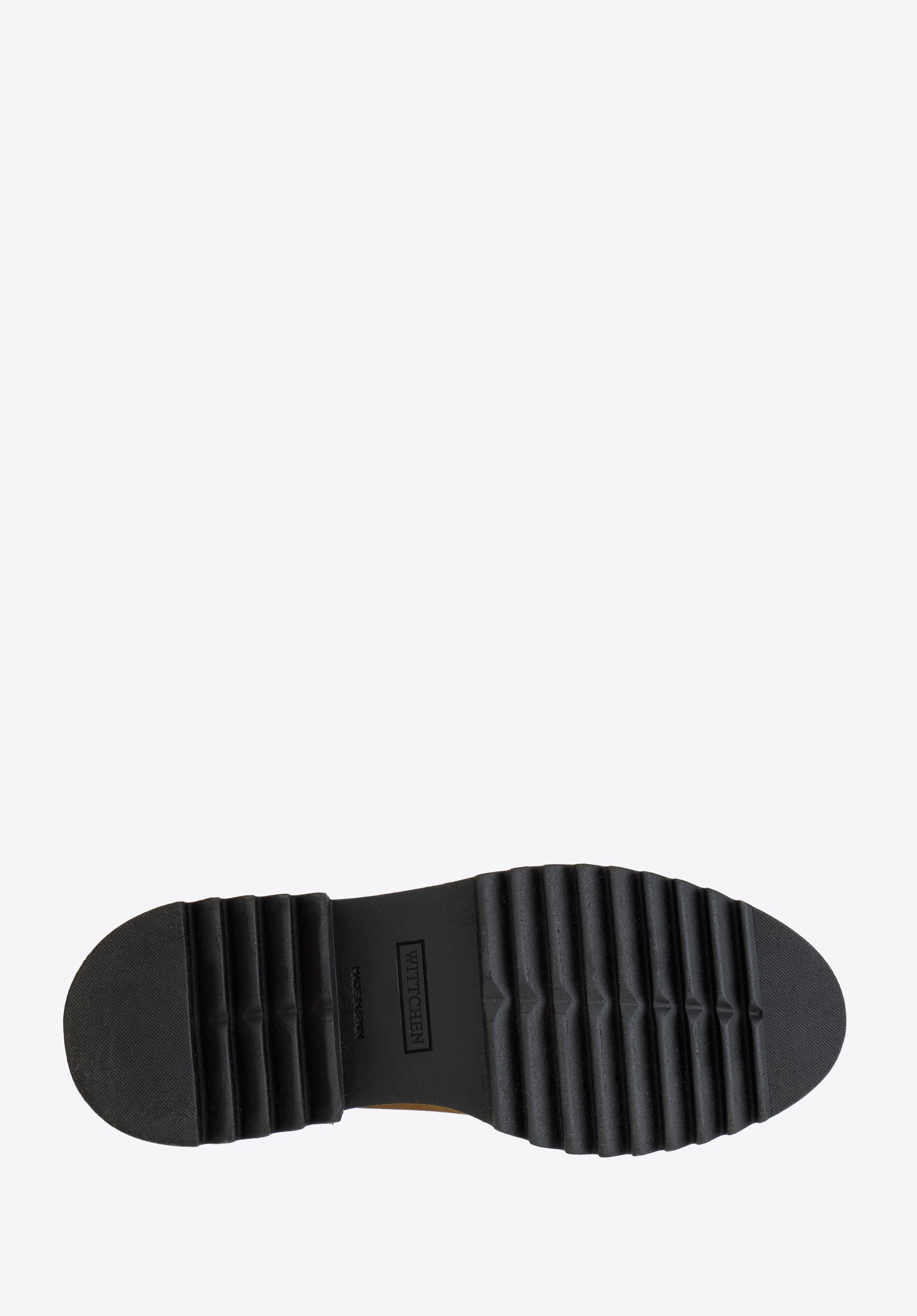w Hiszpanii z wysokiej jakości skóry zamszowej. Gruba podeszwa na platformie ze żłobieniem zapewni dobrą przyczepność do podłoża niemal w każdych warunkach. Dodatkowo doda Ci kilku centymetrów wzrostu.