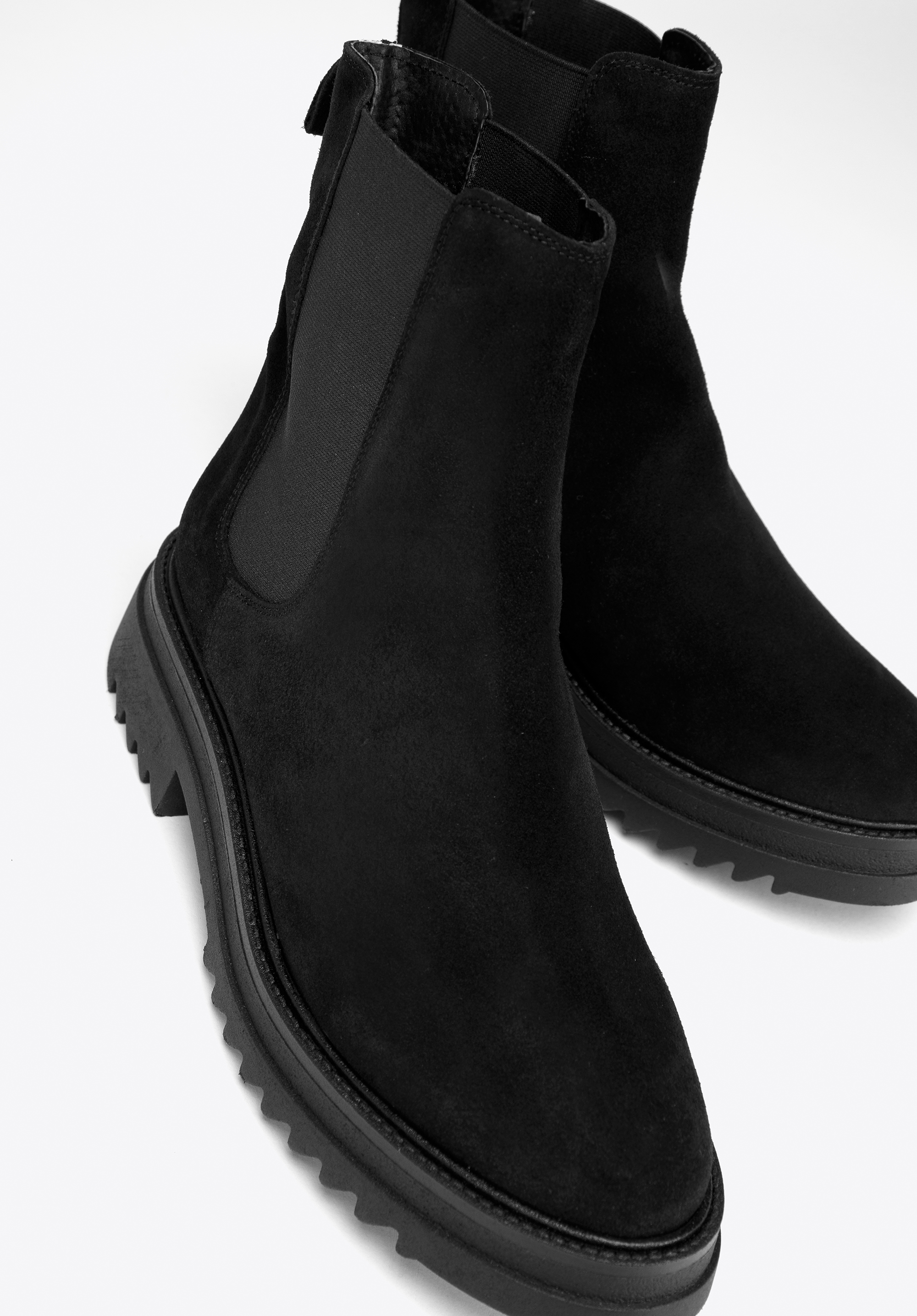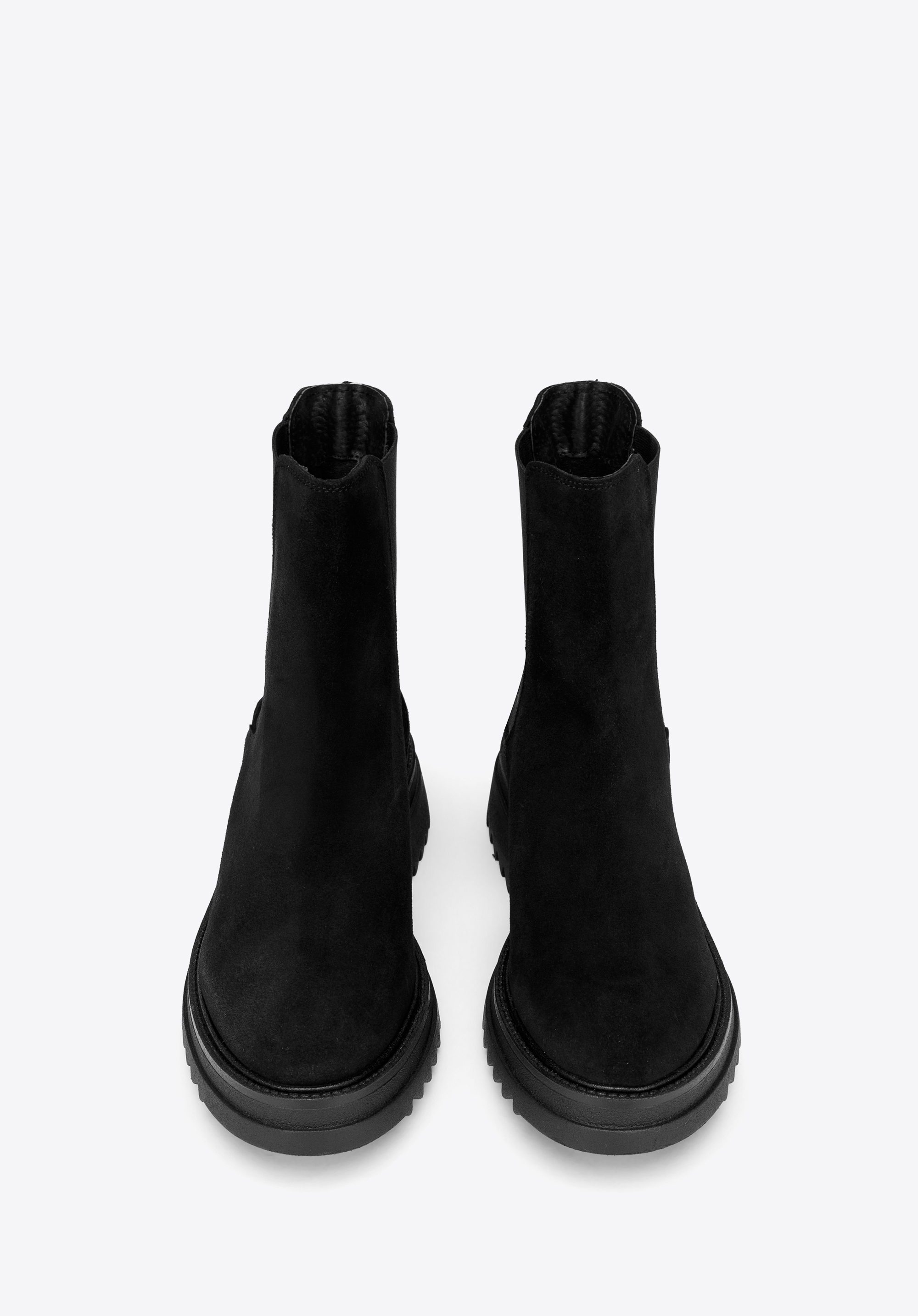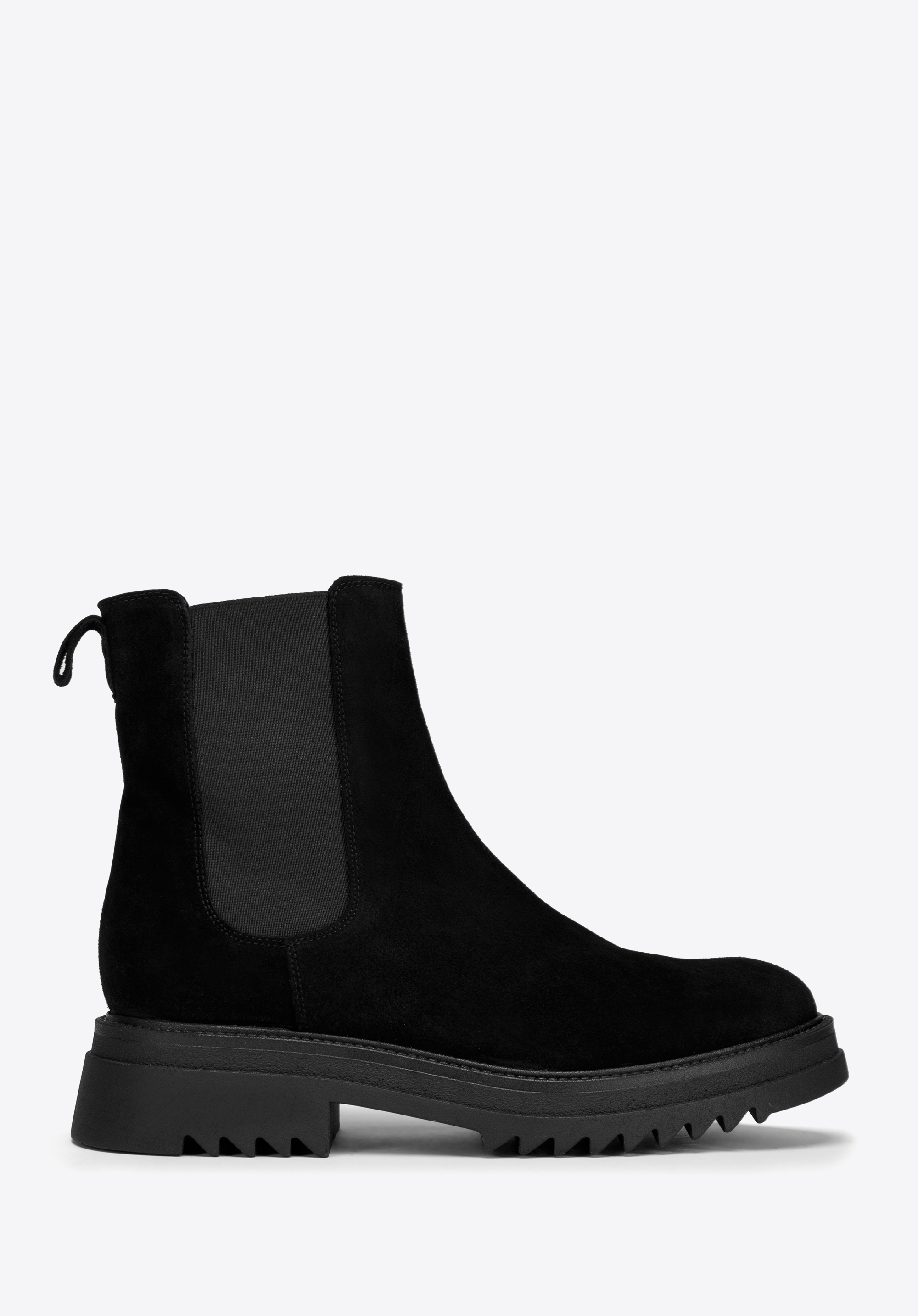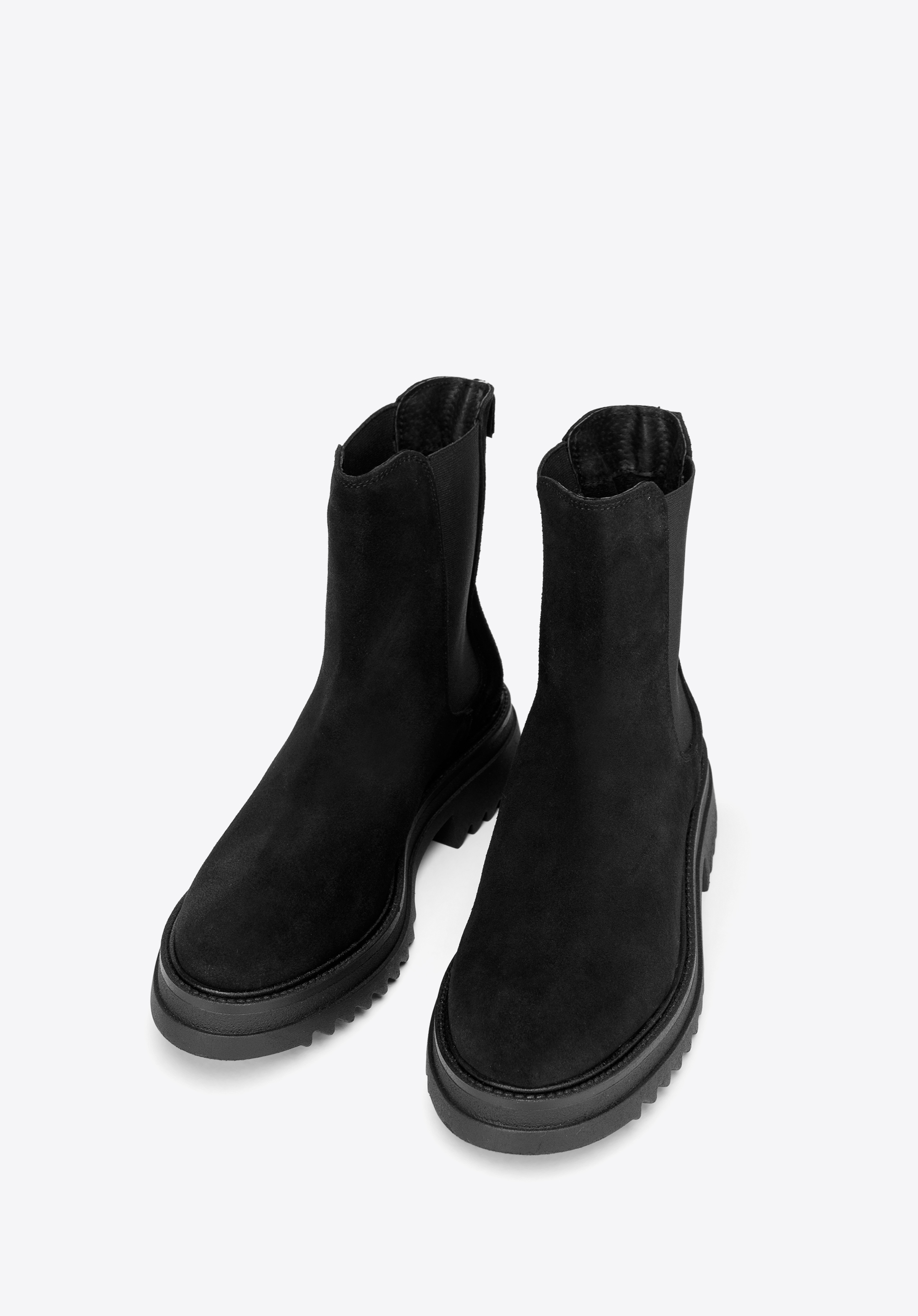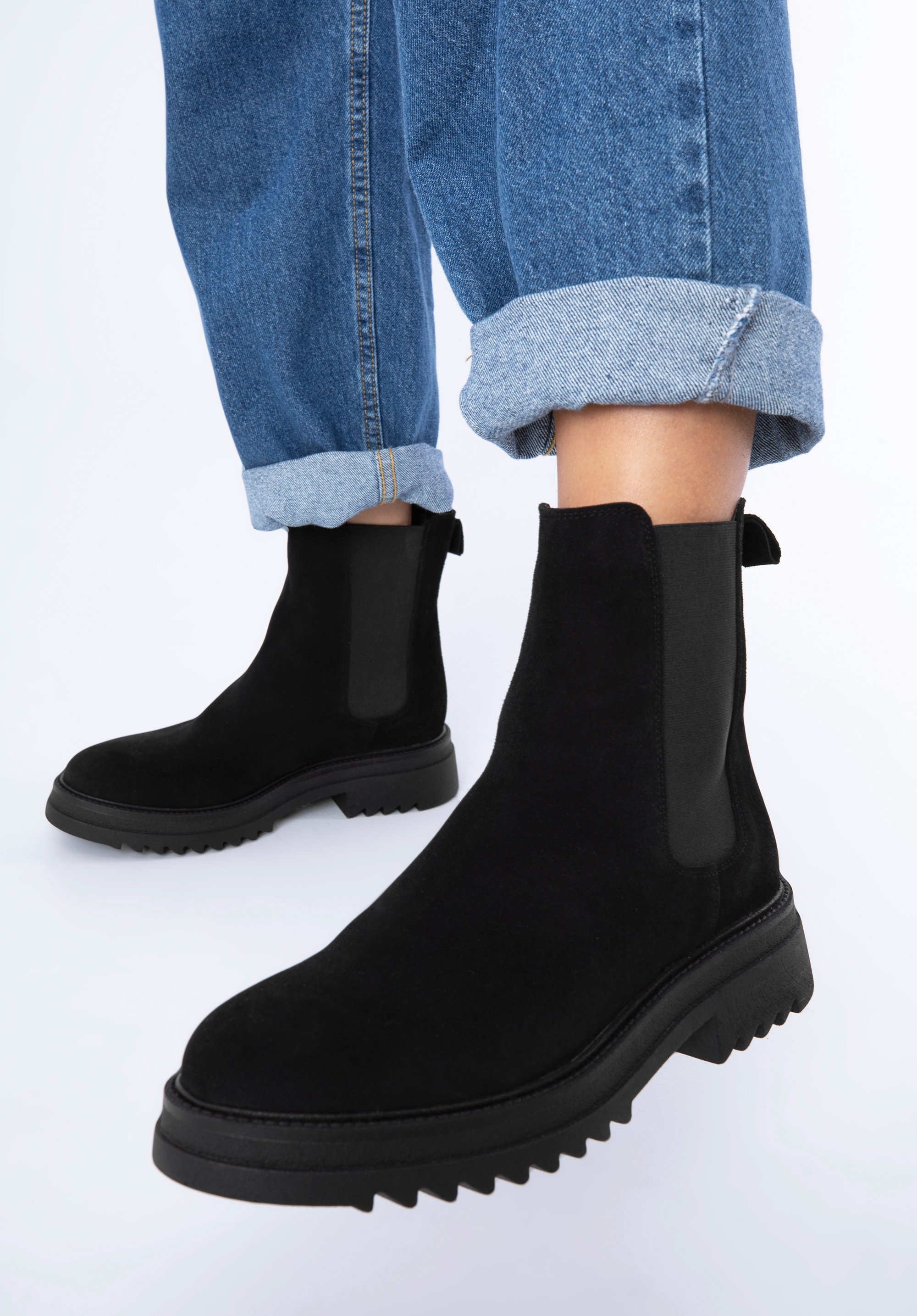 Klasyczny fason z charakterystycznymi gumkami po bokach ładnie dopasuje się do Twojej nogi. Noś je do ulubionej sukienki i skórzanej ramoneski lub połącz z dopasowanymi dżinsami i oversizowym swetrem.