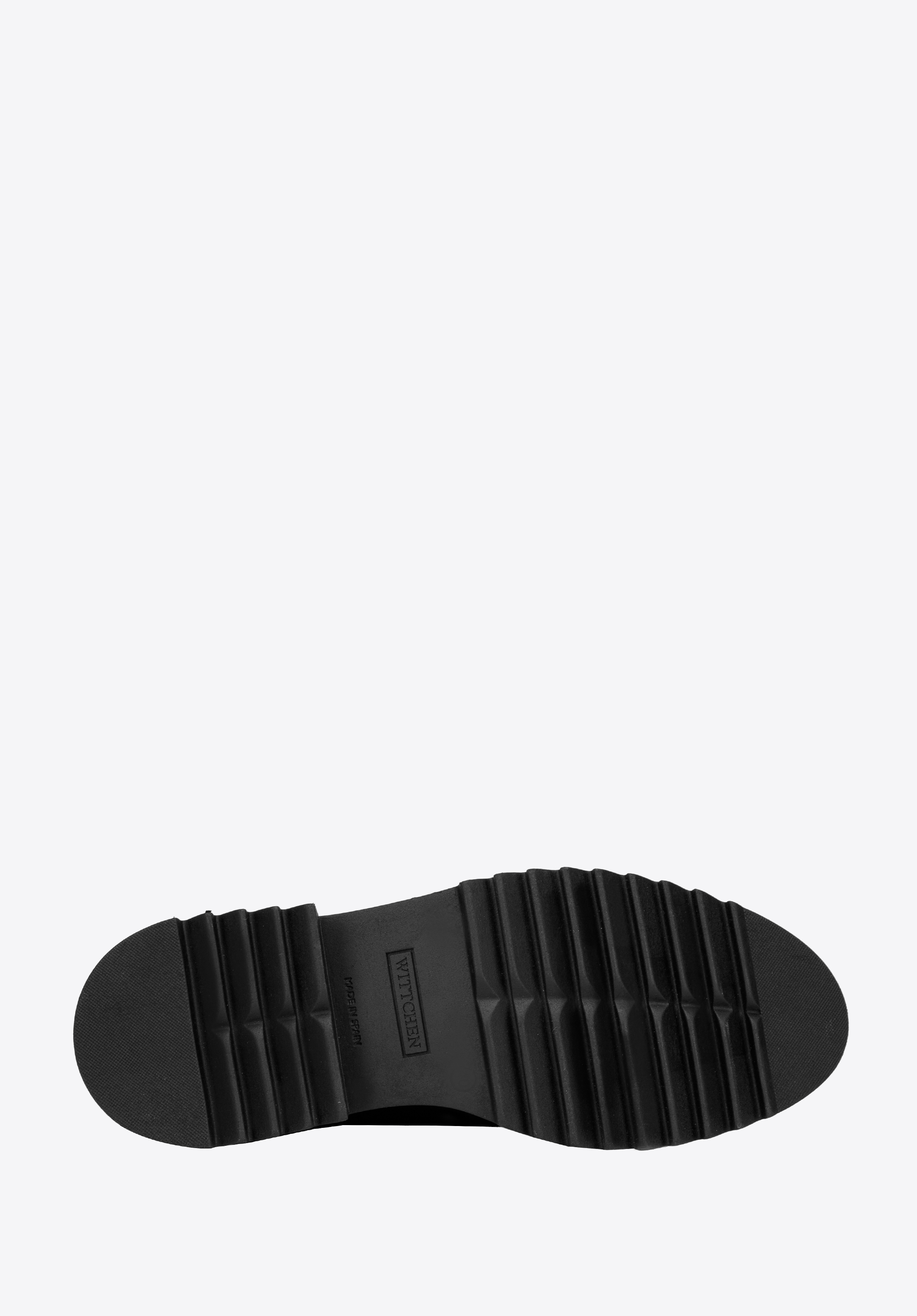 - na żłobionej grubej podeszwie;