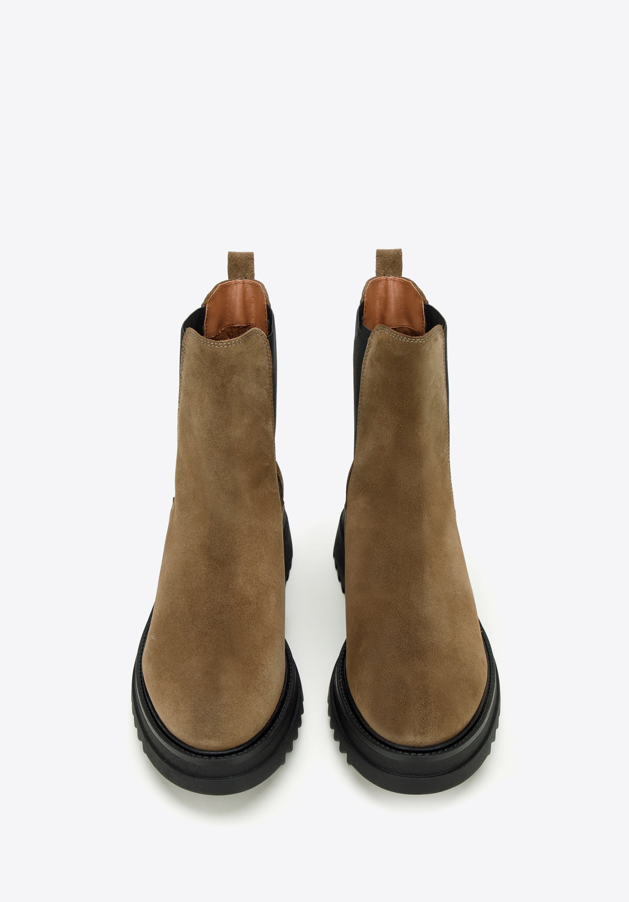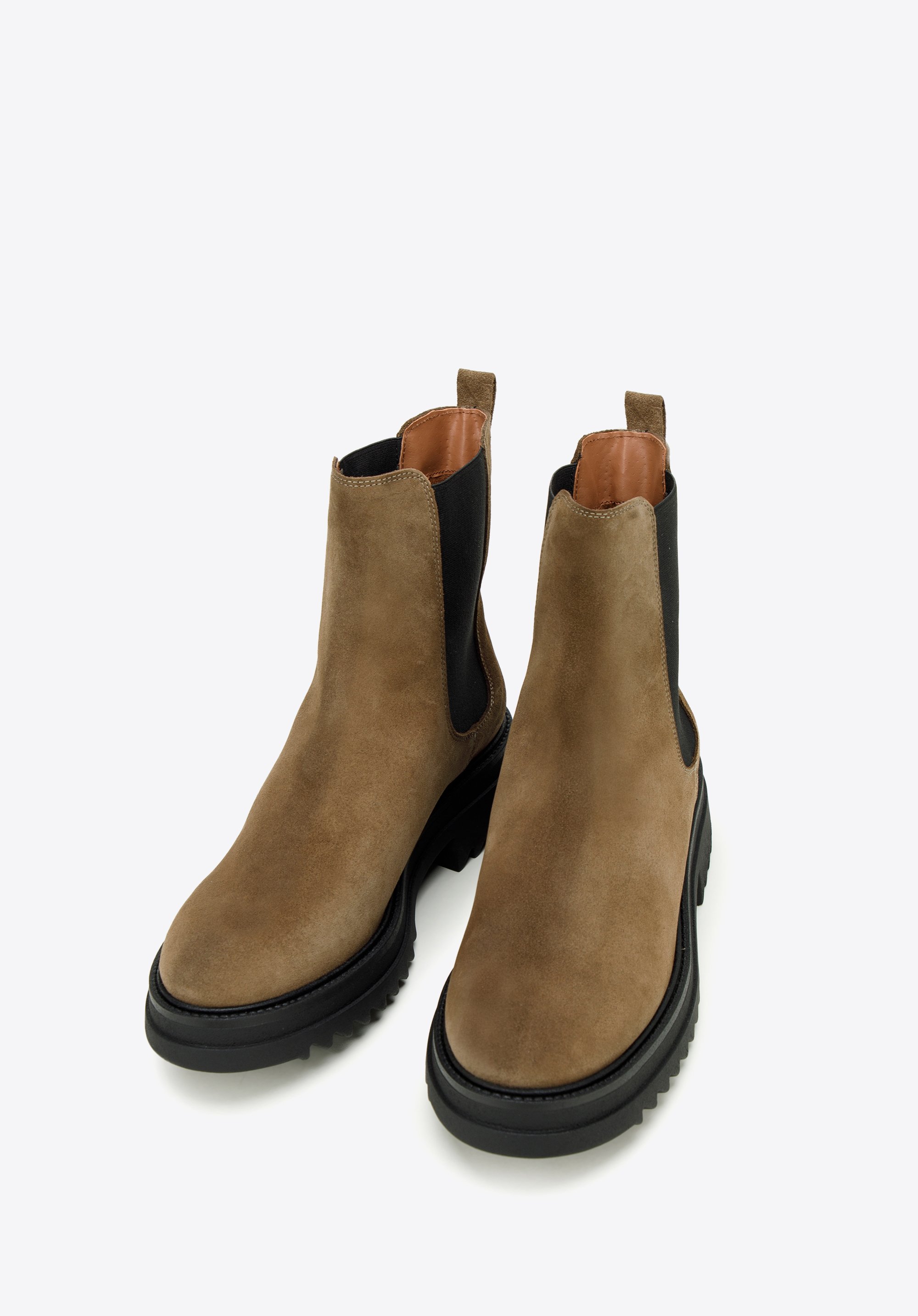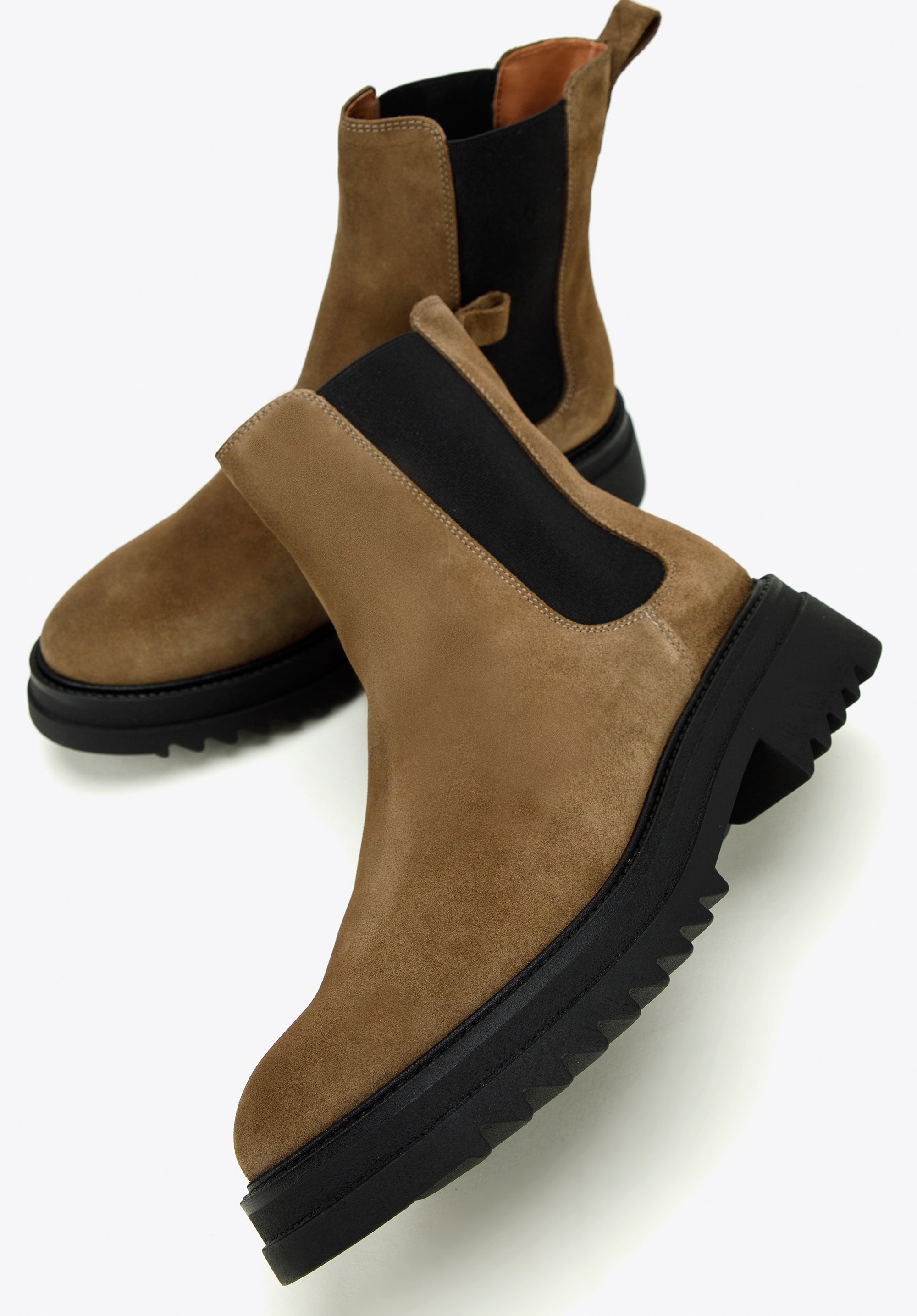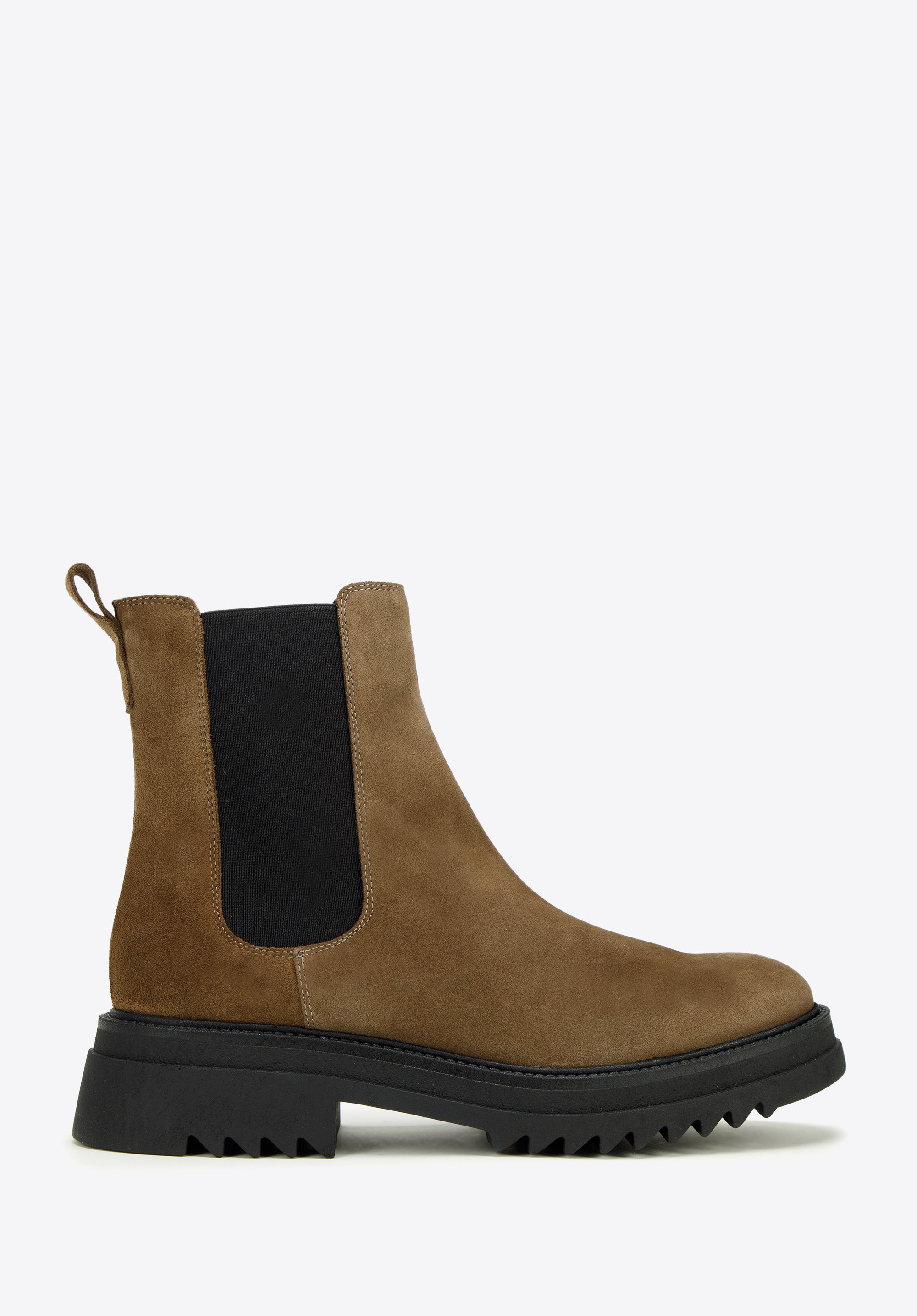 Klasyczny fason z charakterystycznymi gumkami po bokach ładnie dopasuje się do Twojej nogi. Noś je do ulubionej sukienki i skórzanej ramoneski lub połącz z dopasowanymi dżinsami i oversizowym swetrem.