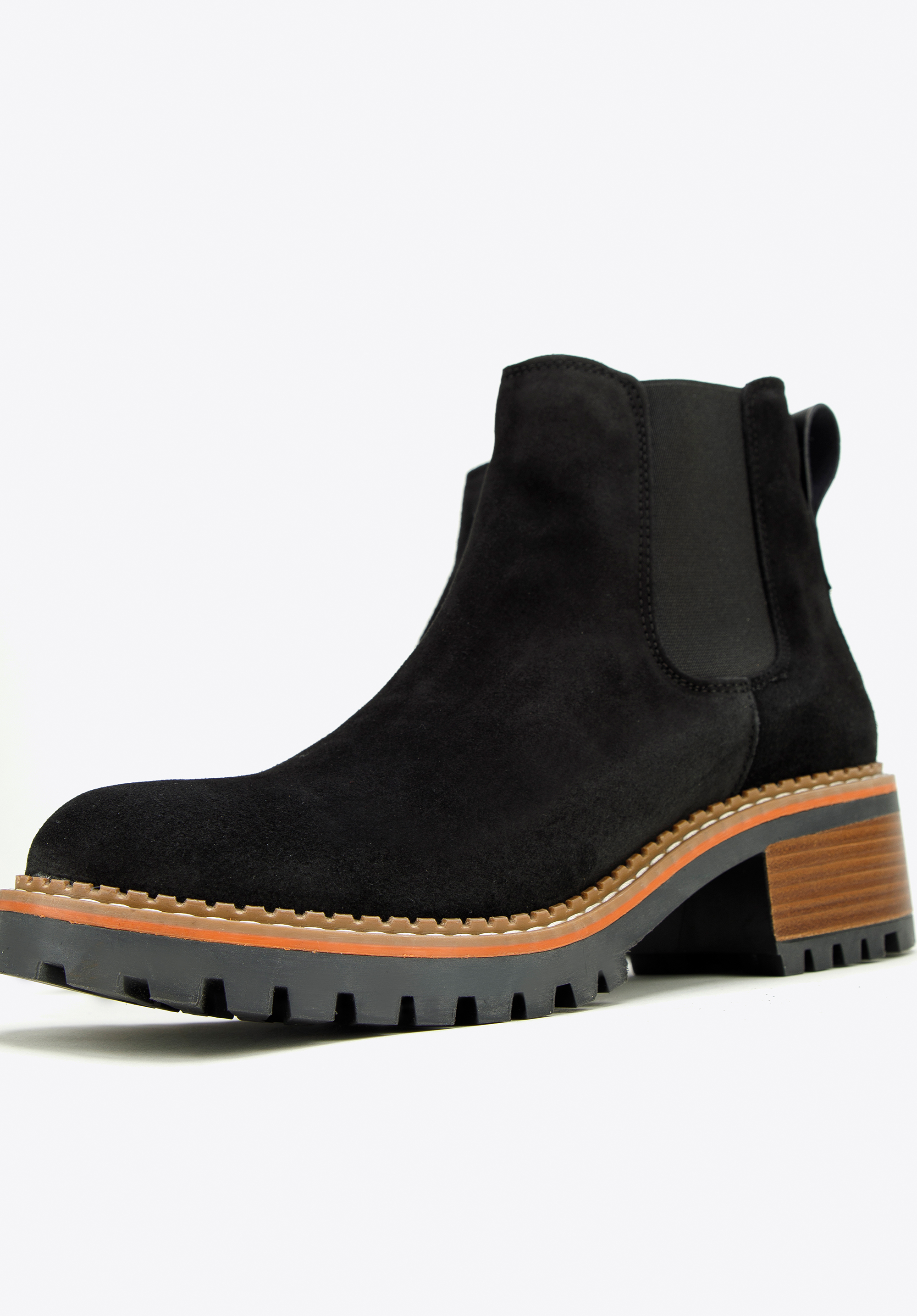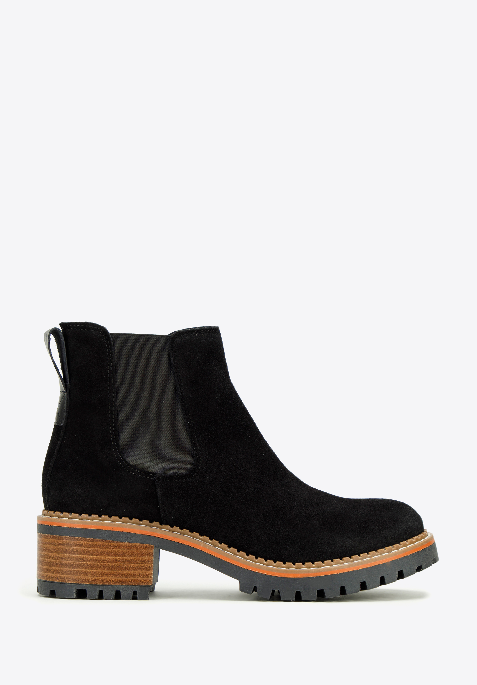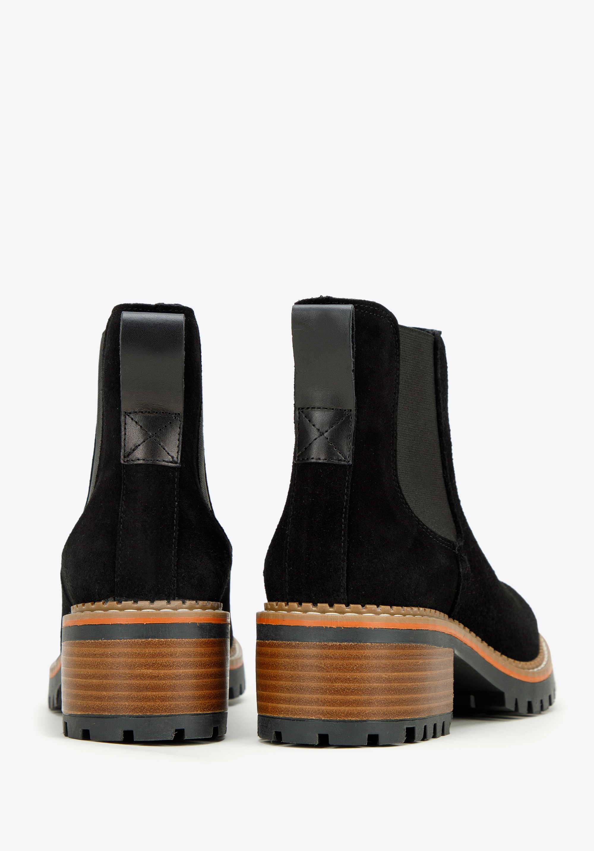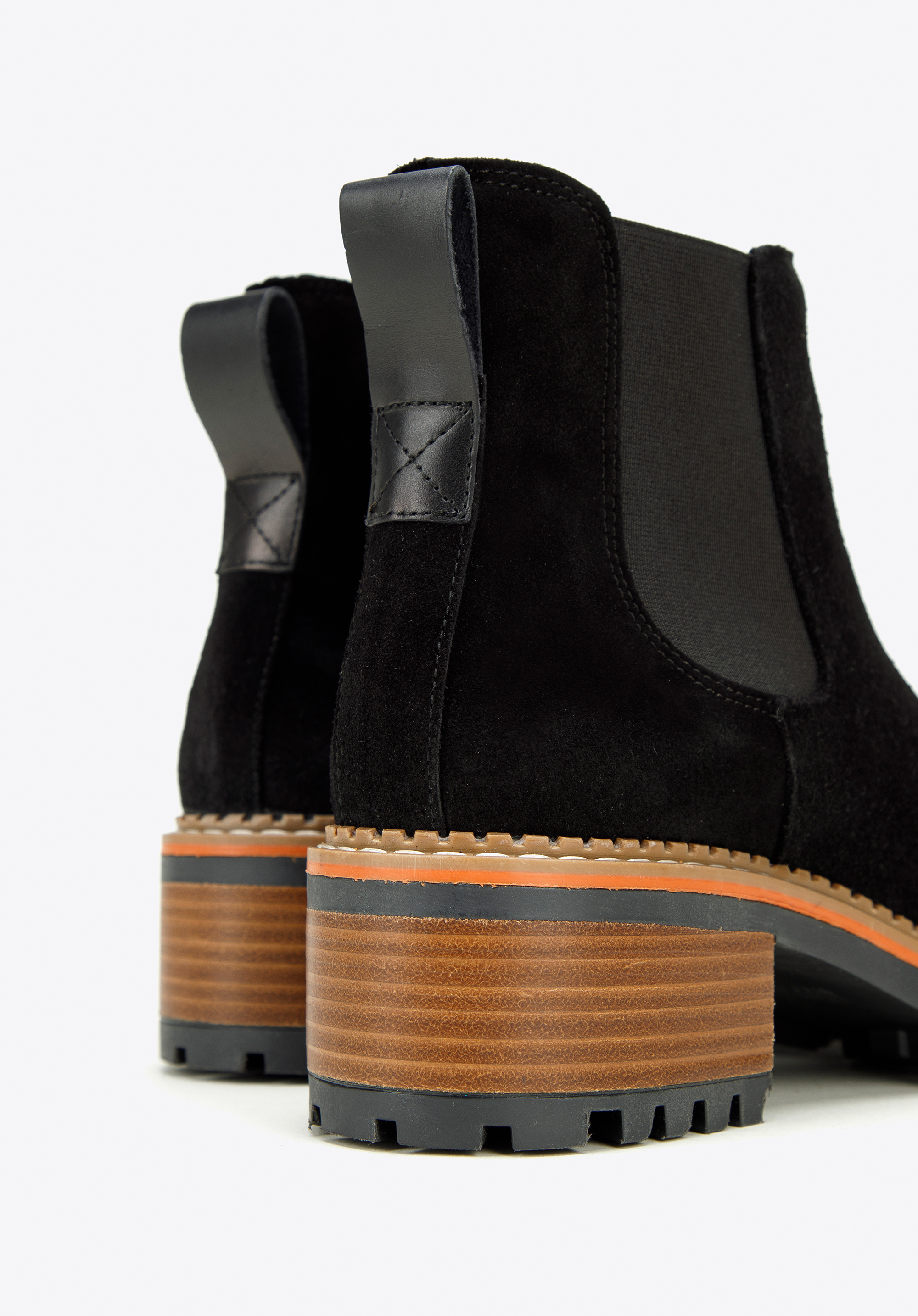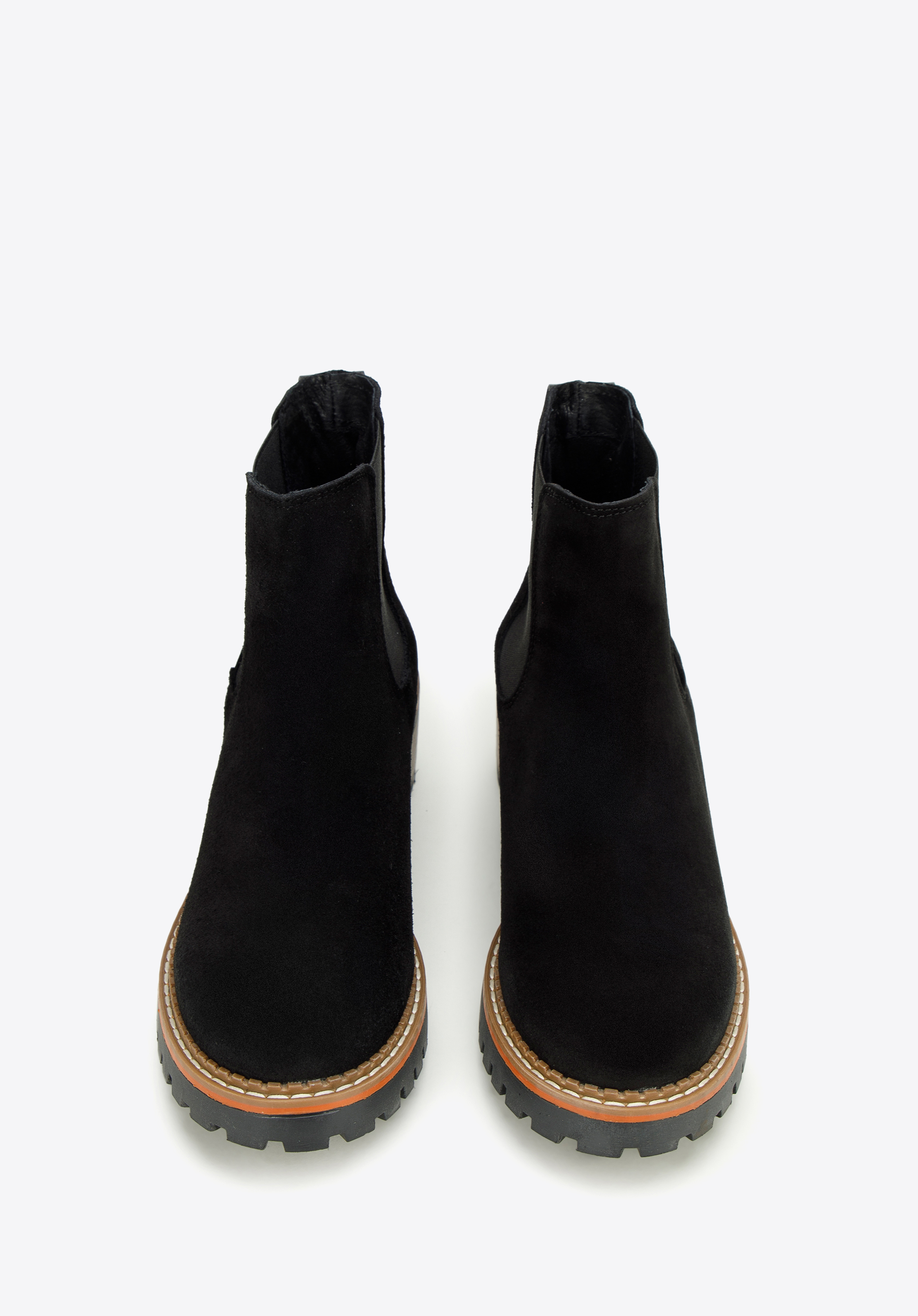 w Hiszpanii z wysokiej jakości skóry zamszowej. Klasyczna czerń ładnie kontrastuje z grubą, brązową platformą, dodatkowo przeszytą jasną nitką. Dzięki żłobieniu podeszwa zapewni dobrą przyczepność do podłoża niemal w każdą pogodę i doda Ci kilku centymetrów wzrostu. Noś je do ulubionej skórzanej mini i koszulki lub połącz z dżinsami boyfriendami i bluzą – w każdej sytuacji będziesz wyglądała stylowo.