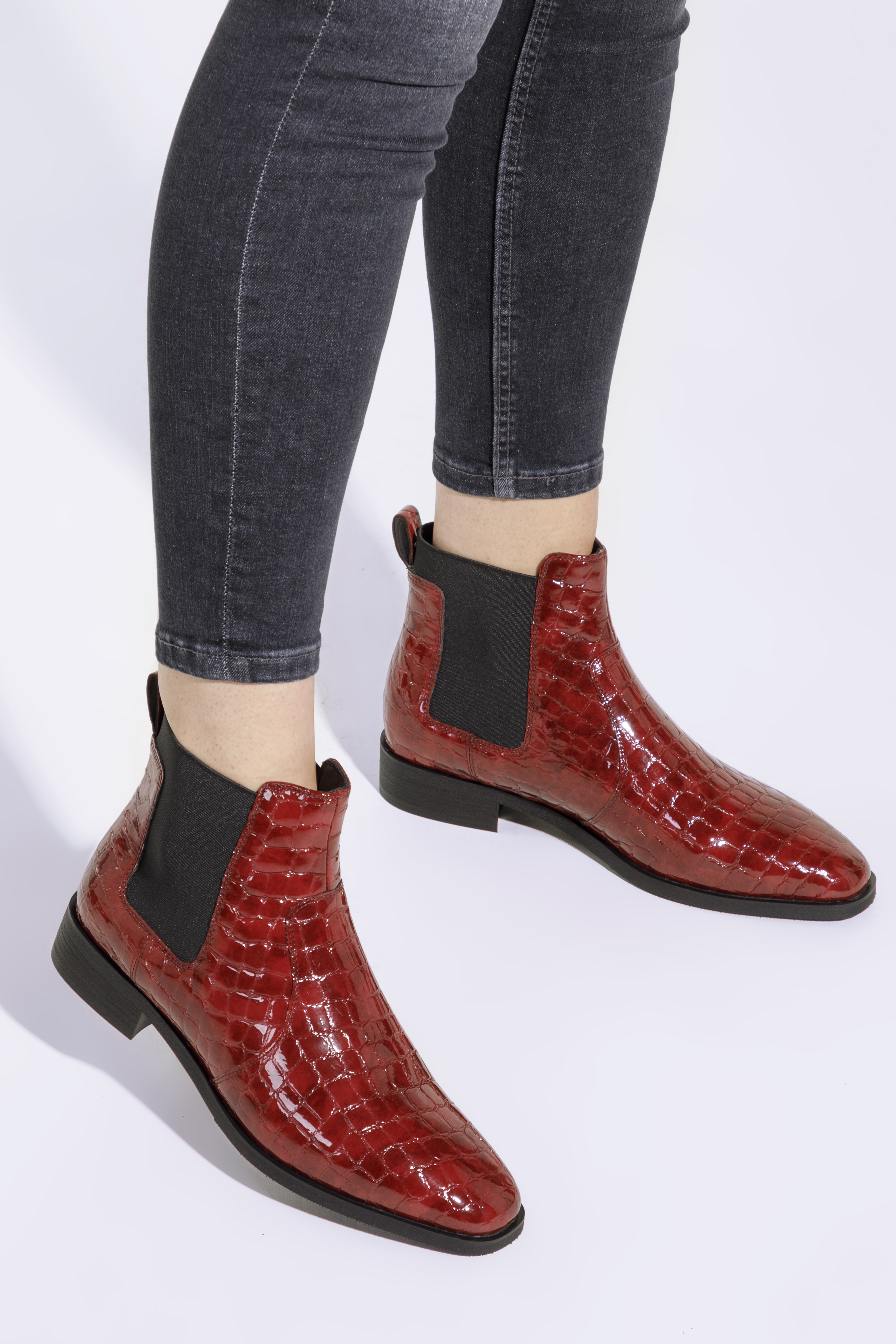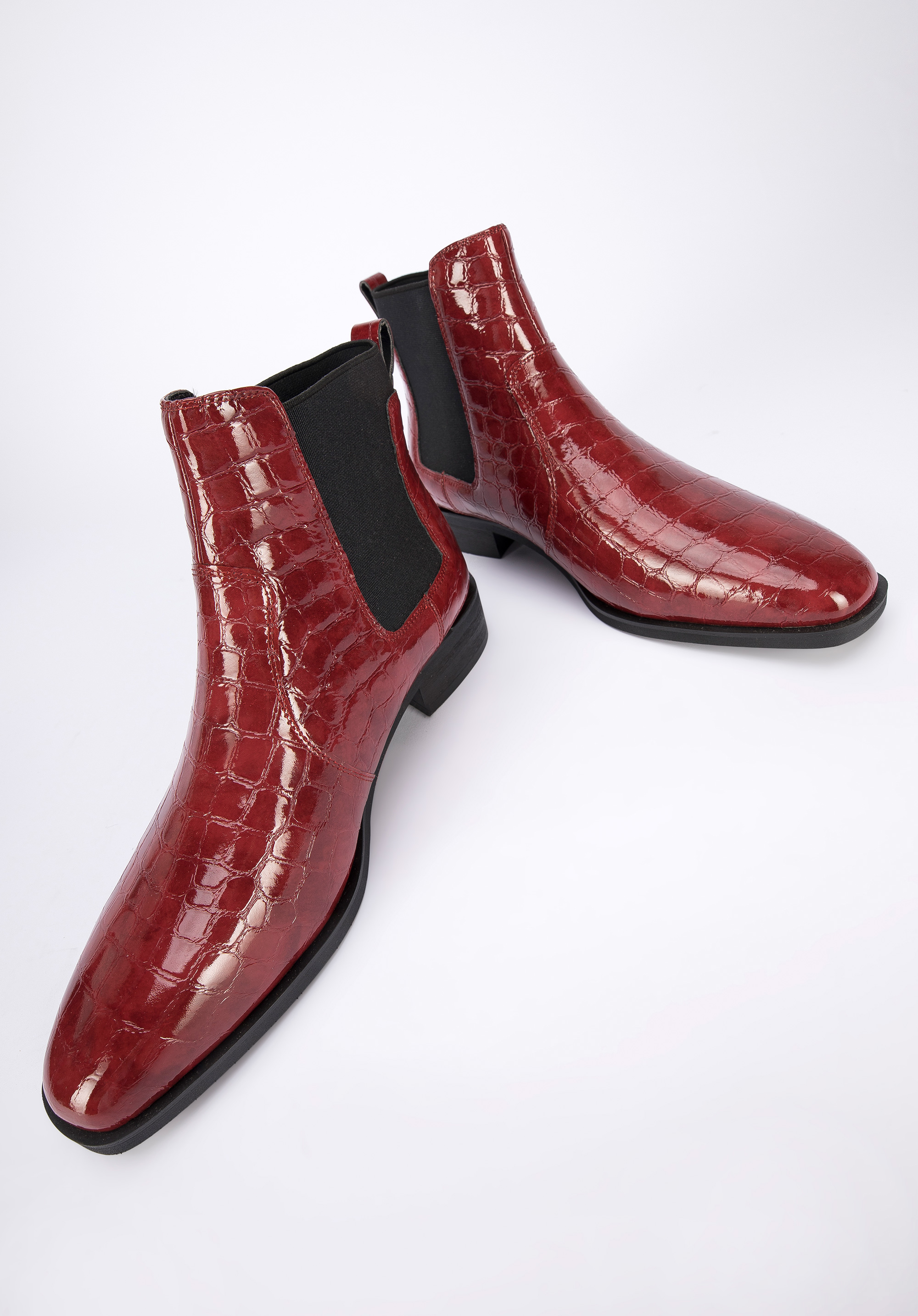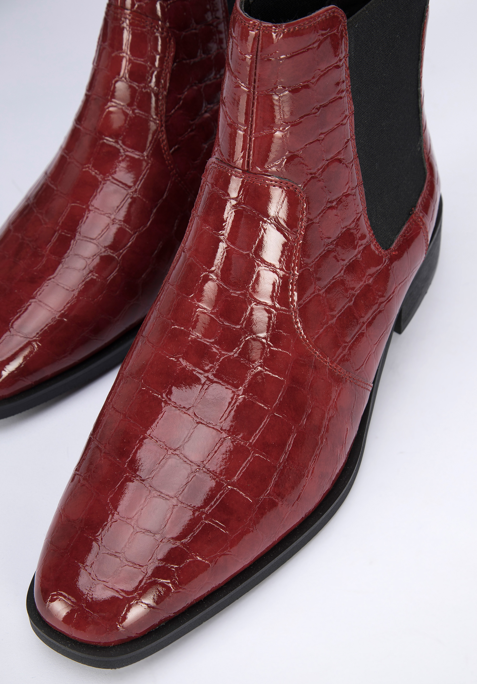 wykonane z wysokiej jakości skóry lakierowanej o fakturze croco, która przyciąga wzrok i będzie modna przez długi czas. Mają skórzaną wkładkę i