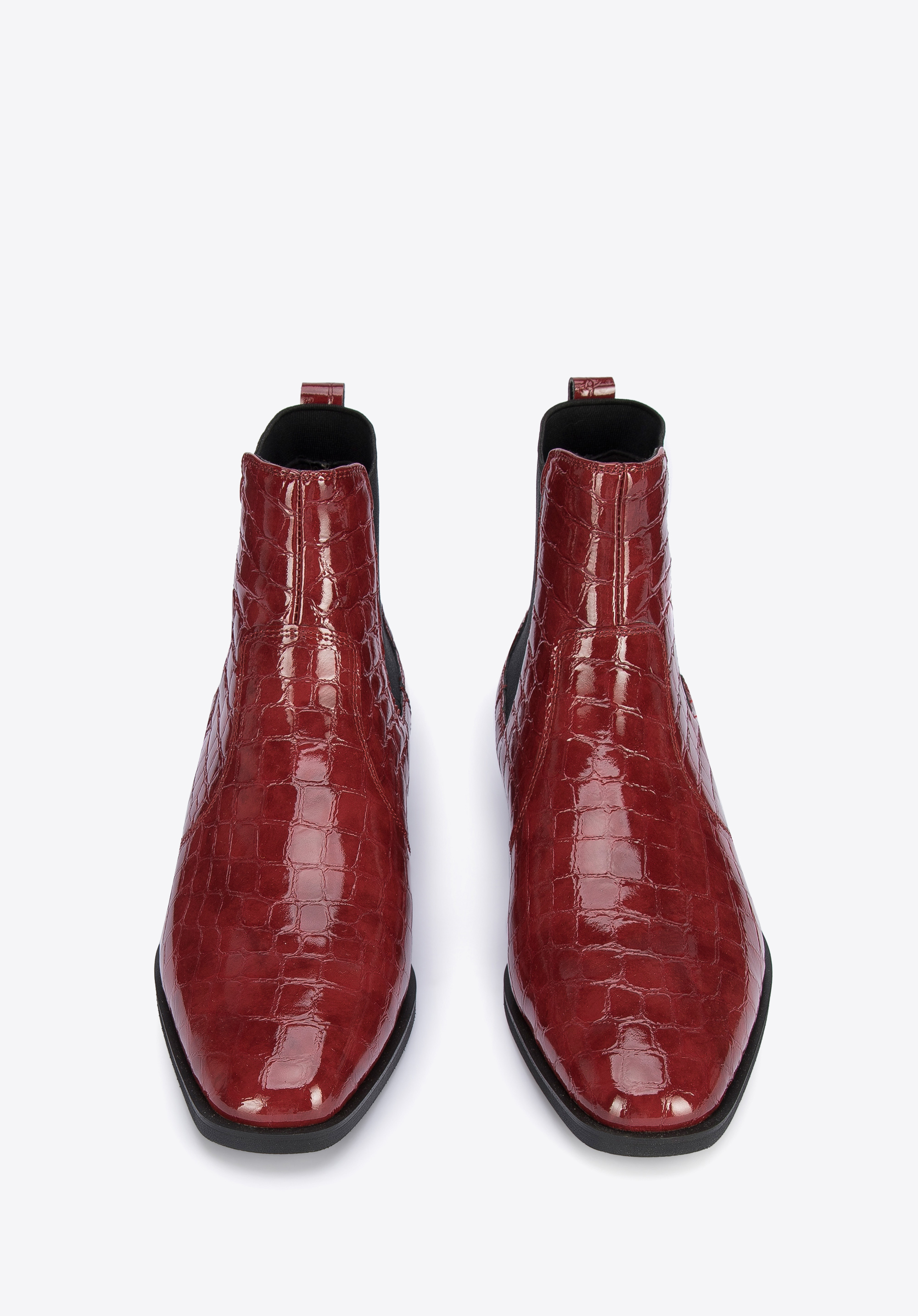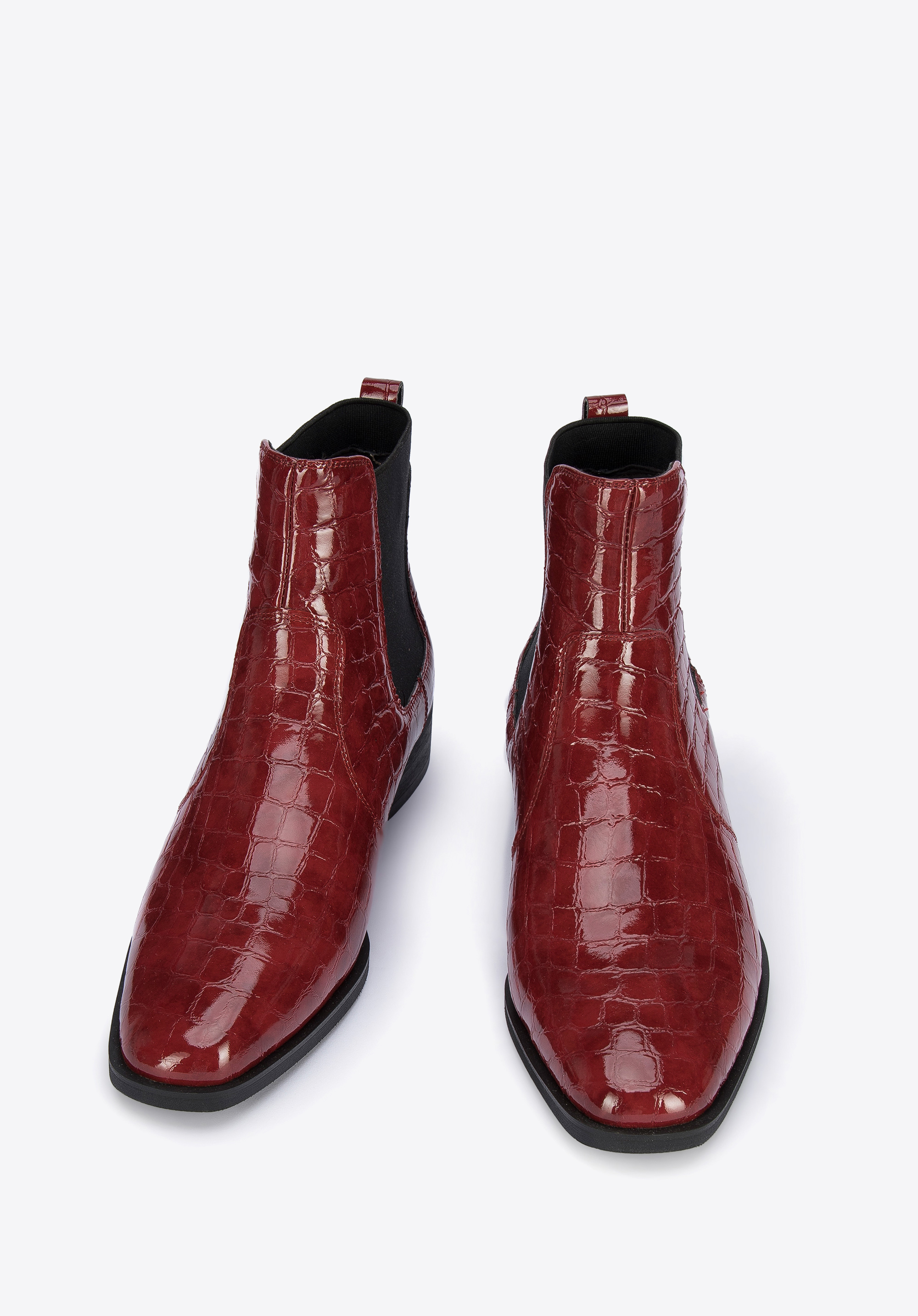 niski, wygodny obcas, więc komfortowo przechodzisz w nich przez cały dzień. Klasyczne damskie sztyblety ze skóry lakierowanej croco to ponadczasowy dodatek, który warto mieć w swojej szafie.