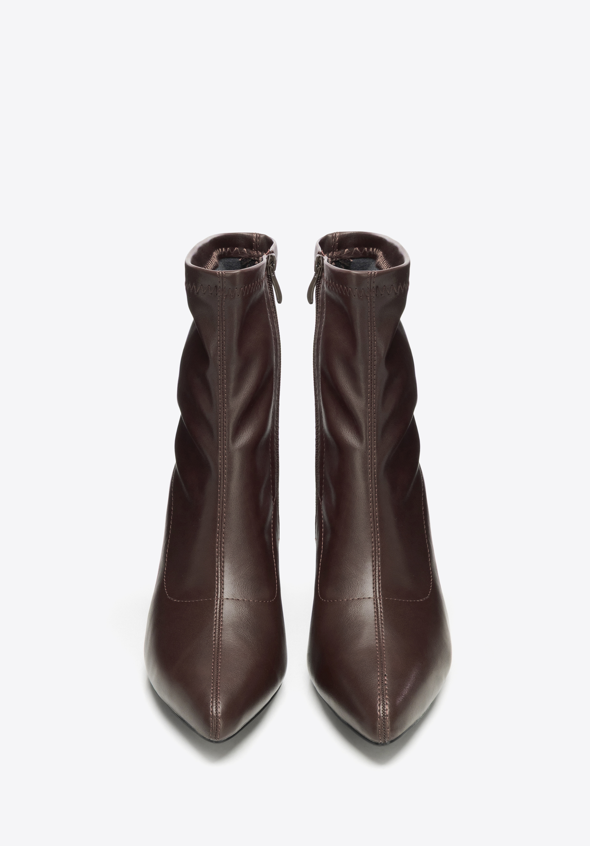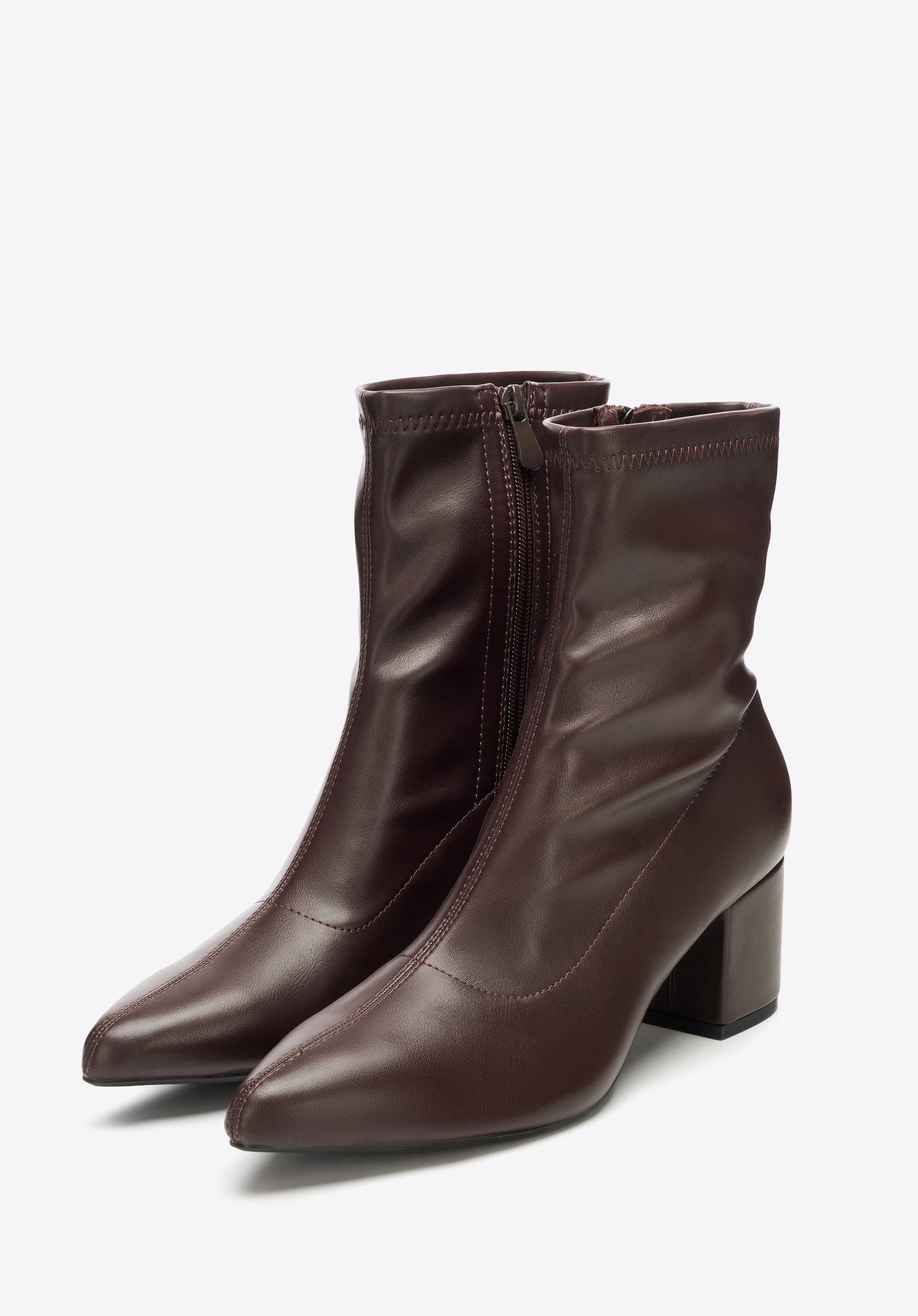 Dodaj swojej stylizacji wyrafinowanego charakteru dzięki tym damskim botkom. Dopasowana cholewka subtelnie modeluje nogę, a smukły nosek w szpic w połączeniu ze stabilnym obcasem typu słupek pięknie wydłuża sylwetkę, dodając jej lekkości i elegancji. Delikatne dekoracyjne przeszycia podkreślają modny detal, a zamek po wewnętrznej stronie zapewnia komfortowe zakładanie i zdejmowanie – wszystko to w harmonii ze stylem i funkcjonalnością.