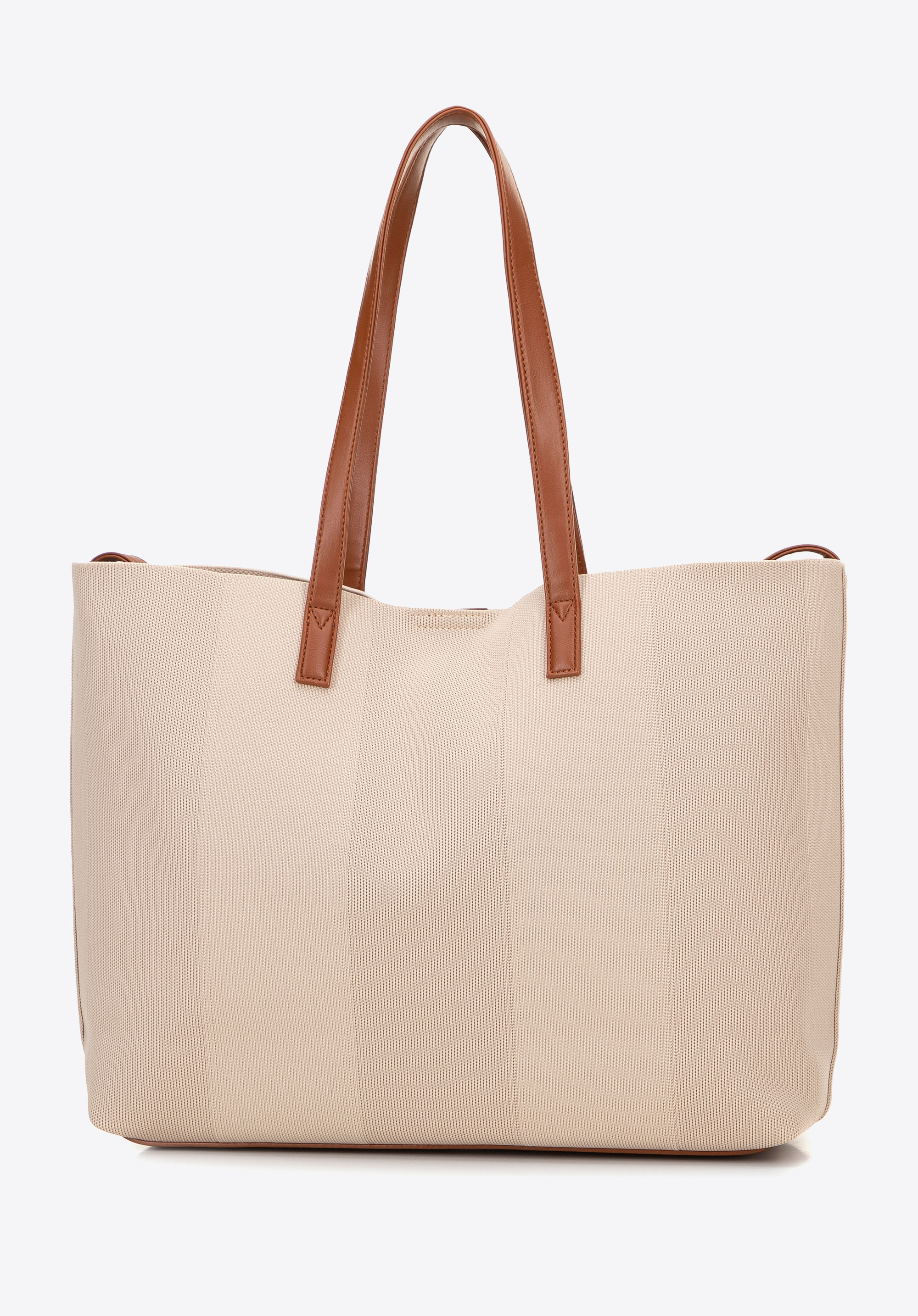 Elegancja połączona z funkcjonalnością – torebka shopperka WITTCHEN to dodatek, który doskonale uzupełni każdą stylizację. Przestronny, lekki fason bez usztywnienia sprawia, że torebka będzie idealnym wyborem na zakupy, spacer czy wakacyjne wycieczki. Dzięki regulowanemu paskowi wewnętrznemu możesz dostosować kształt i pojemność torby do swoich potrzeb, a zapięcie na magnes gwarantuje bezpieczeństwo przechowywanych rzeczy. Wyraziste wyszywane logo WITTCHEN przyciąga wzrok, podkreślając elegancję tego modelu.