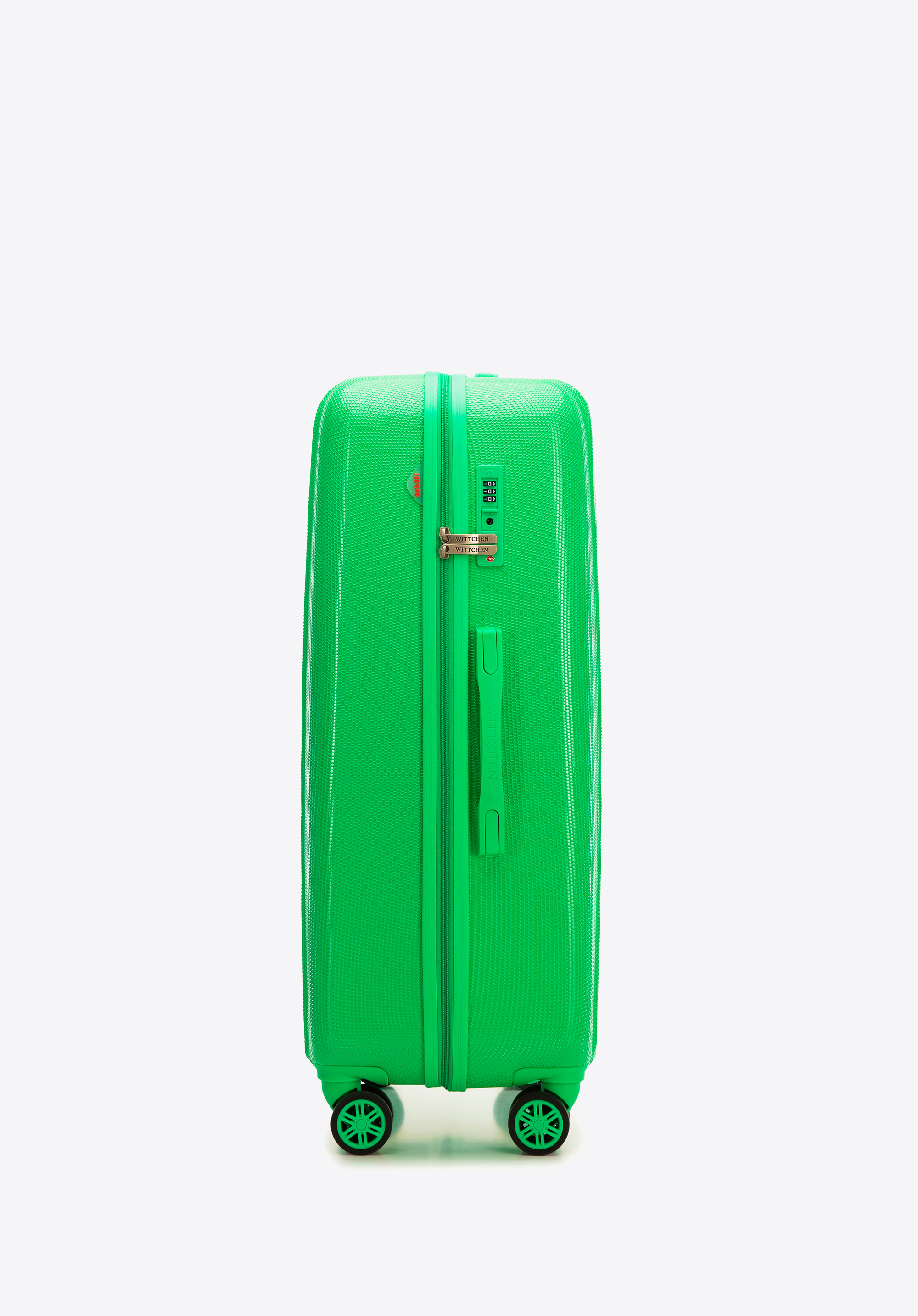 - Design i praktyczne detale: Pionowe tłoczenia oraz faktura plastra miodu nadają walizce nowoczesny, stylowy wygląd, jednocześnie chroniąc ją przed zarysowaniami.