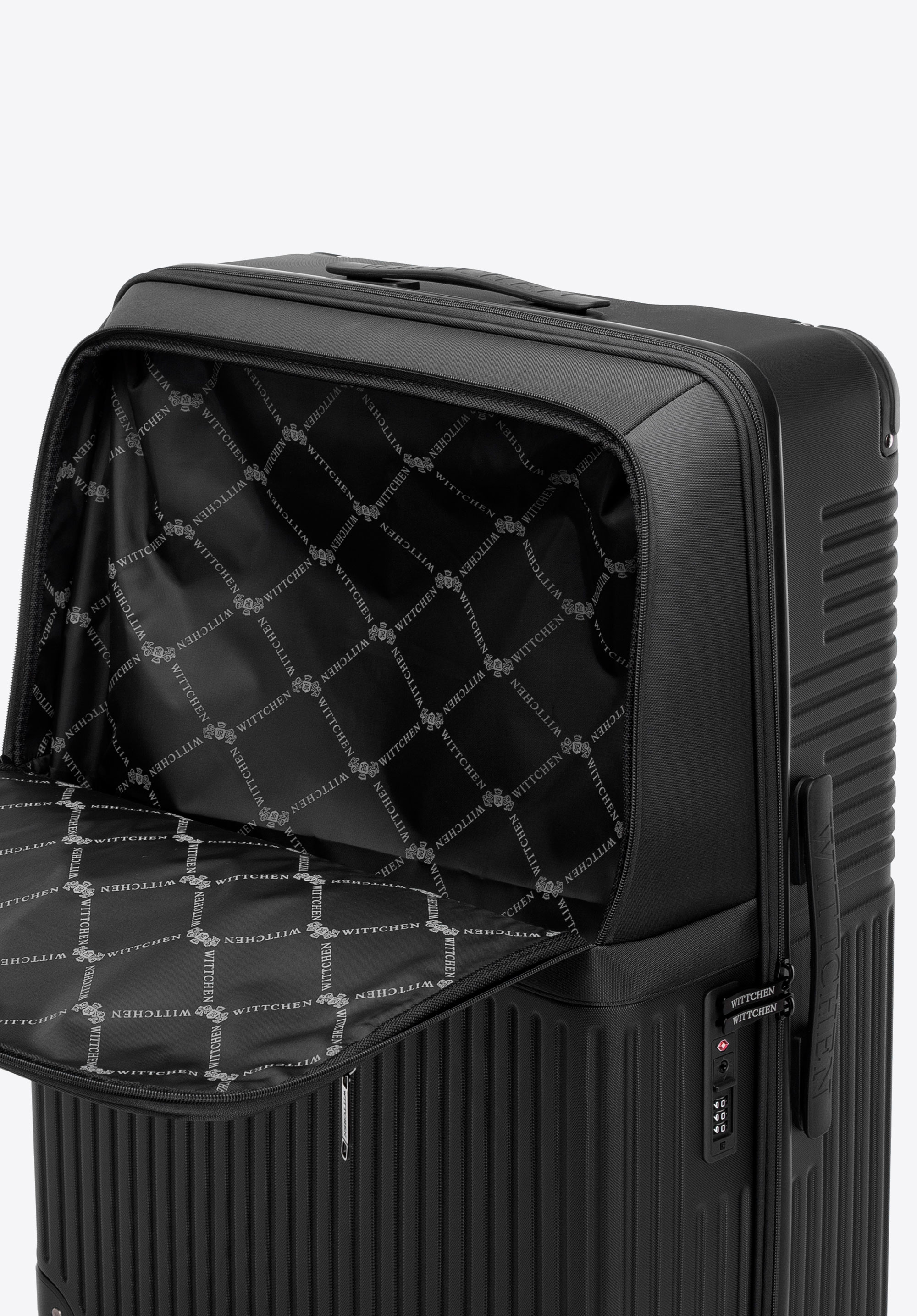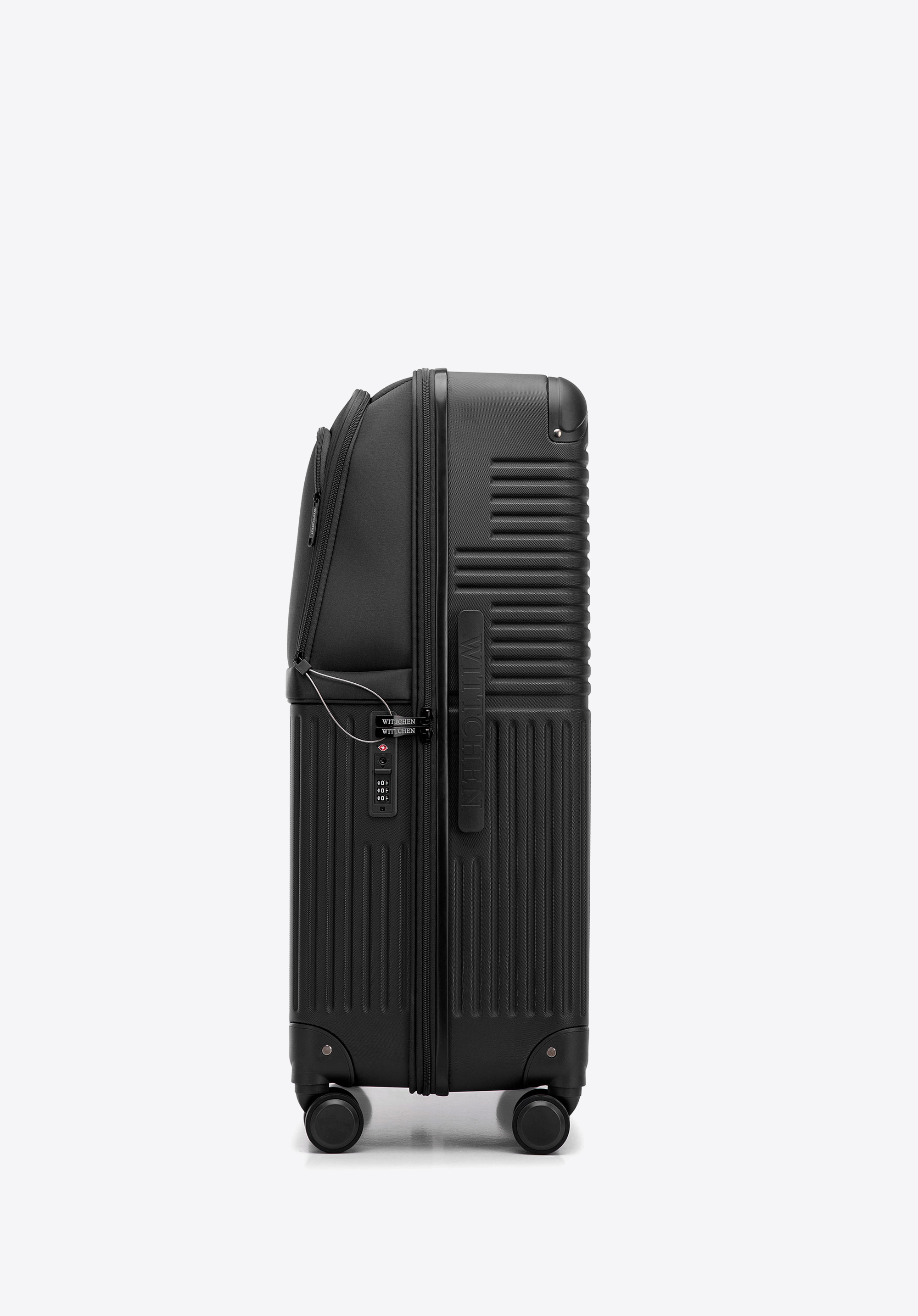 - Połączenie bezpieczeństwa i funkcjonalności: Wzmocnione narożniki walizki w miejscach ze strukturą ABS zwiększają jej odporność na uderzenia i uszkodzenia.