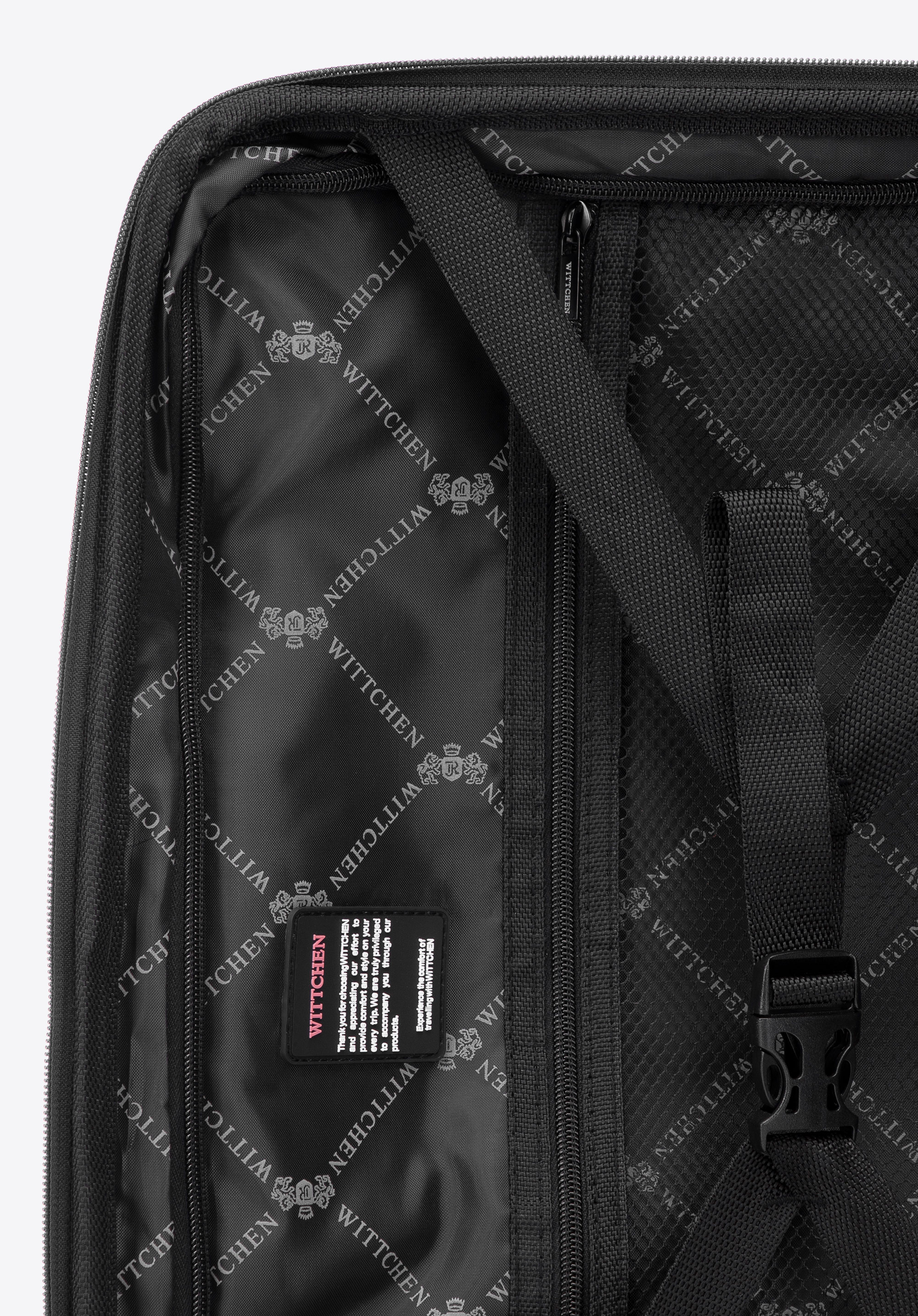 - Przemyślana organizacja: Każda komora walizki posiada regulowane pasy zabezpieczające, które utrzymują zawartość. Jedna z nich jest wyposażona w kieszeń na suwak idealną na drobne przedmioty.