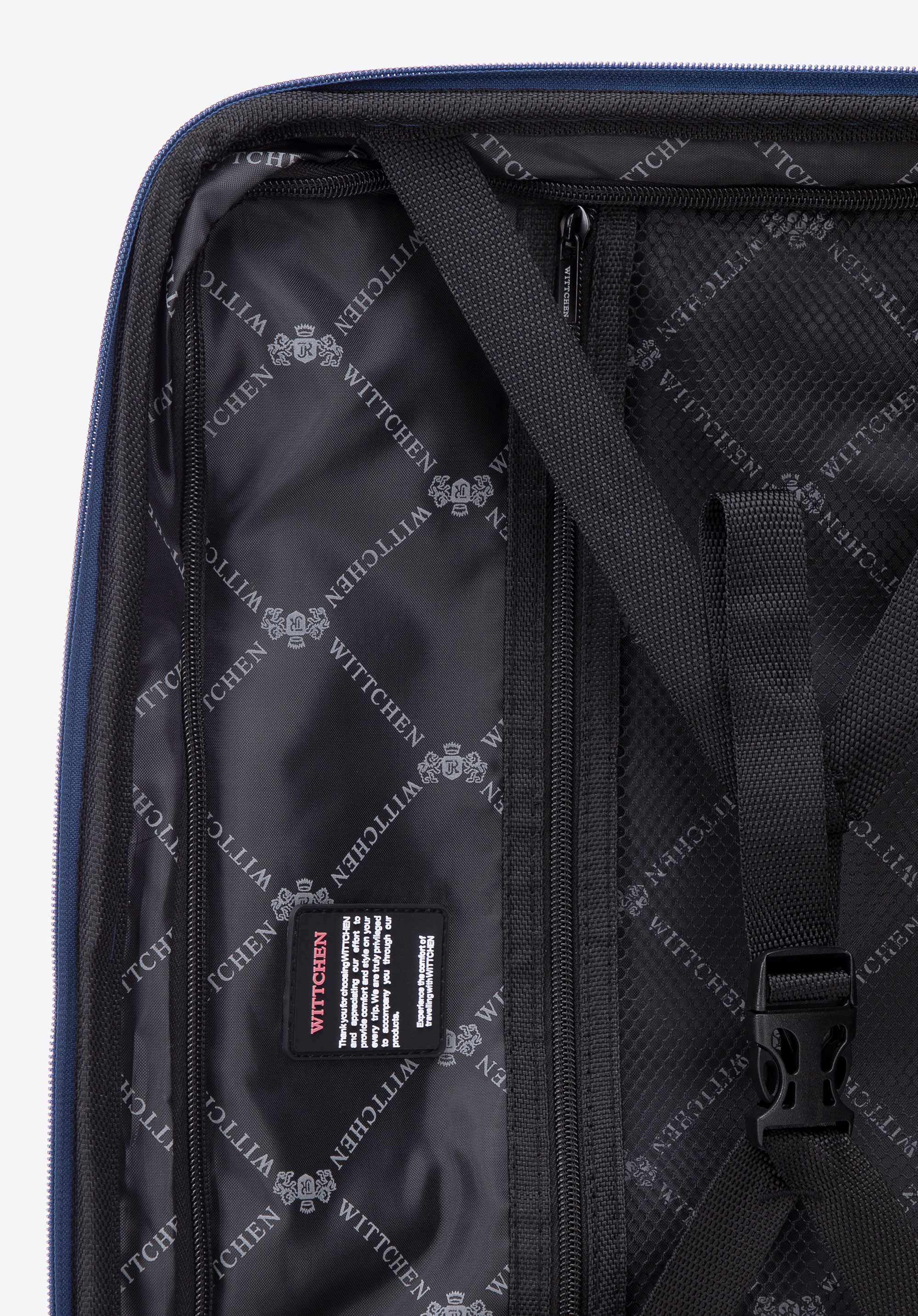 - Przemyślana organizacja: Każda komora walizki posiada regulowane pasy zabezpieczające, które utrzymują zawartość. Jedna z nich jest wyposażona w kieszeń na suwak idealną na drobne przedmioty.