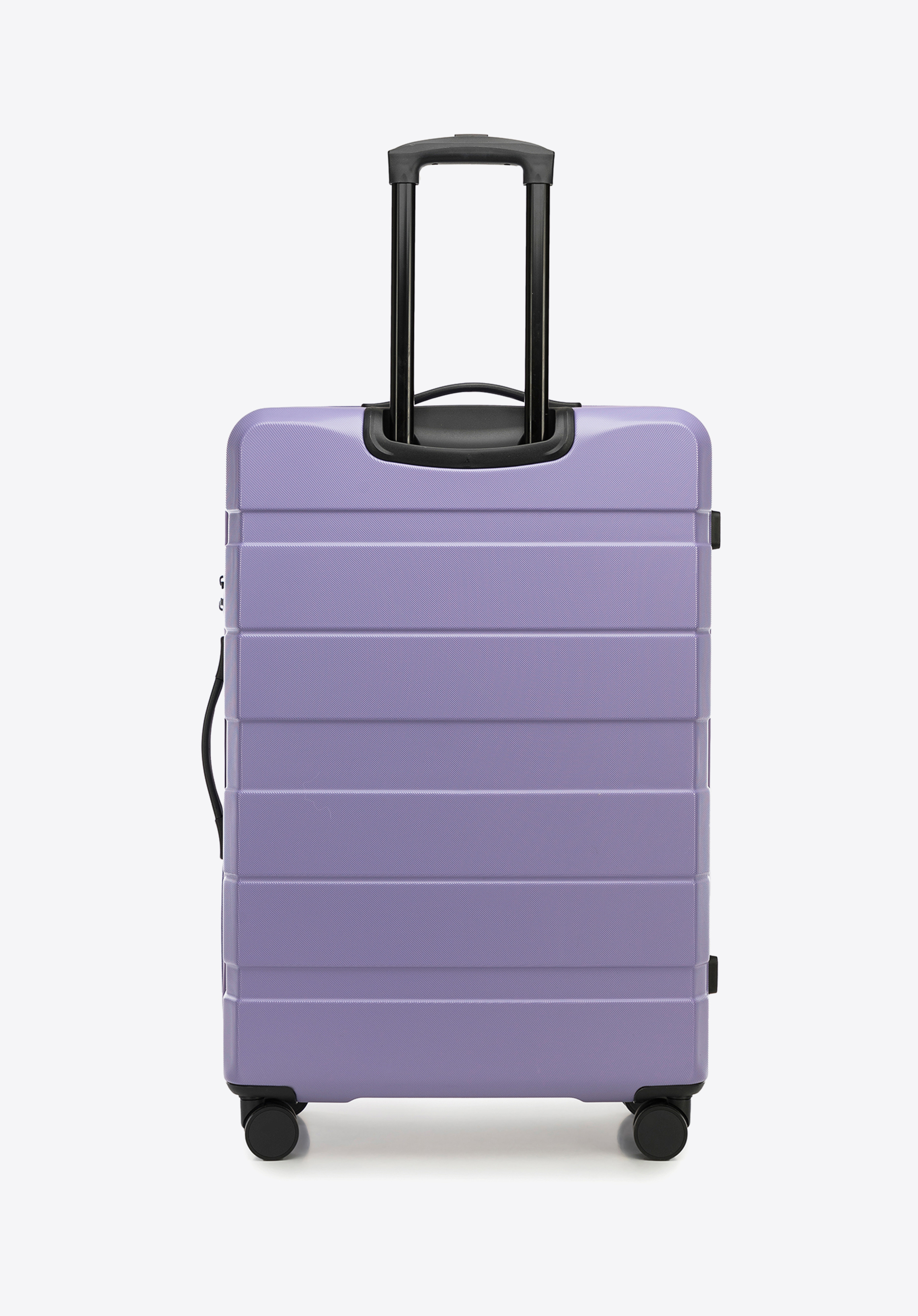 - walizka wyposażona w cztery podwójne, obrotowe kółka ułatwiające prowadzenie;