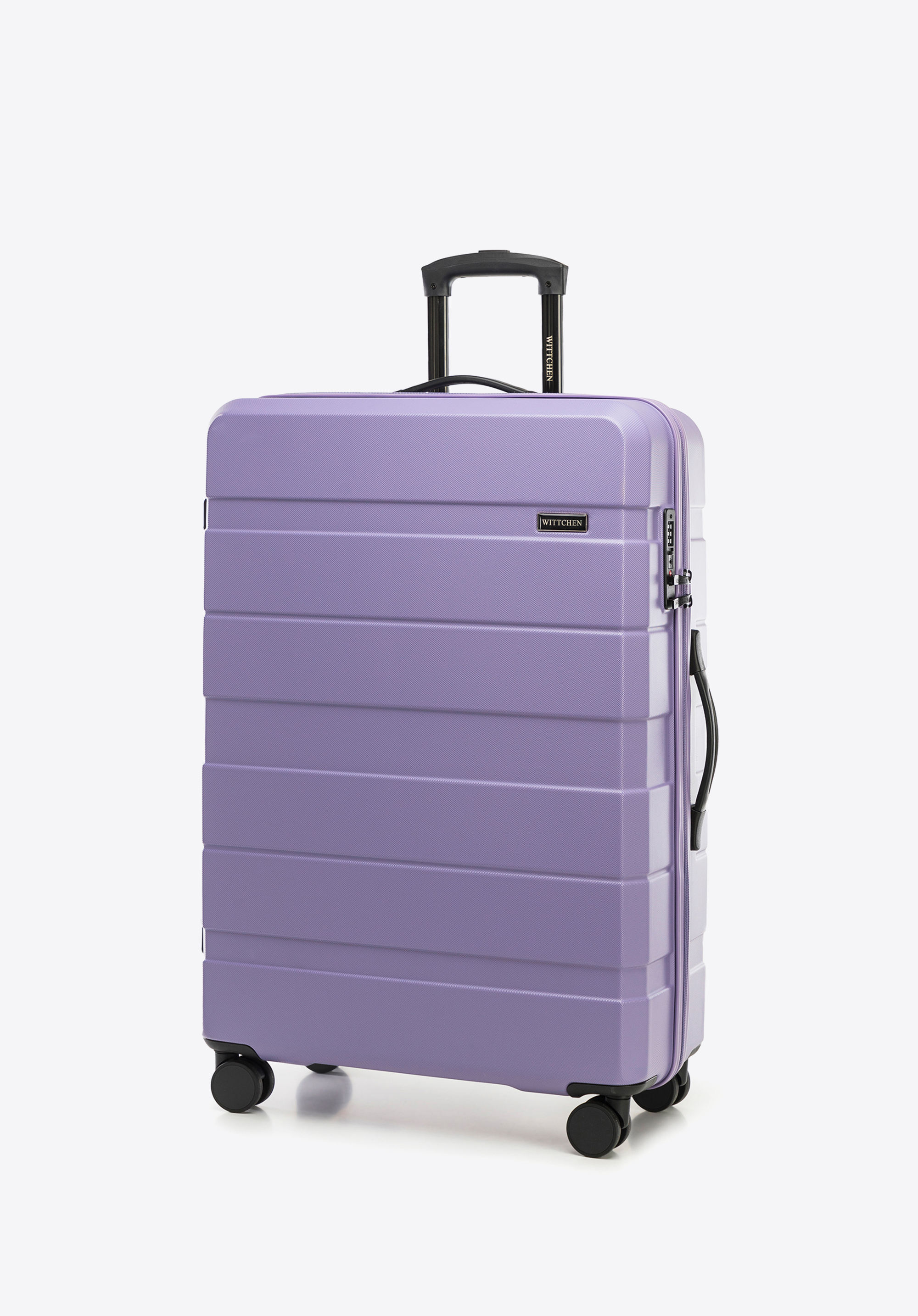 czterem obrotowym kółkom oraz wysuwanej rączce wygodnie będzie ją prowadzić. Duża walizka z ABS-u z kolekcji