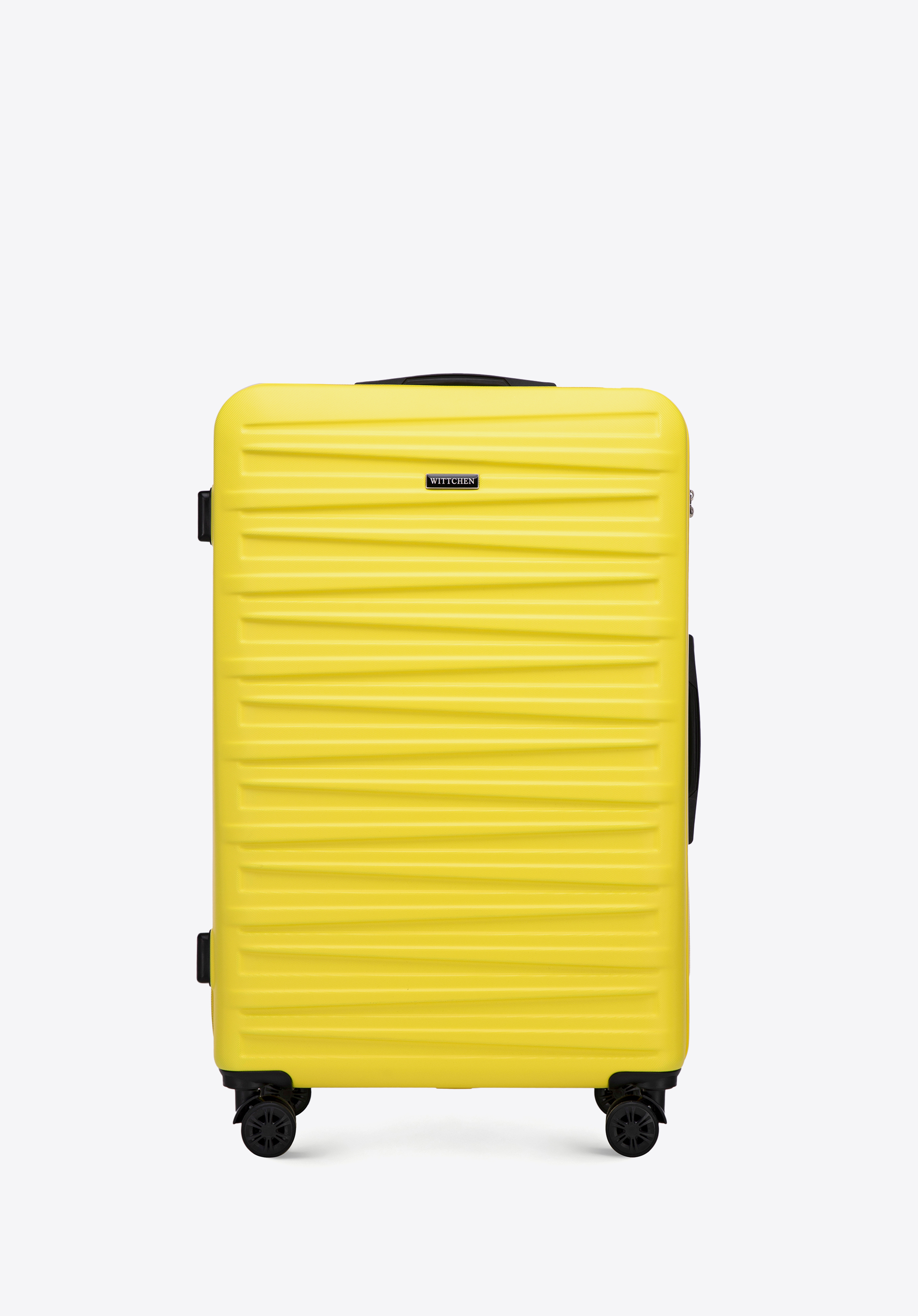Duża walizka z ABS-u w poziome tłoczenie żółta