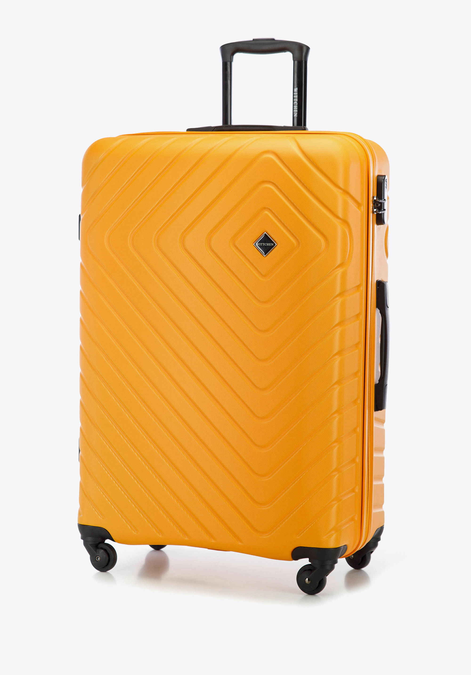 Duża walizka z ABS-u z geometrycznym tłoczeniem to świetny wybór na niejedną długą, wakacyjną podróż.