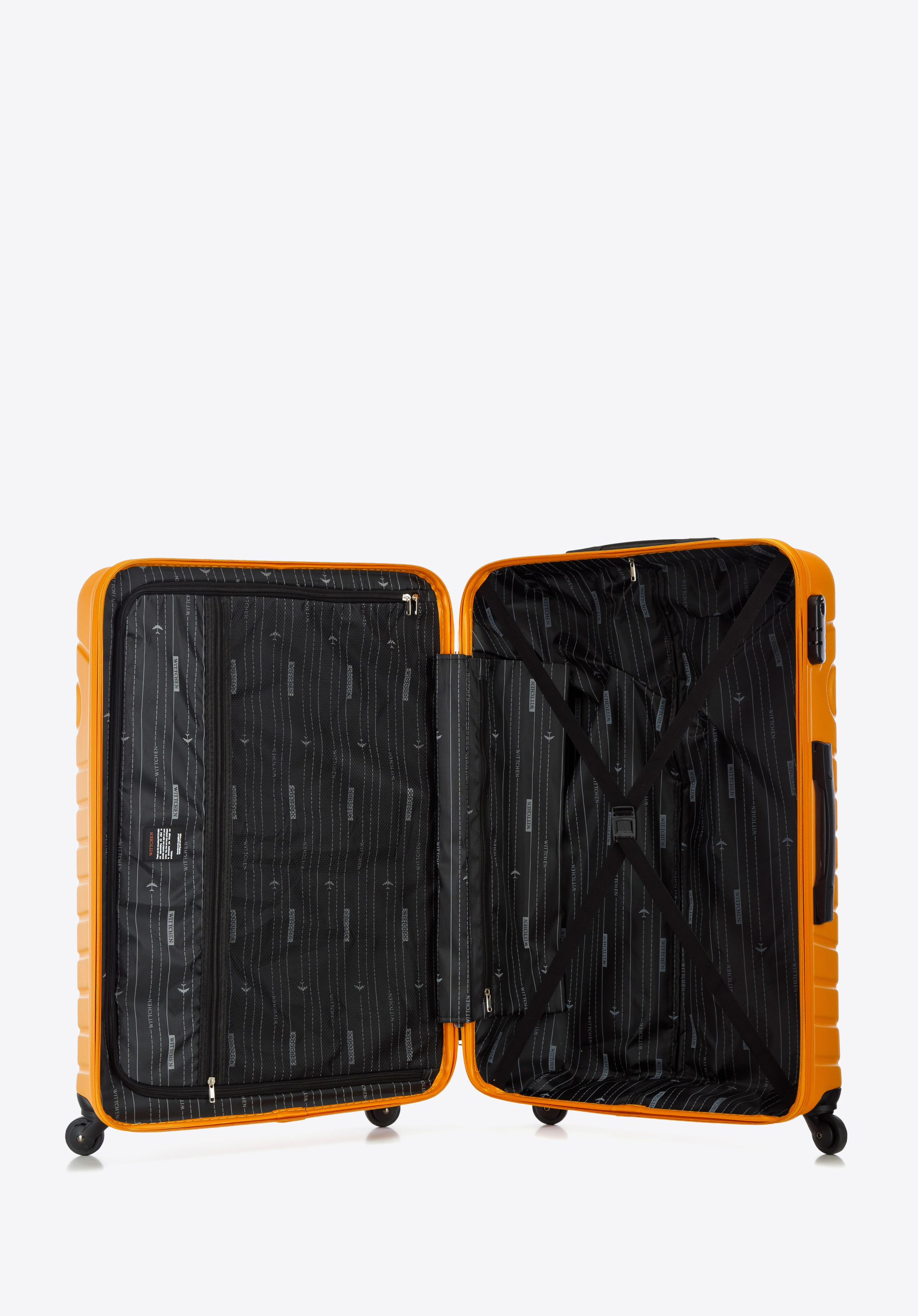 - walizka wyposażona w cztery pojedyncze obrotowe kółka ułatwiające prowadzenie;