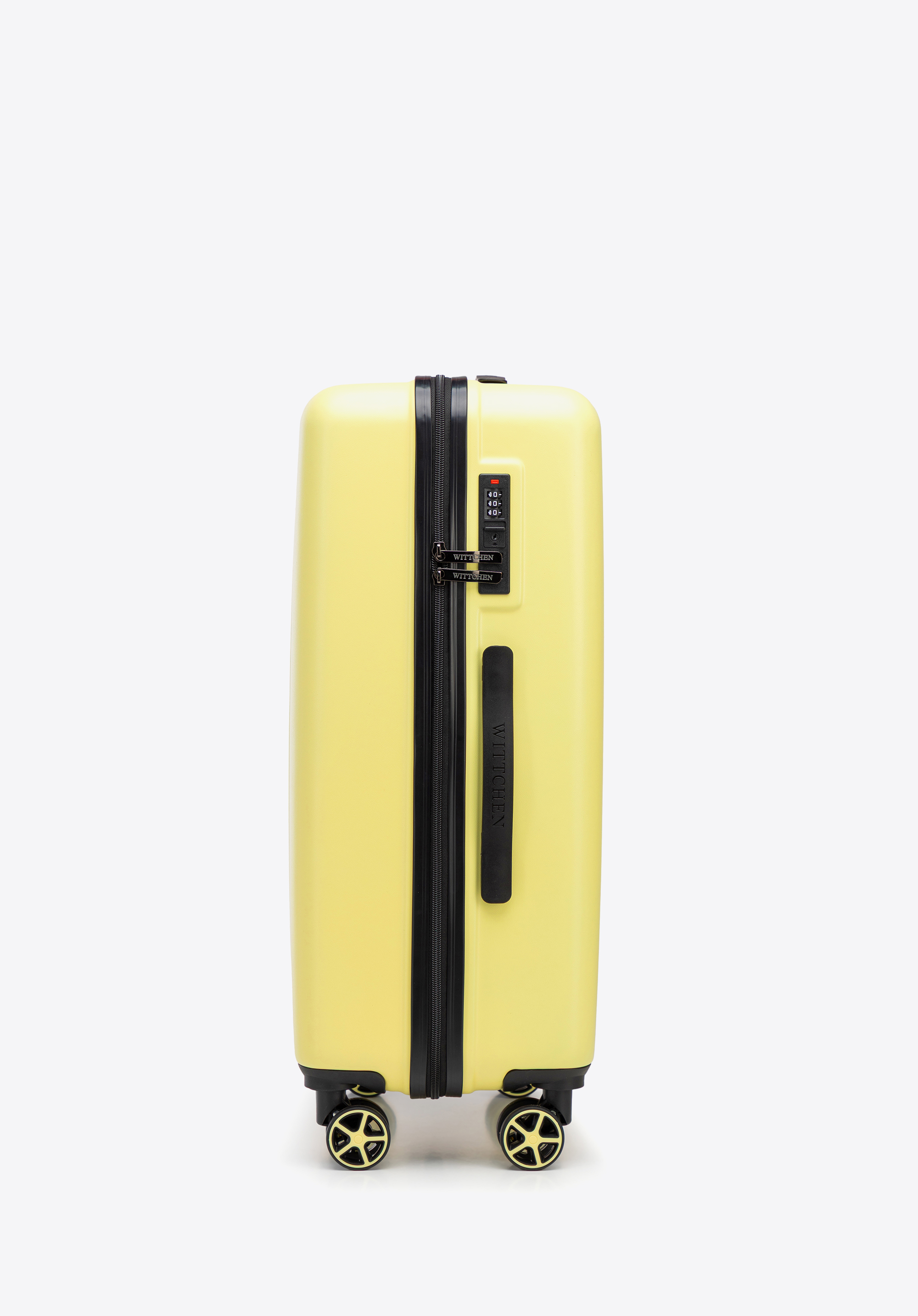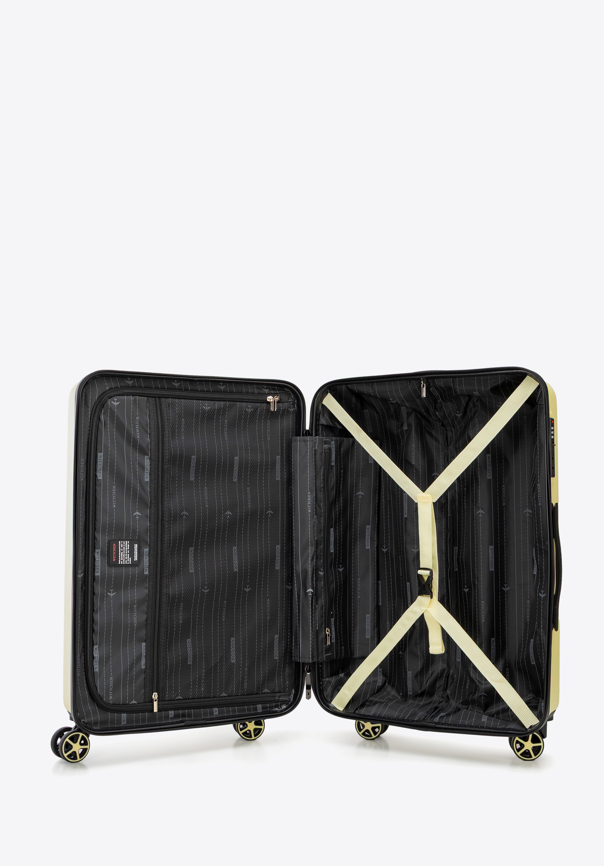 - Materiał: Wykonana z ABS-u, który dzięki odporności na wgniecenia zapewnia walizce długotrwałą elegancję i estetyczny wygląd.