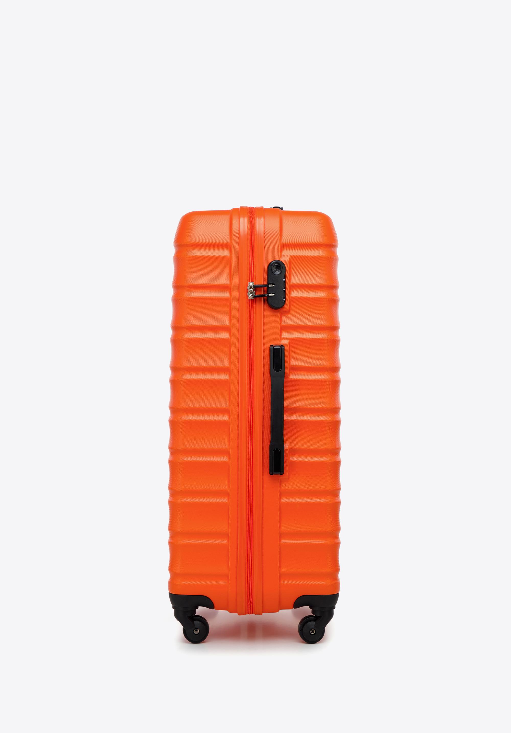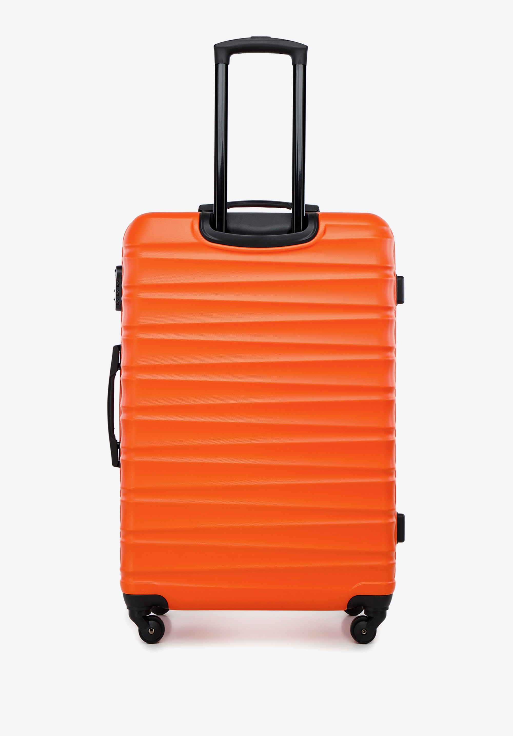 Duża walizka z ABS-u z żebrowaniem sprawdzi się podczas dłuższych wyjazdów, gdy bagaż ma wyglądać stylowo i być odporny na trudy podróży. Solidna konstrukcja z ABS-u, zamek szyfrowy i podział na dwie komory gwarantują bezpieczeństwo oraz komfort pakowania.
