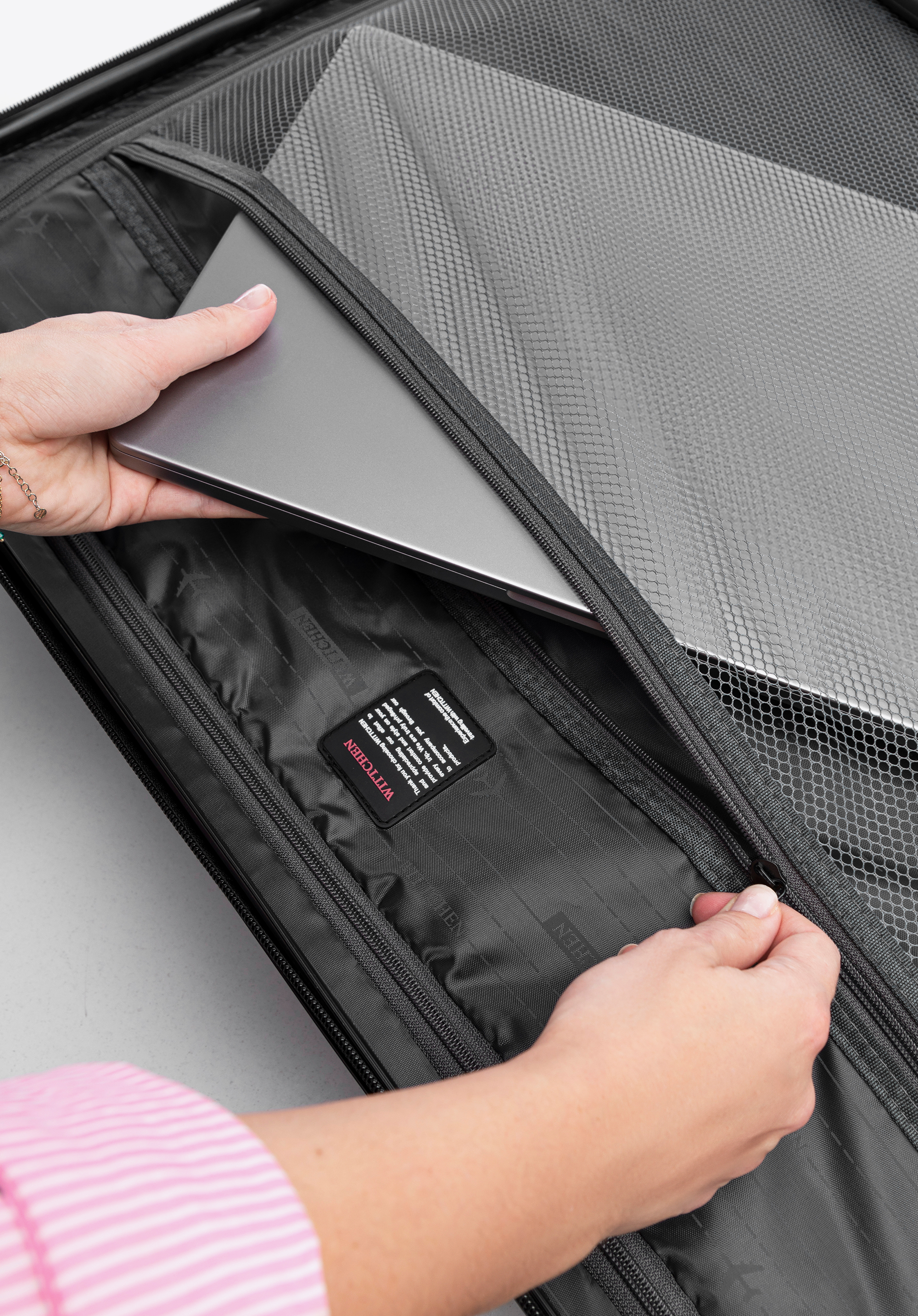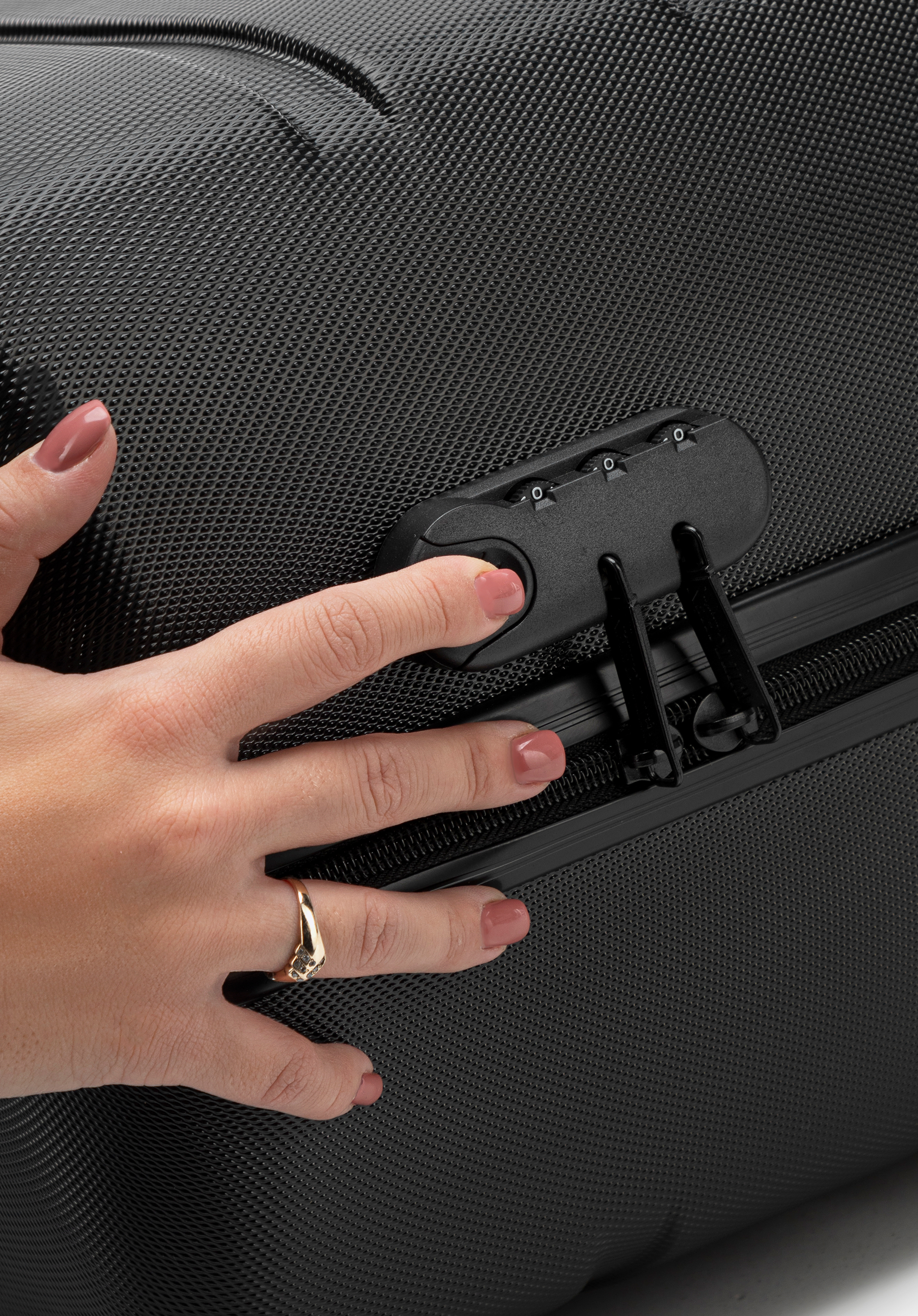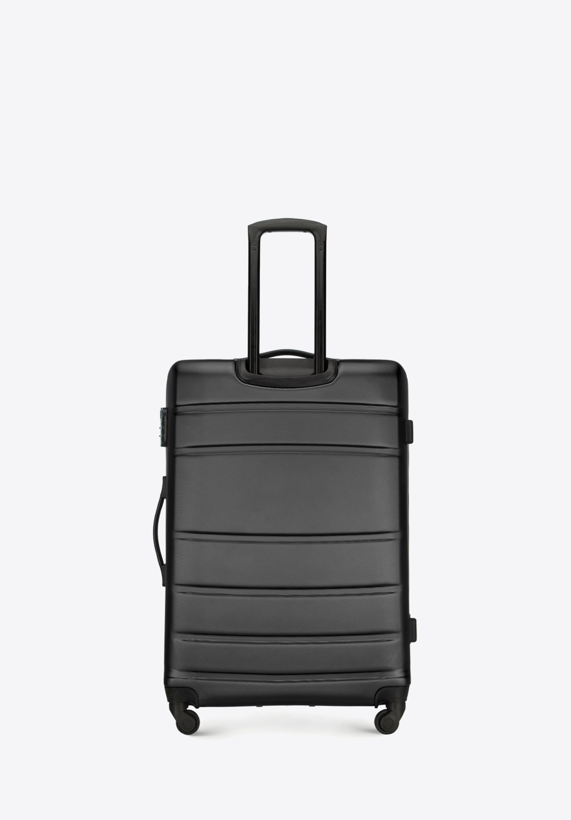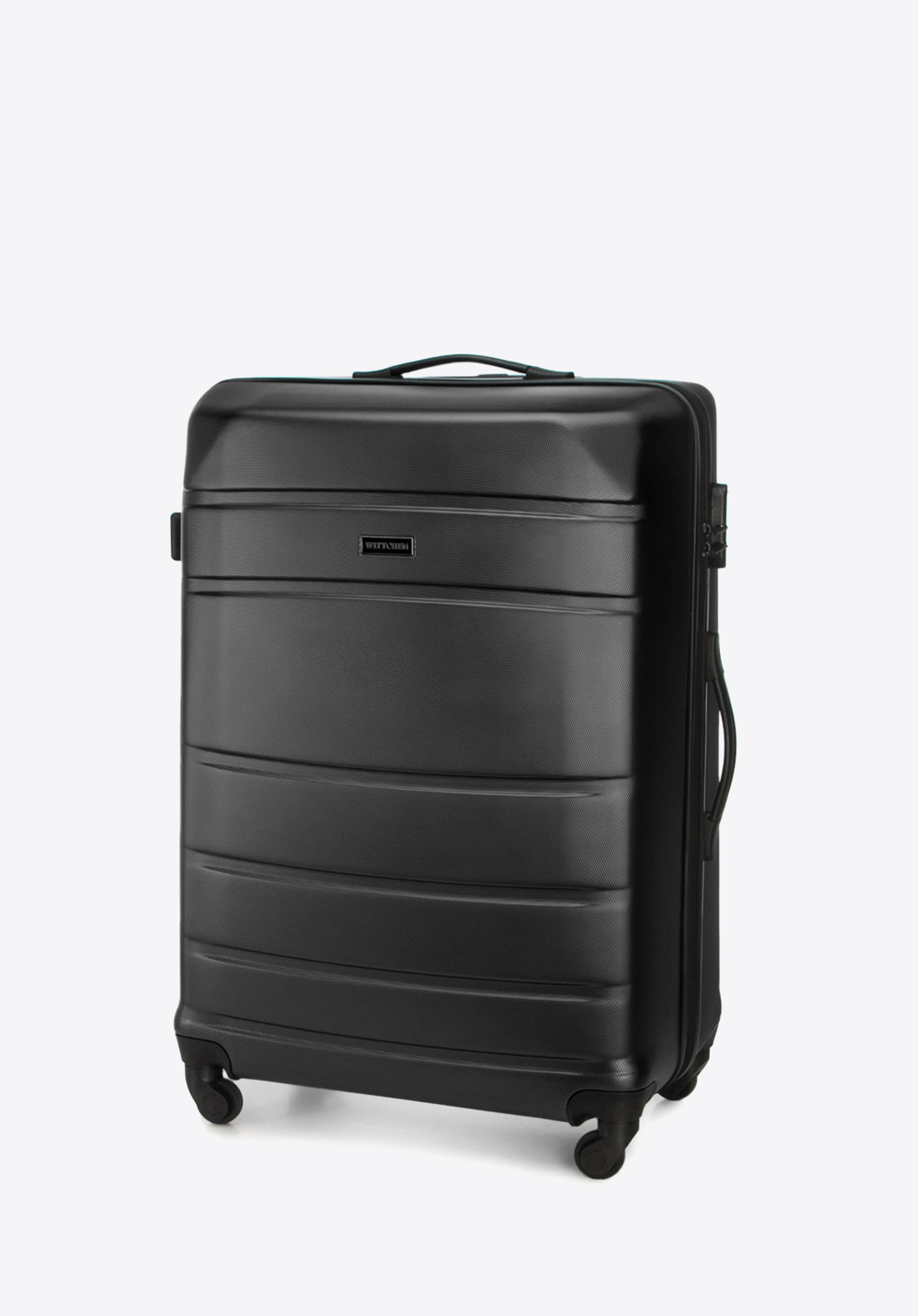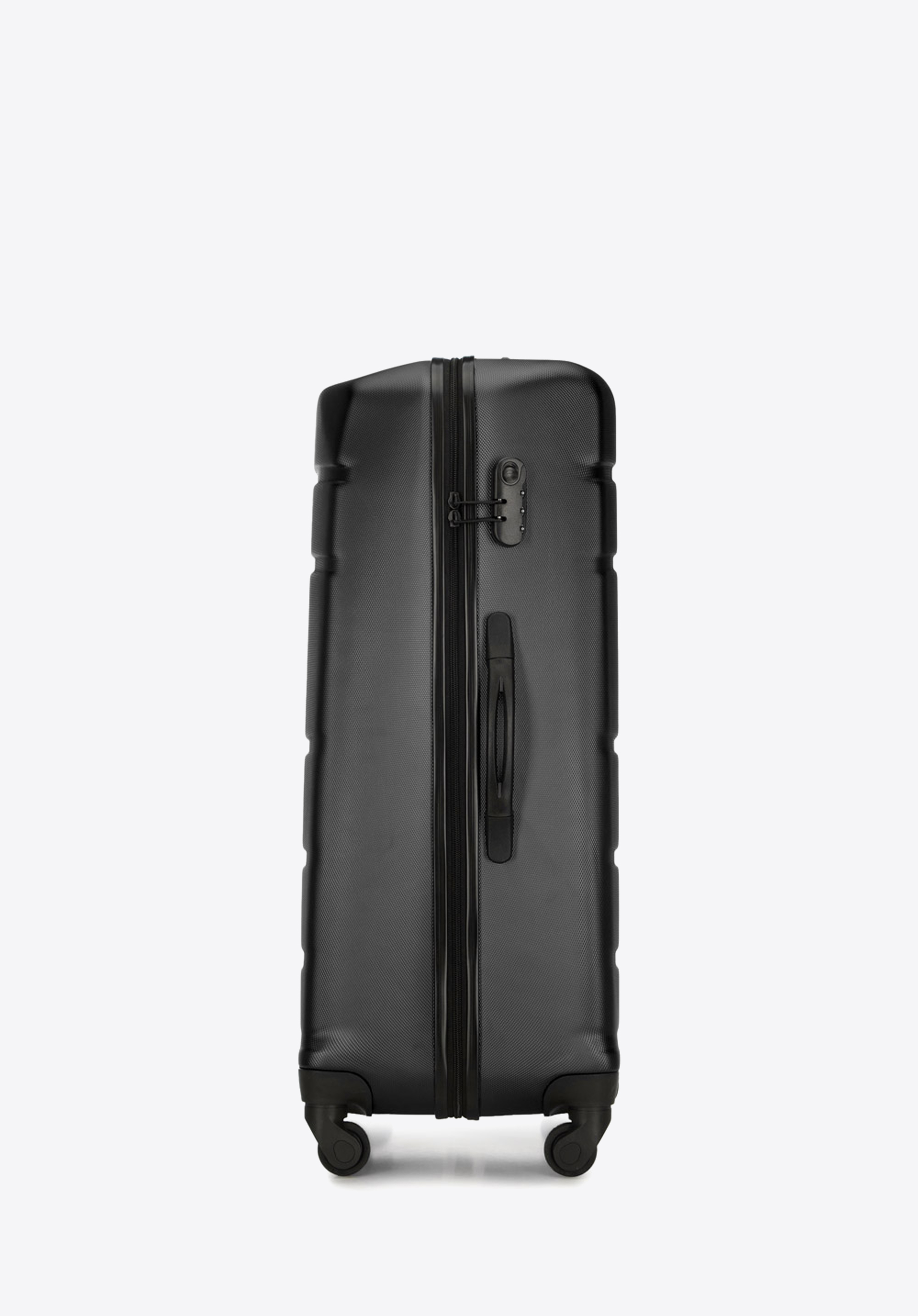Aluminiowy, wysuwany teleskopowy uchwyt i dwie gumowe rączki, ułatwiają przenoszenie walizki. Pionowe tłoczenia dodają walizce ciekawego charakteru.
