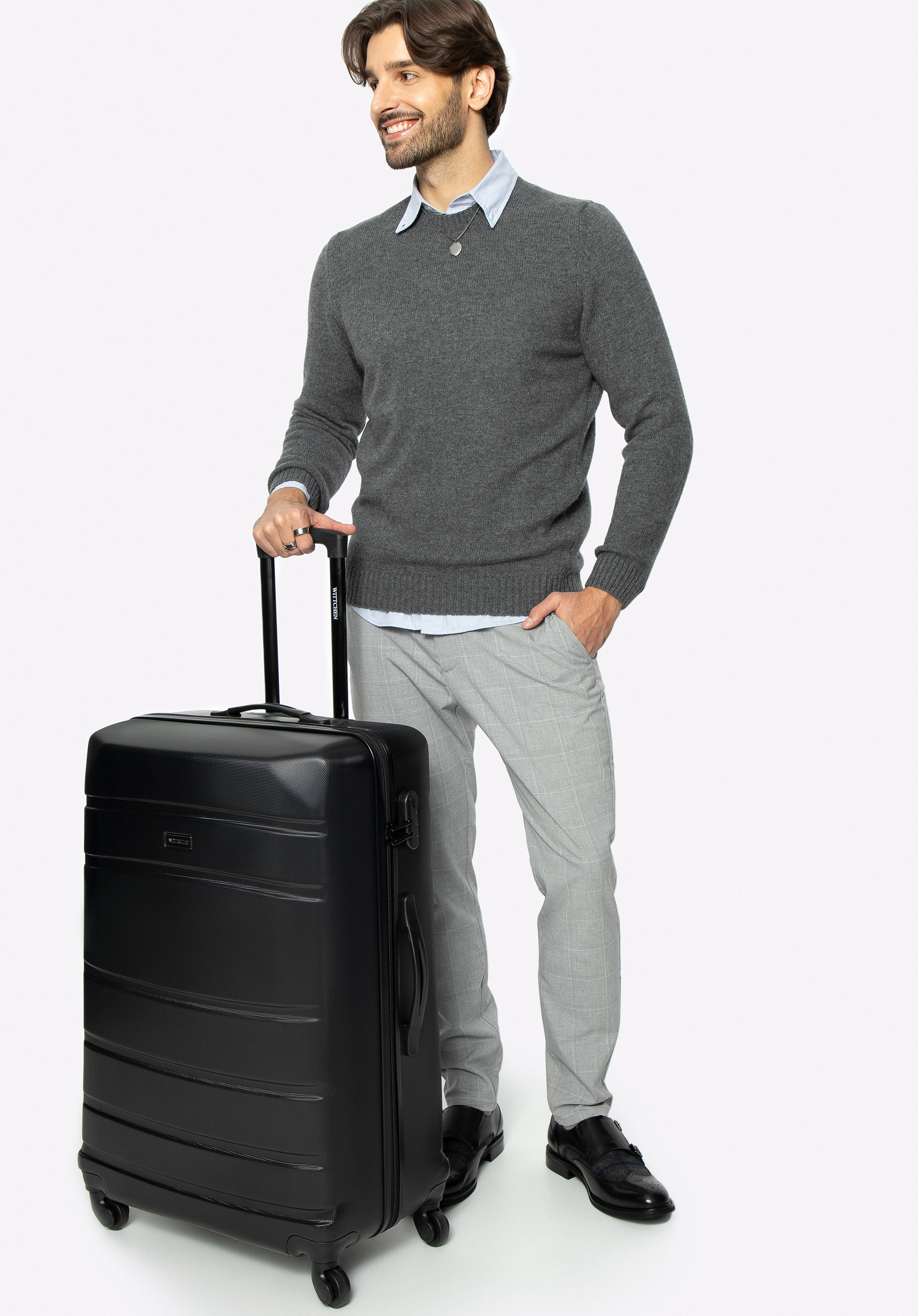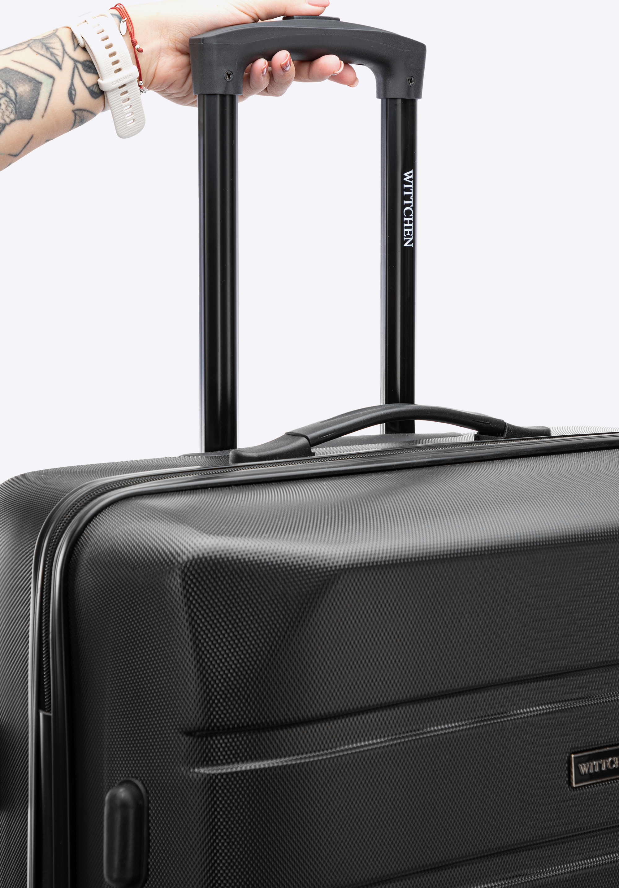 - wysuwany uchwyt oraz dwie gumowe rączki ułatwiają przenoszenie bagażu;