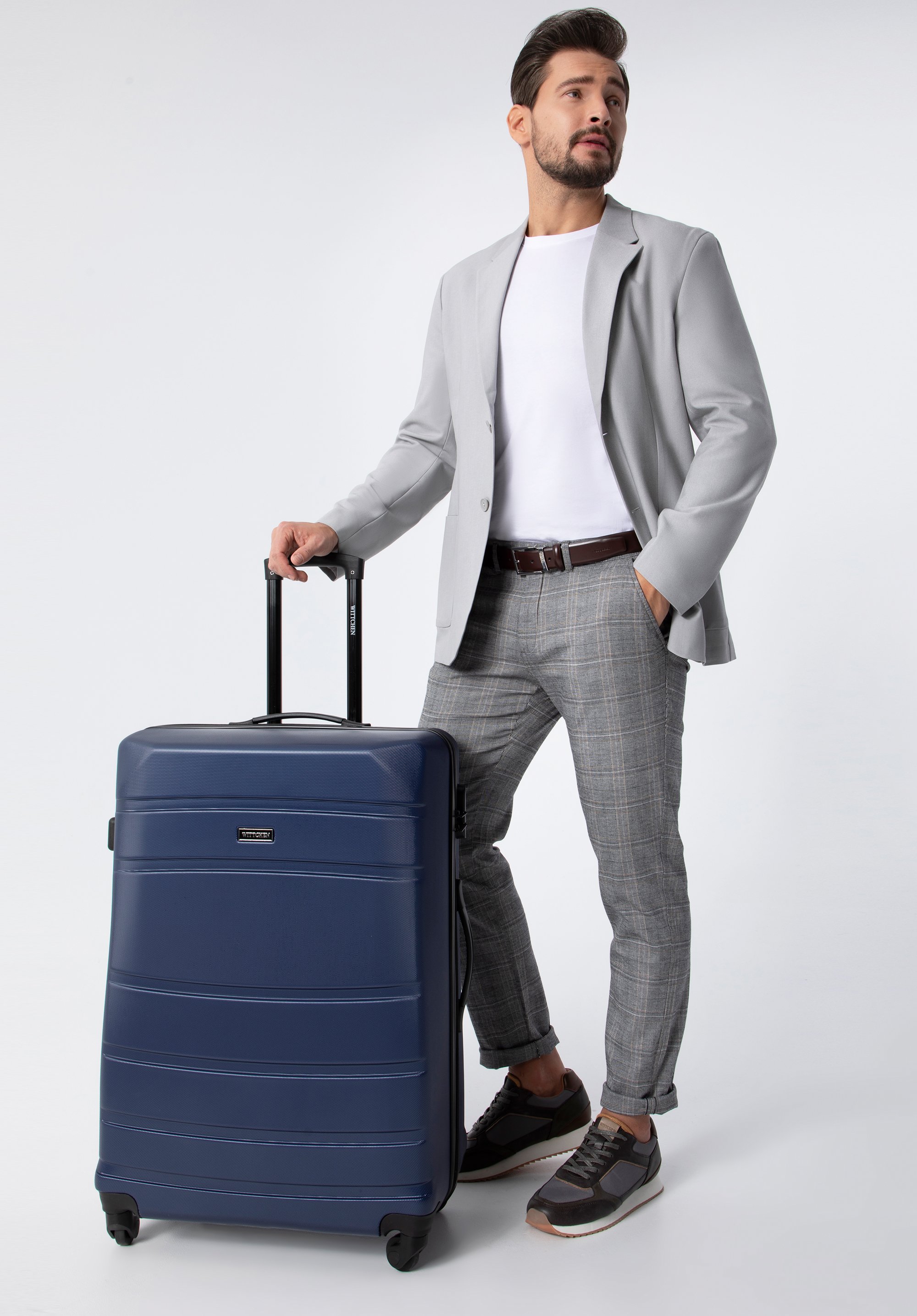 Duża walizka z ABS-u żłobiona granatowa