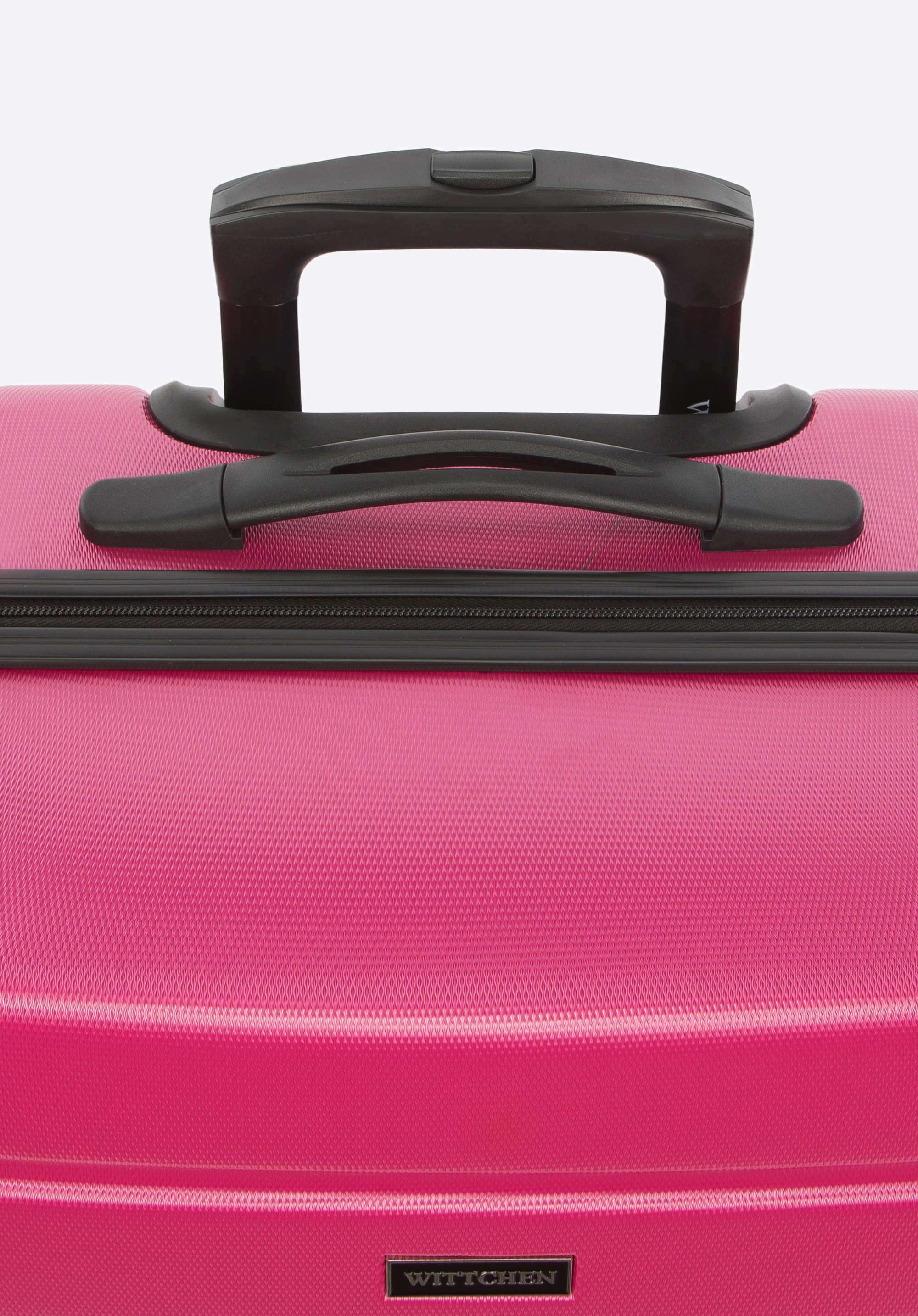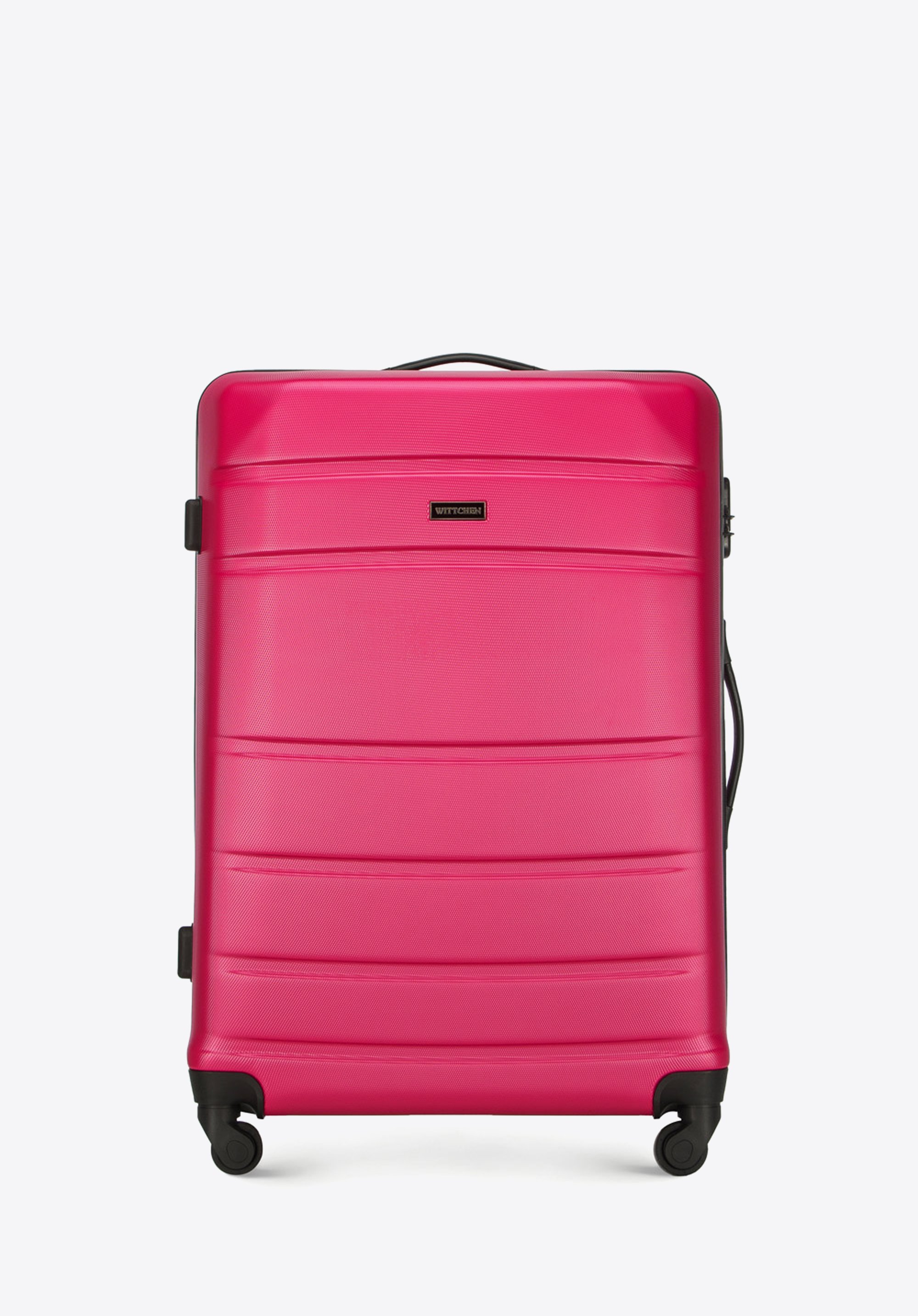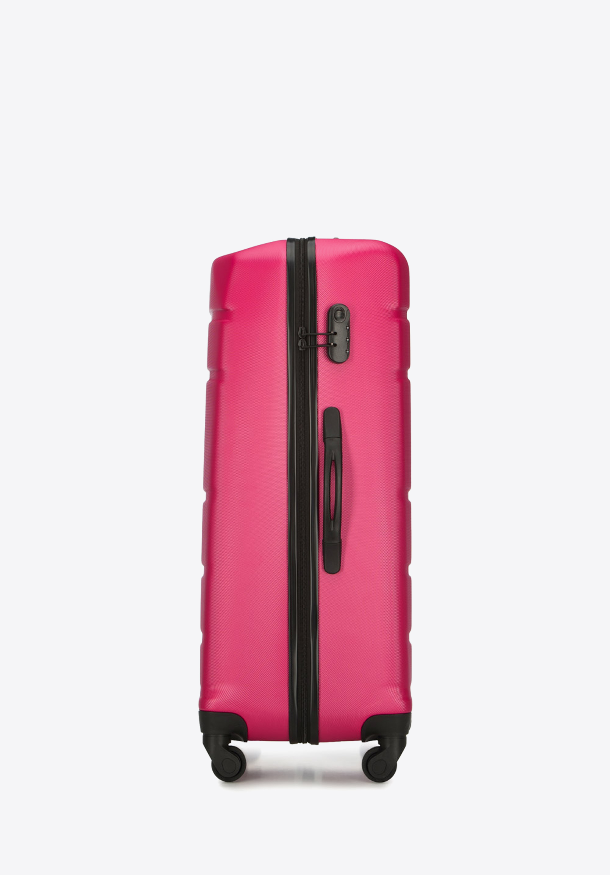 Aluminiowy, wysuwany teleskopowy uchwyt i dwie gumowe rączki, ułatwiają przenoszenie walizki. Pionowe tłoczenia dodają walizce ciekawego charakteru.