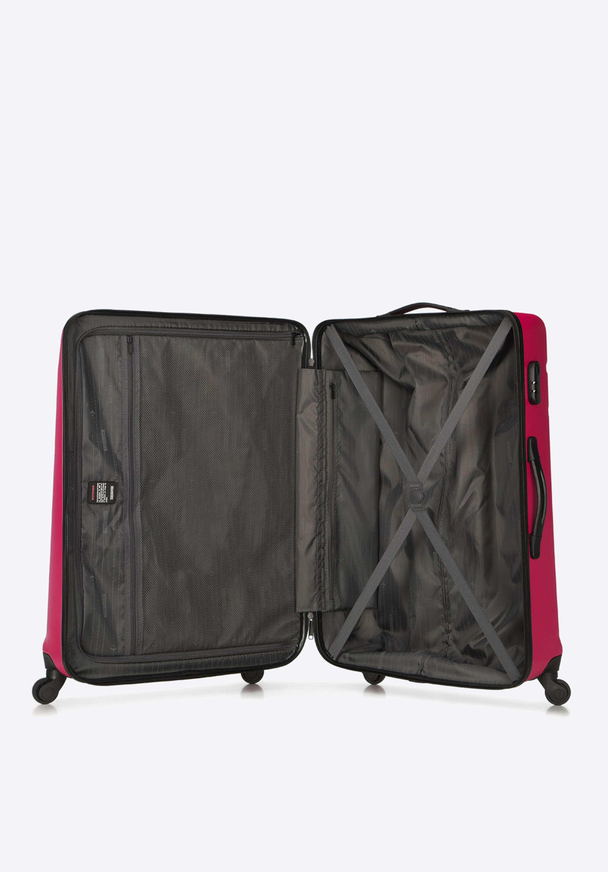 - wysuwany uchwyt oraz dwie gumowe rączki ułatwiają przenoszenie bagażu;