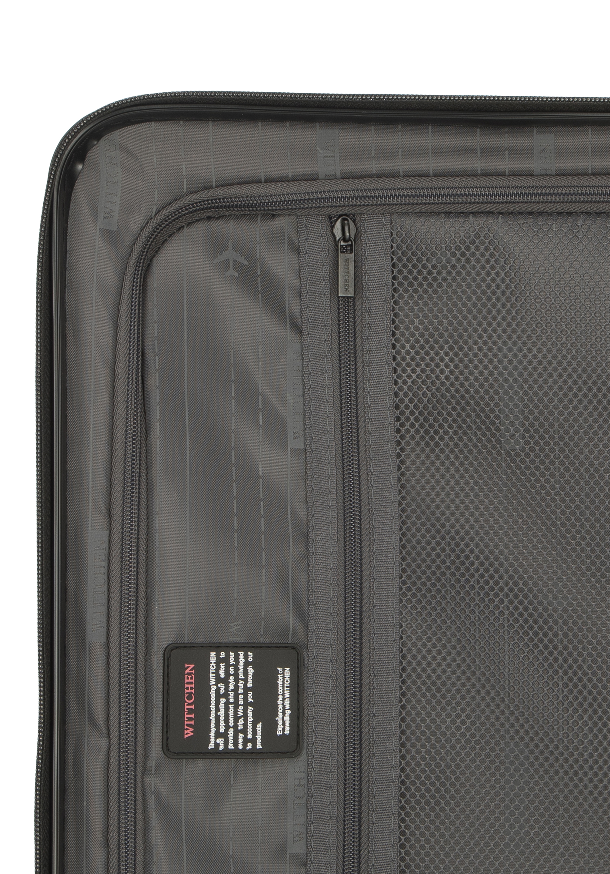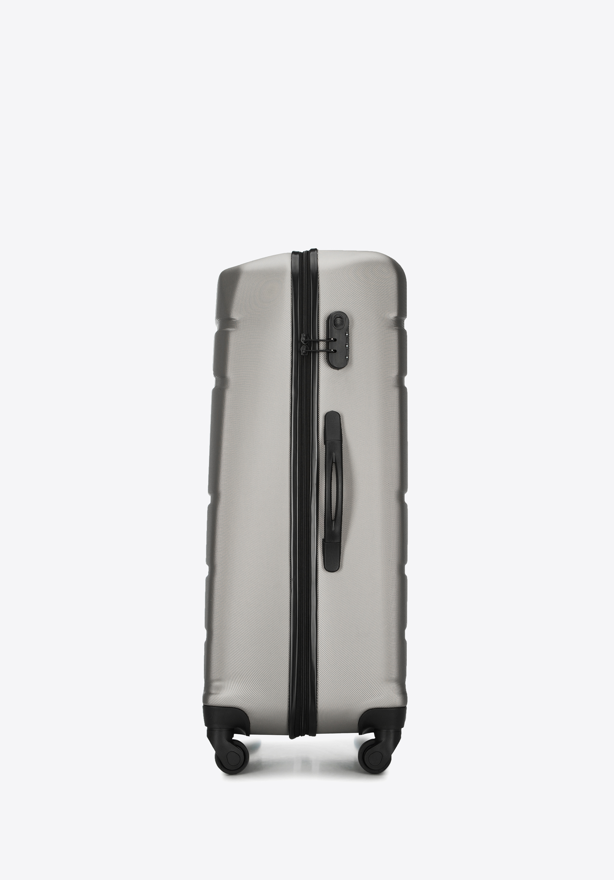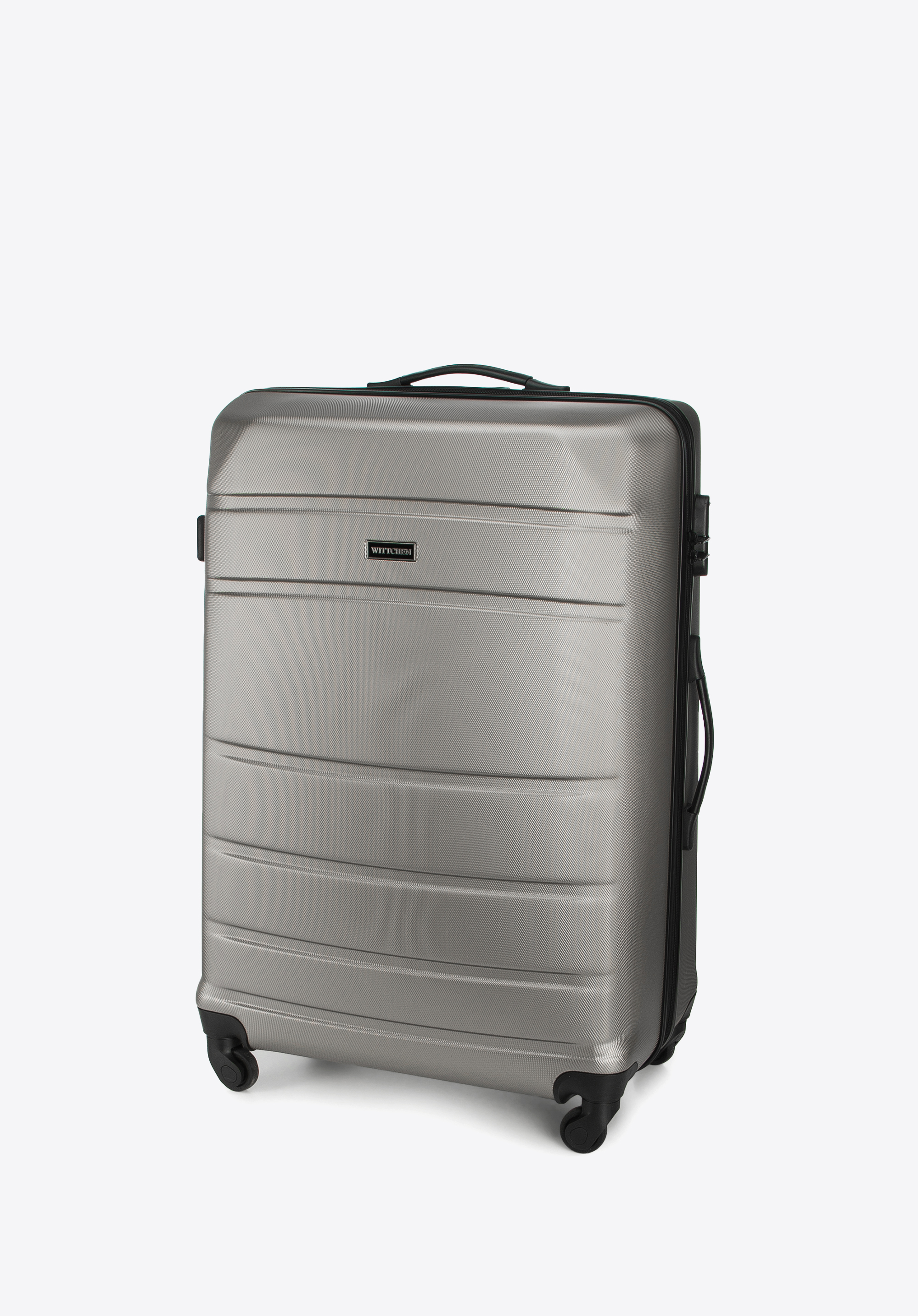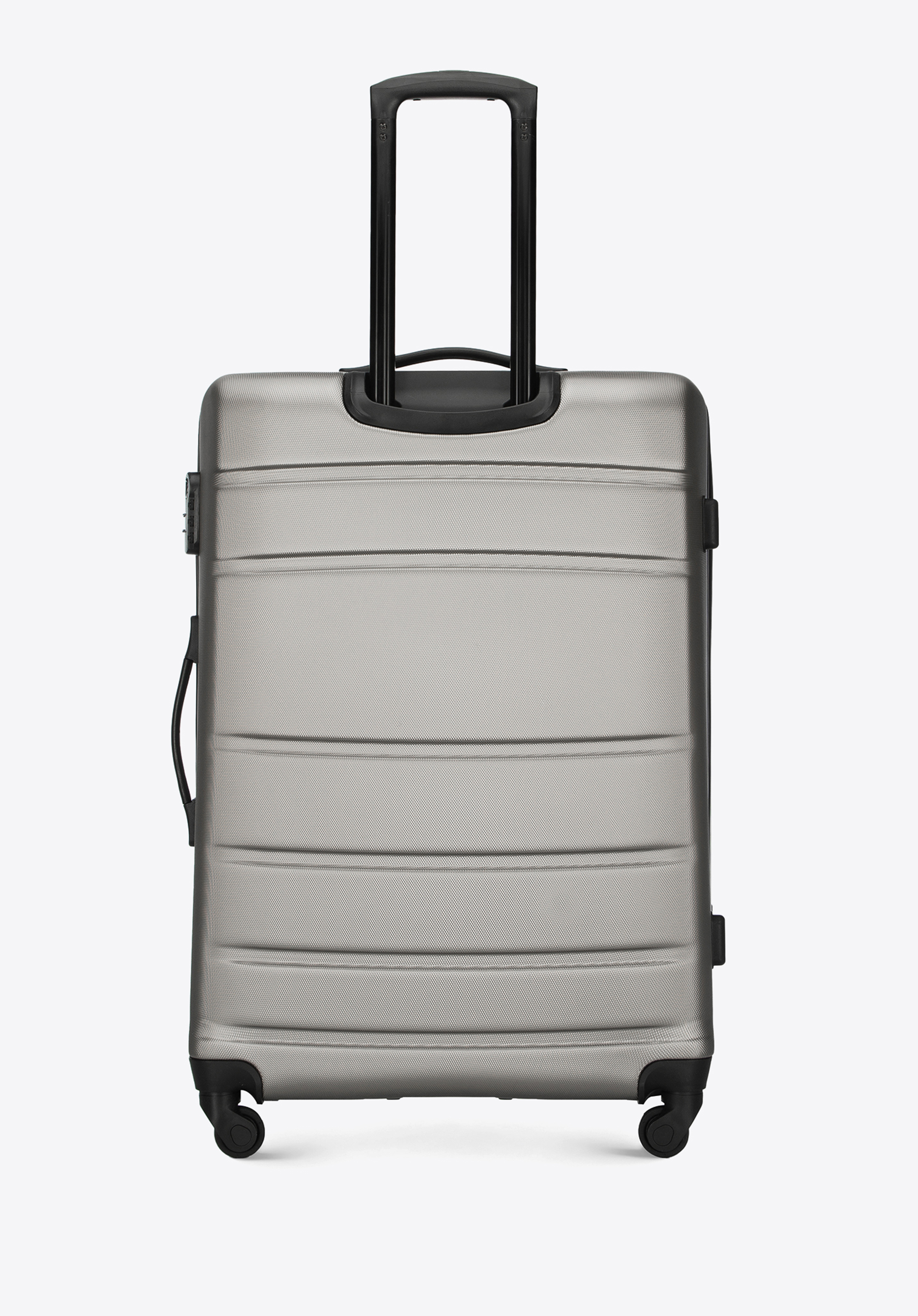 Aluminiowy, wysuwany teleskopowy uchwyt i dwie gumowe rączki, ułatwiają przenoszenie walizki. Pionowe tłoczenia dodają walizce ciekawego charakteru.