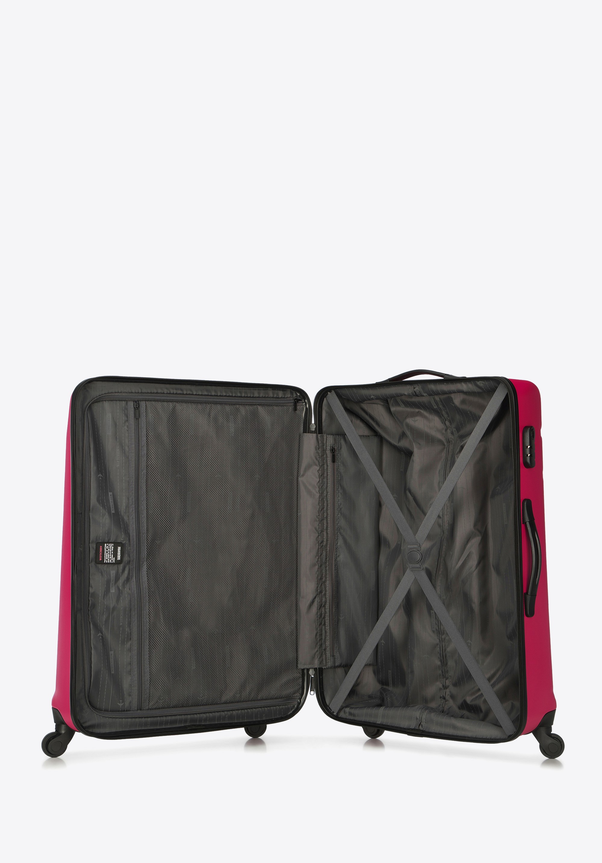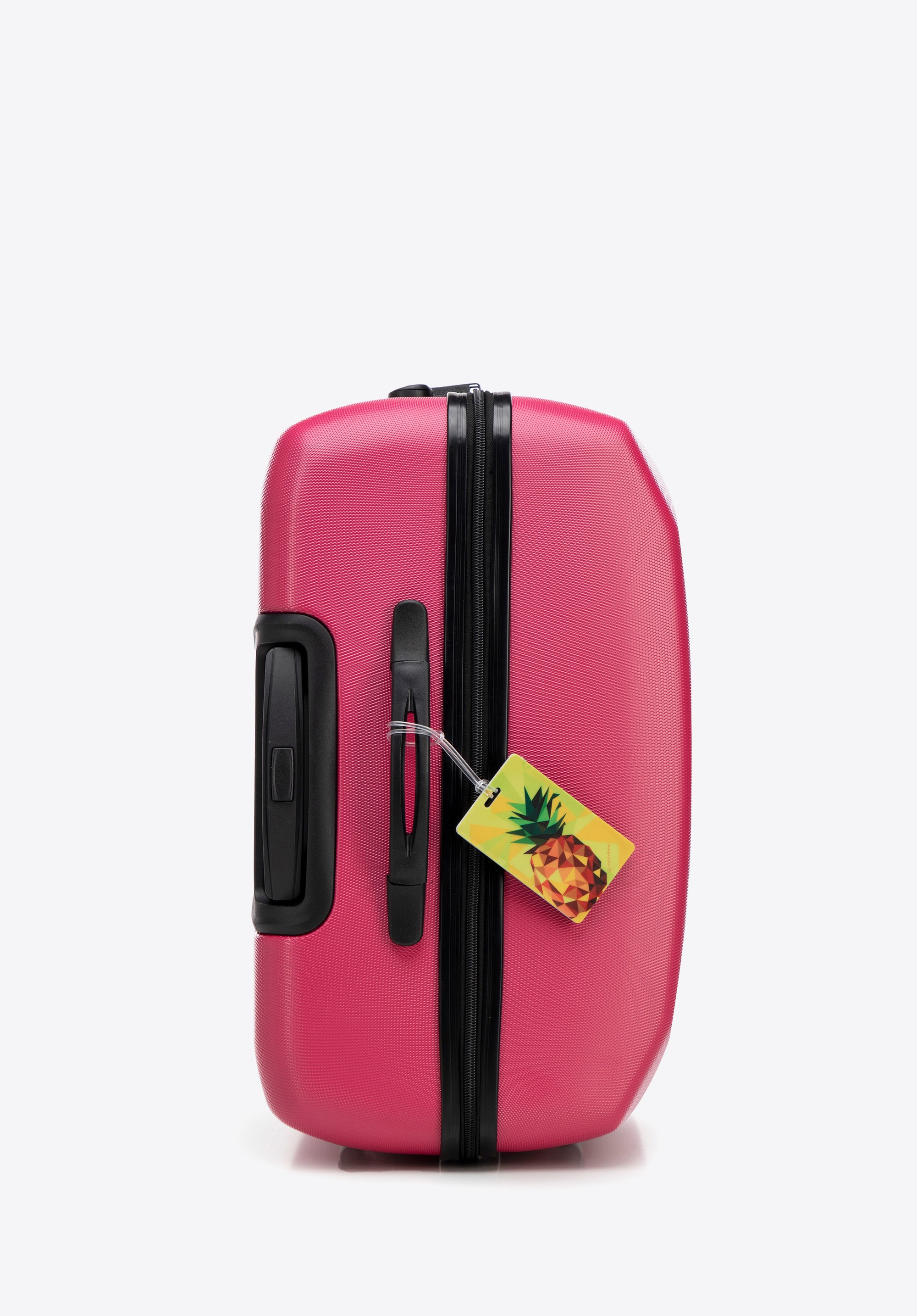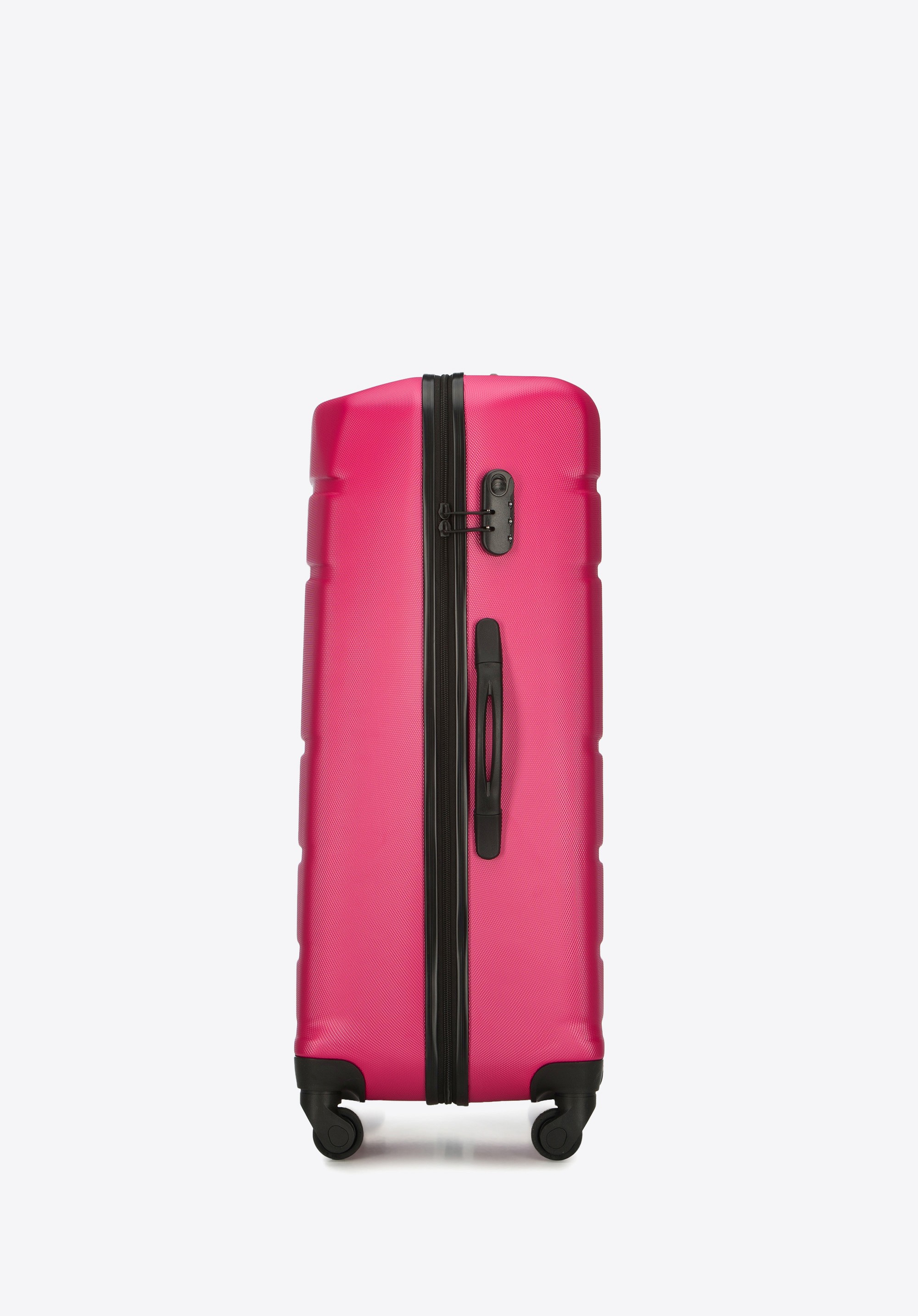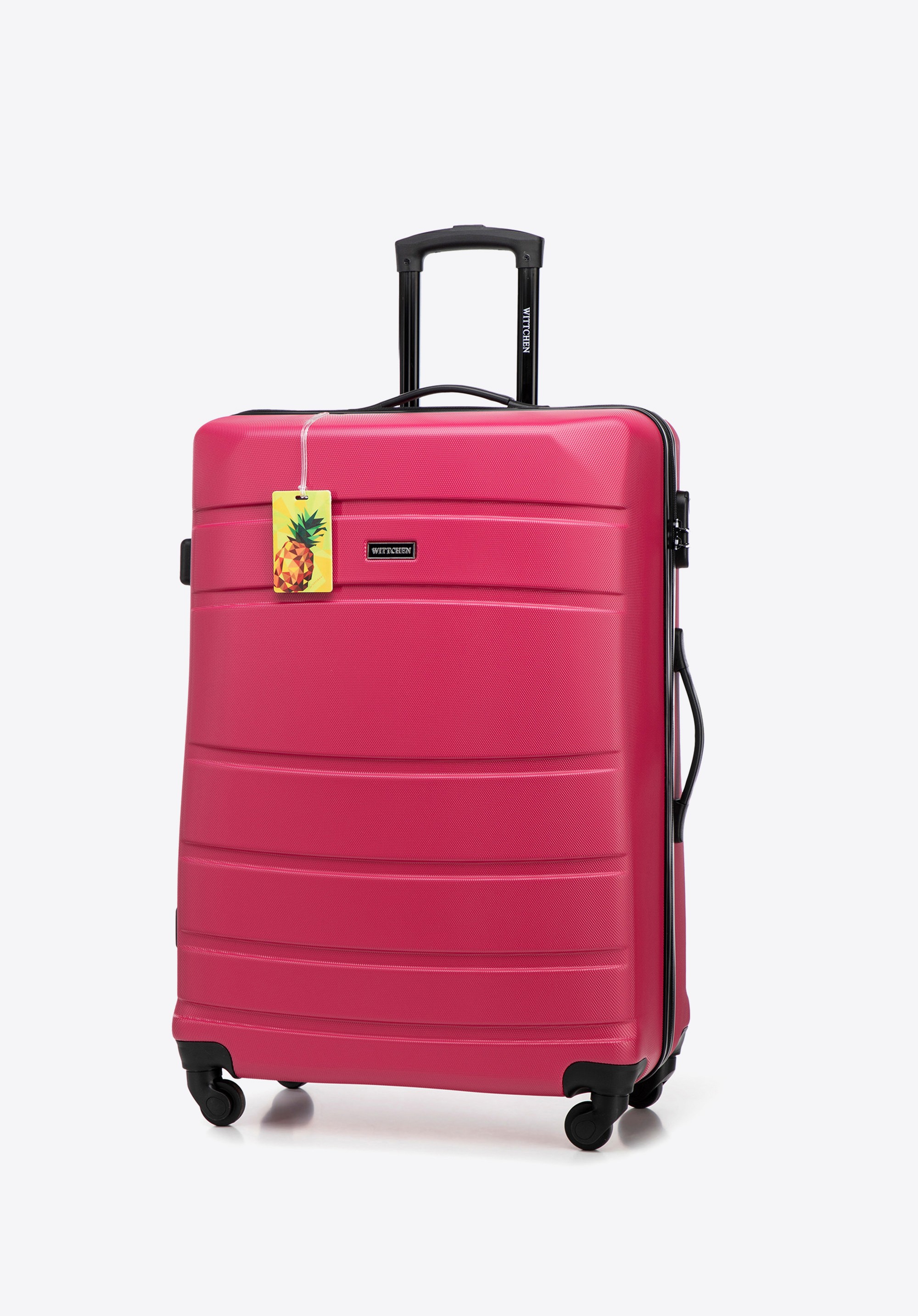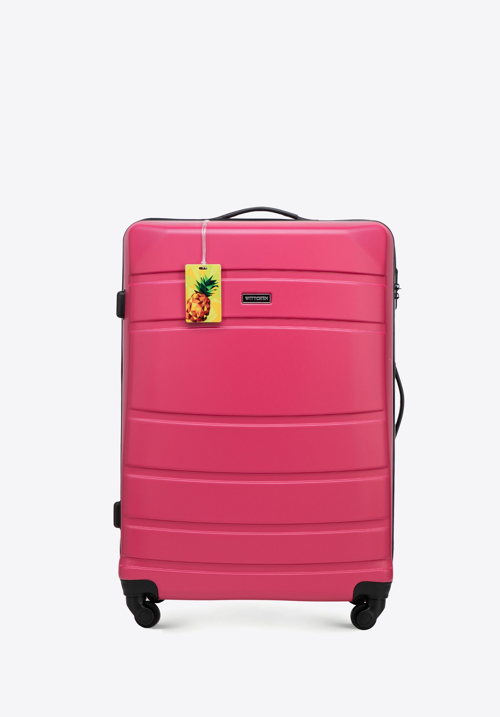 Duża walizka z ABS - u żłobiona z identyfikatorem różowa