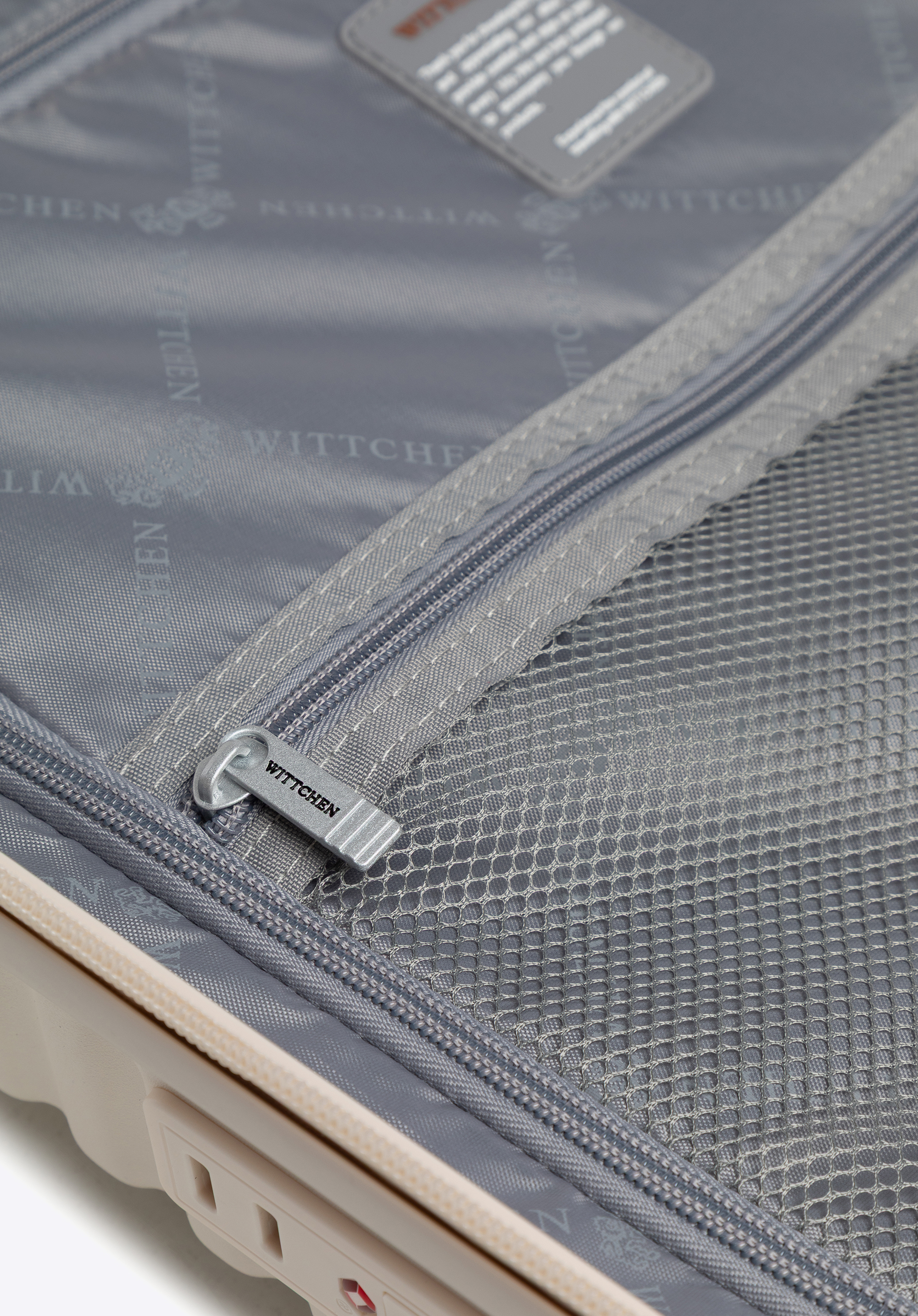 - 4 nóżki boczne: Zabezpieczają walizkę przed otarciami i umożliwiają stabilne odstawienie w pozycji poziomej.