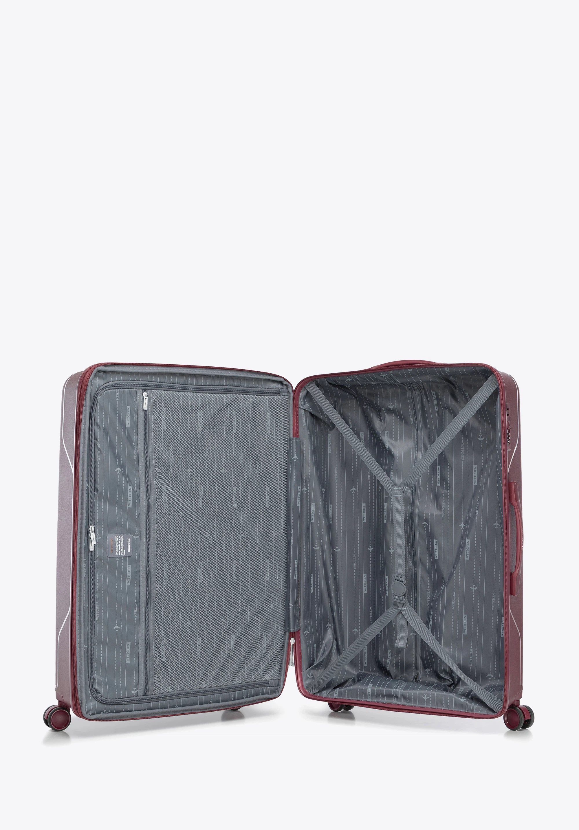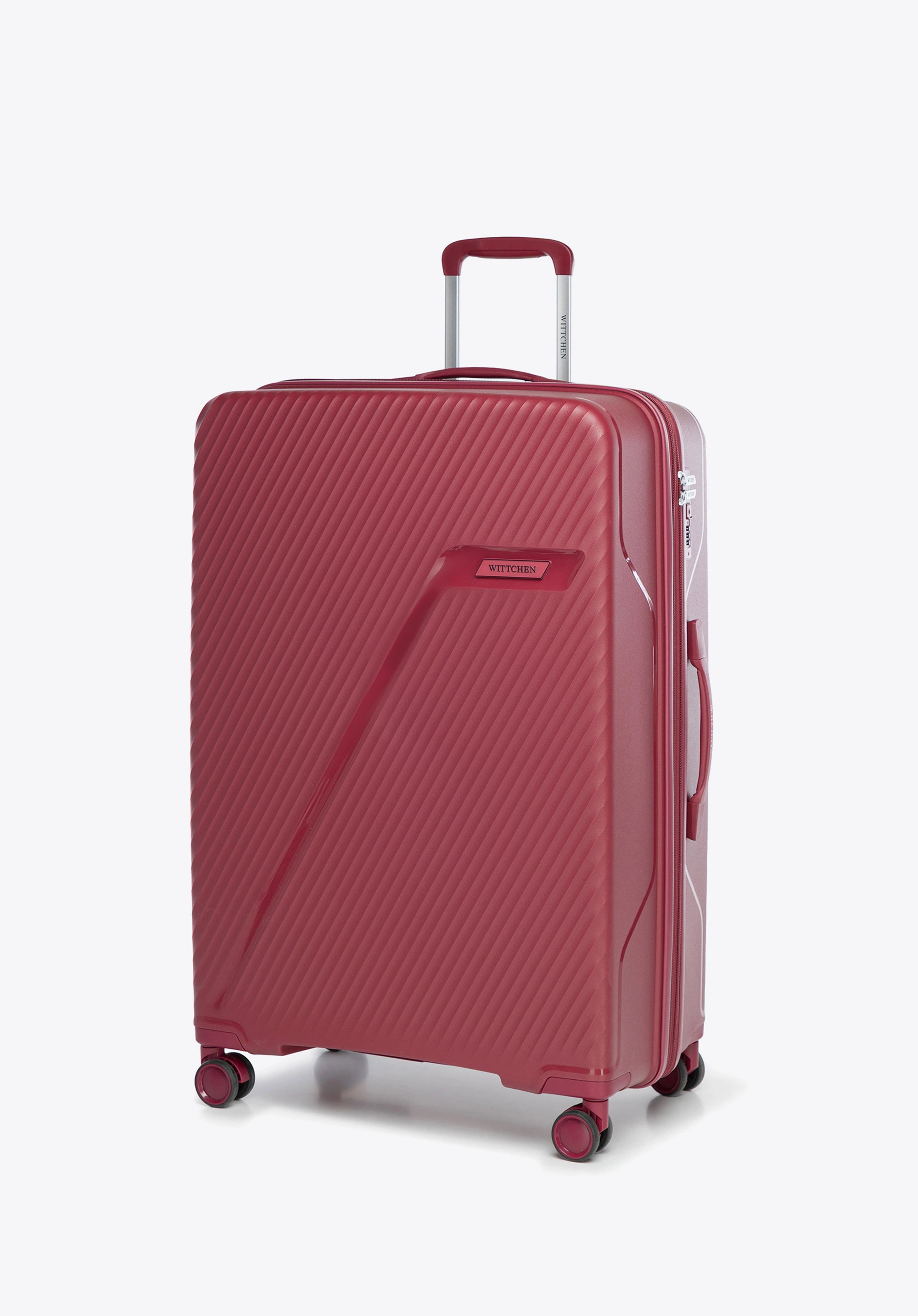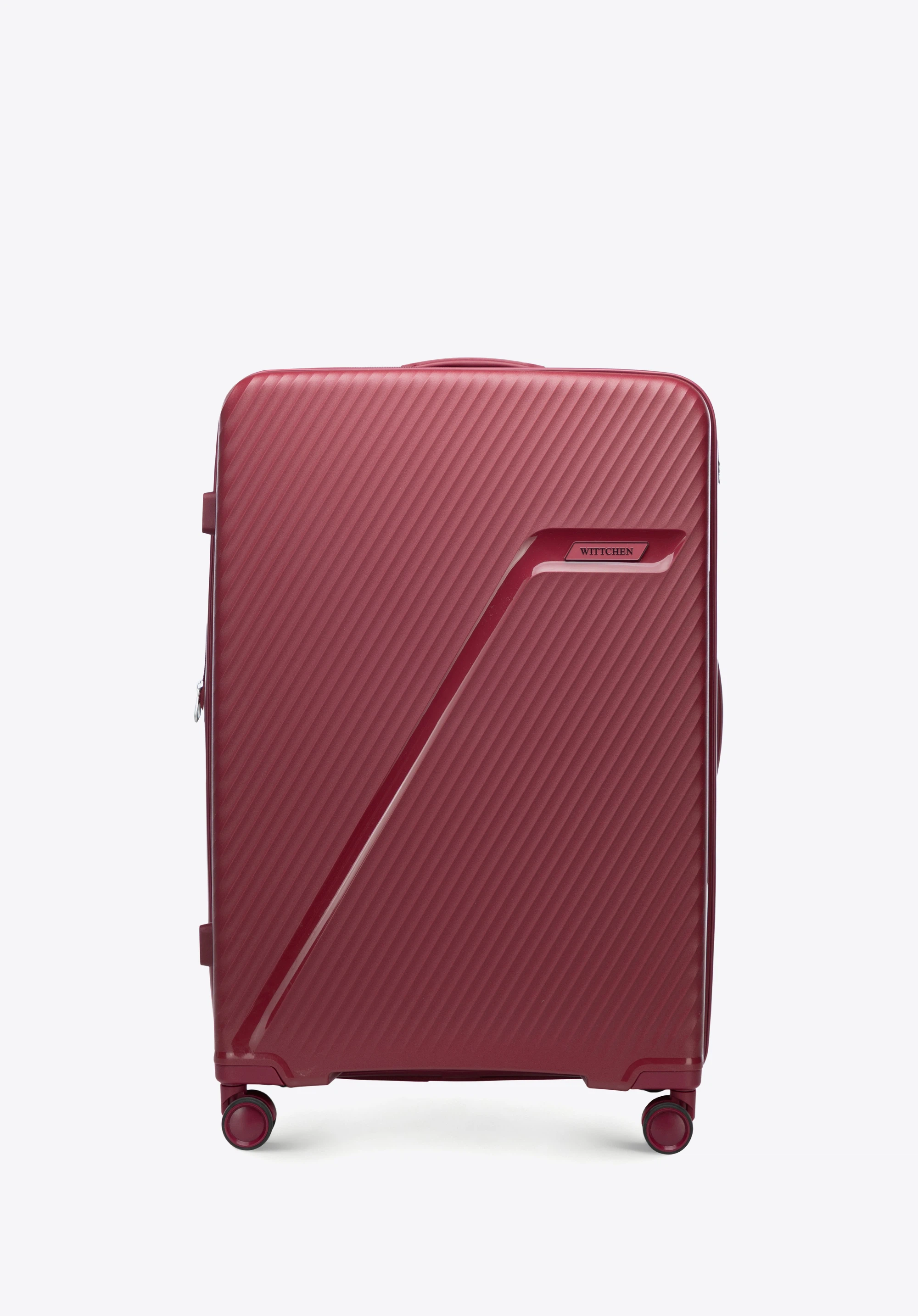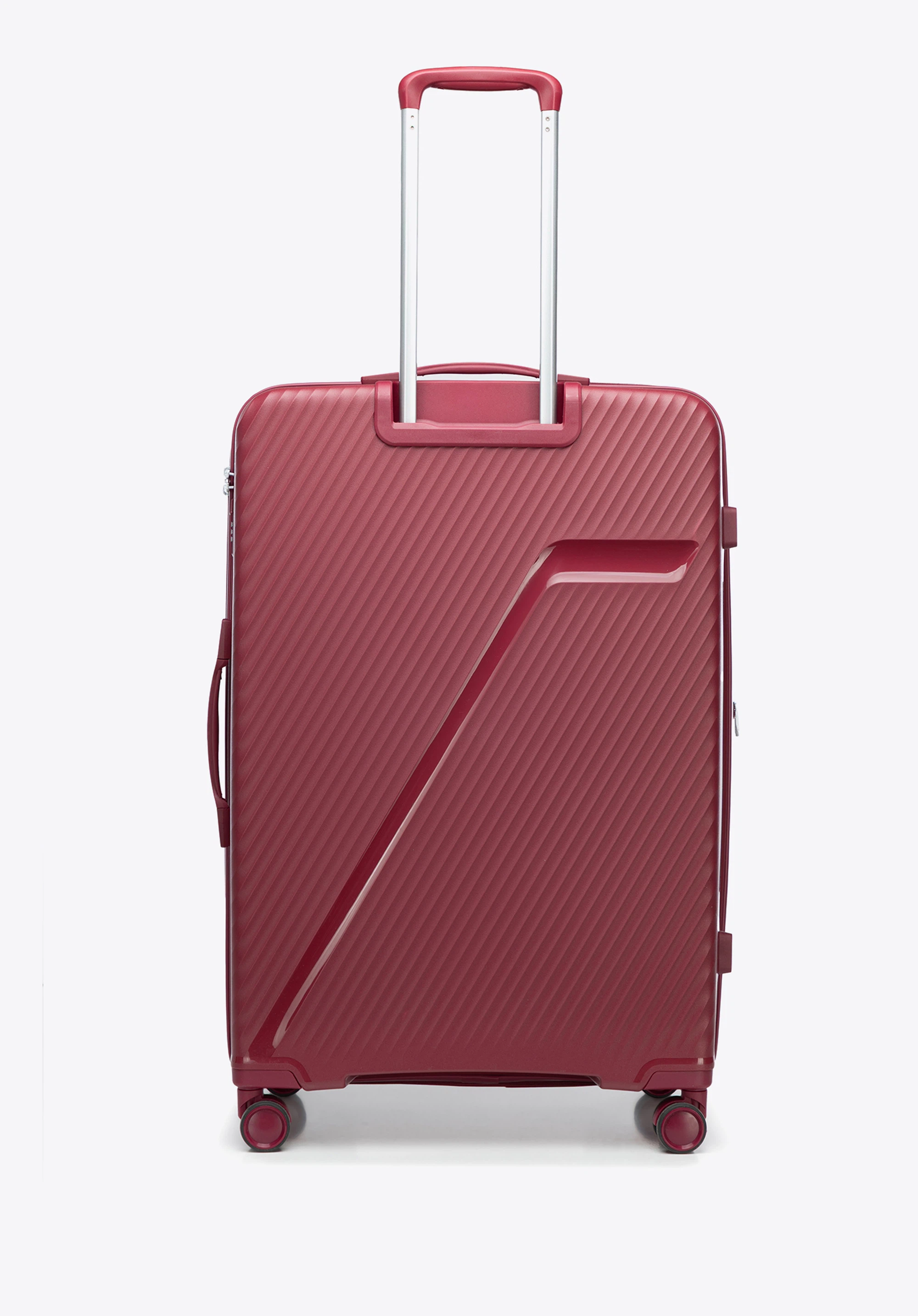 Duża walizka z polipropylenu w ukośne pasy bordowa