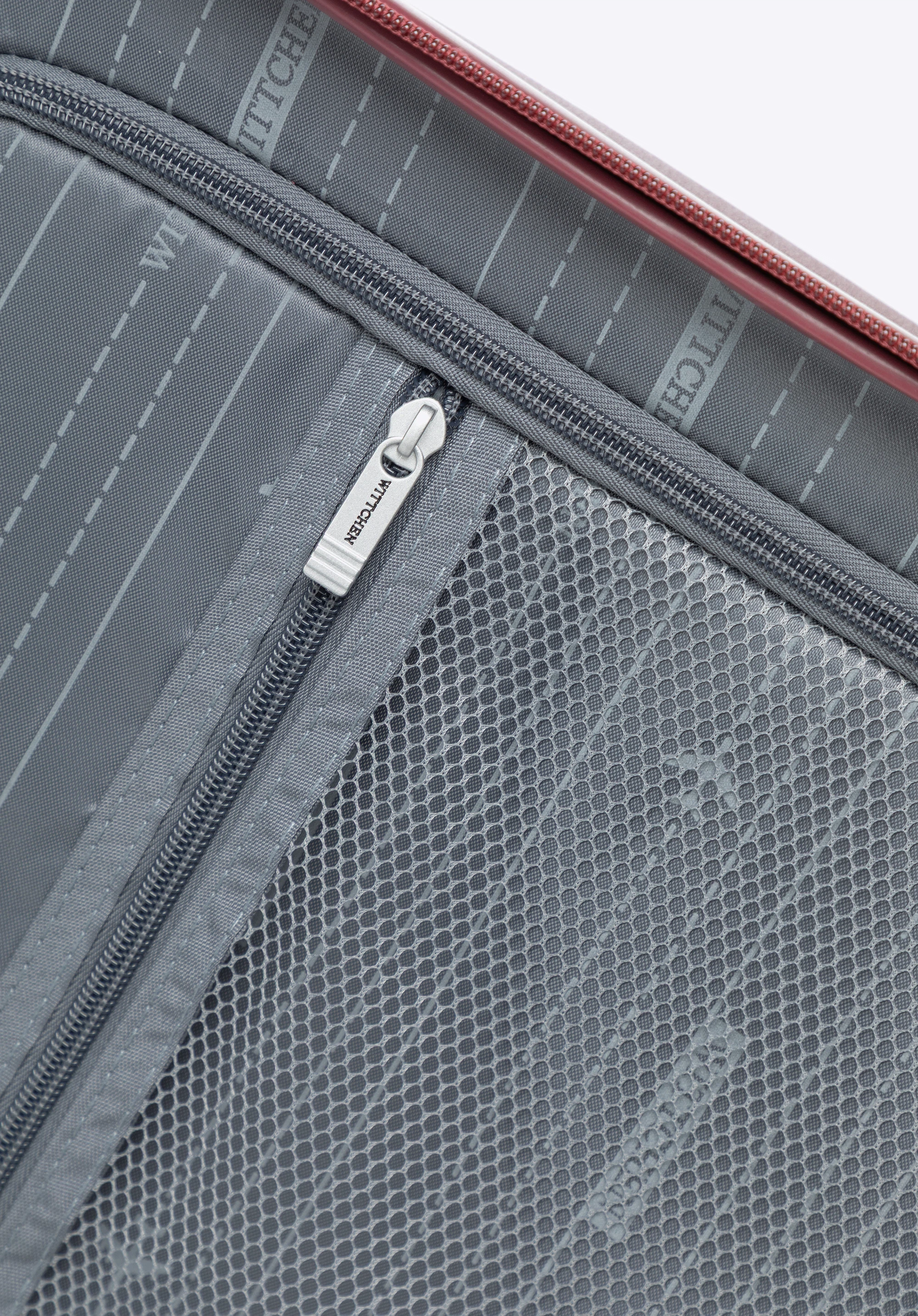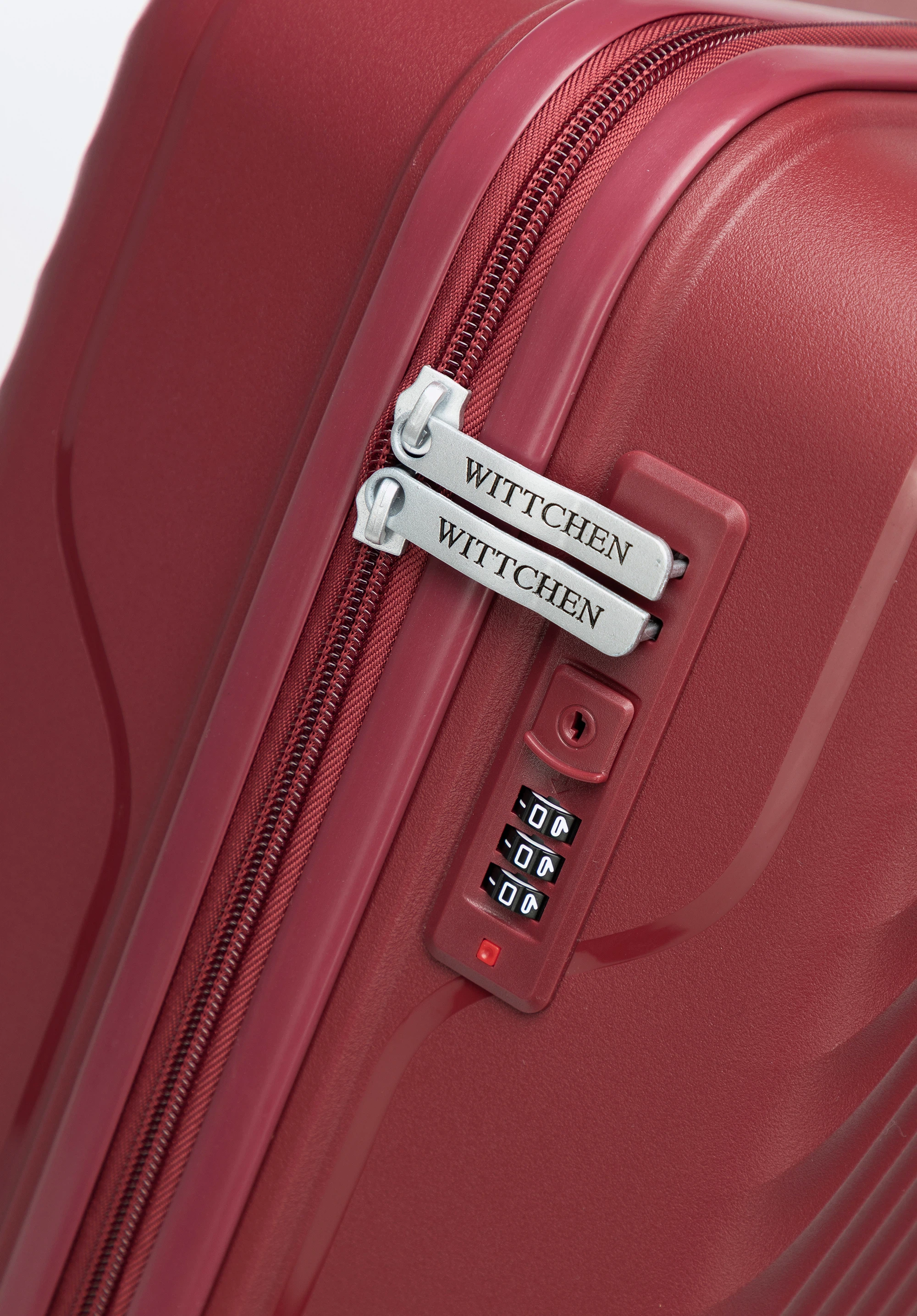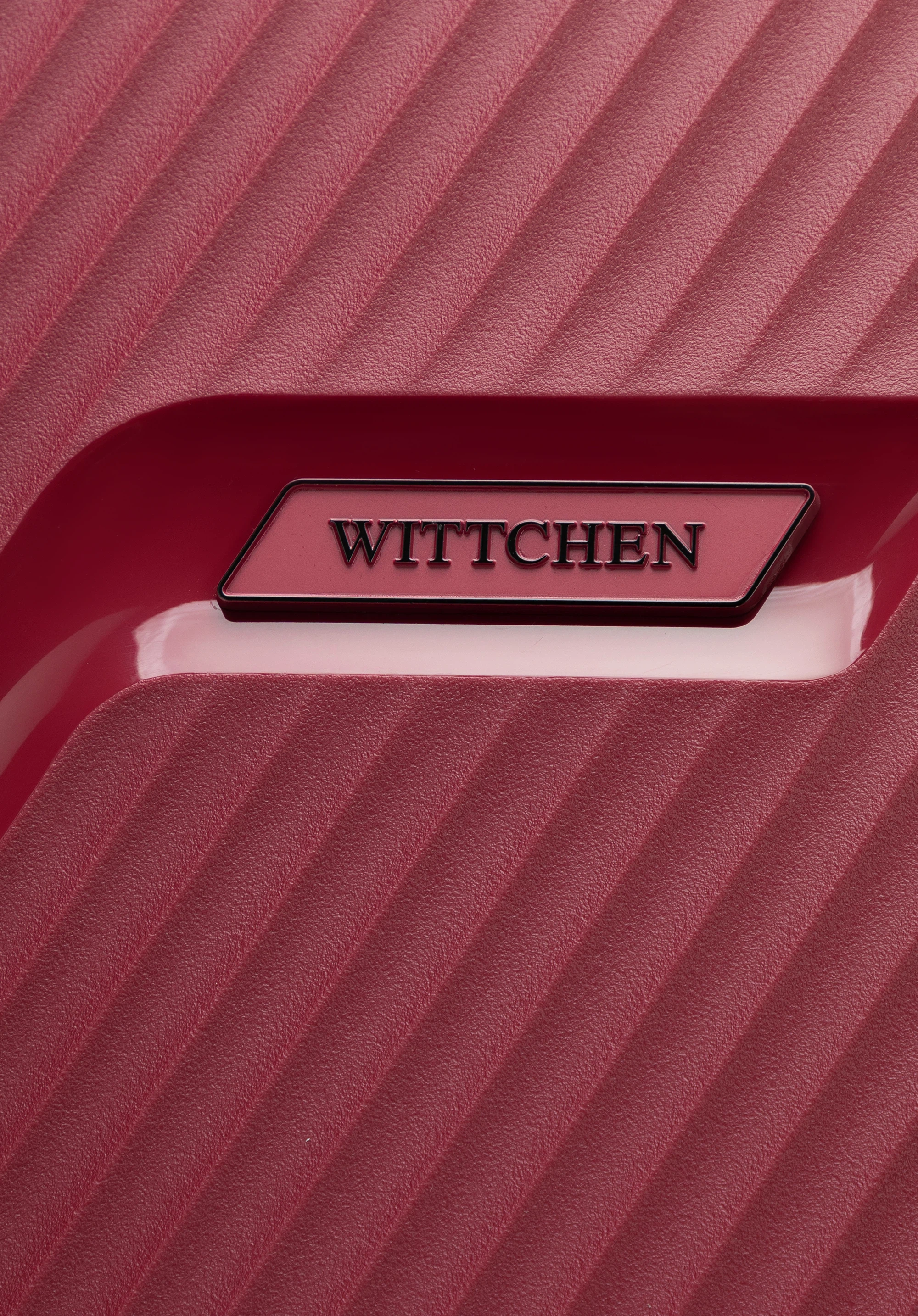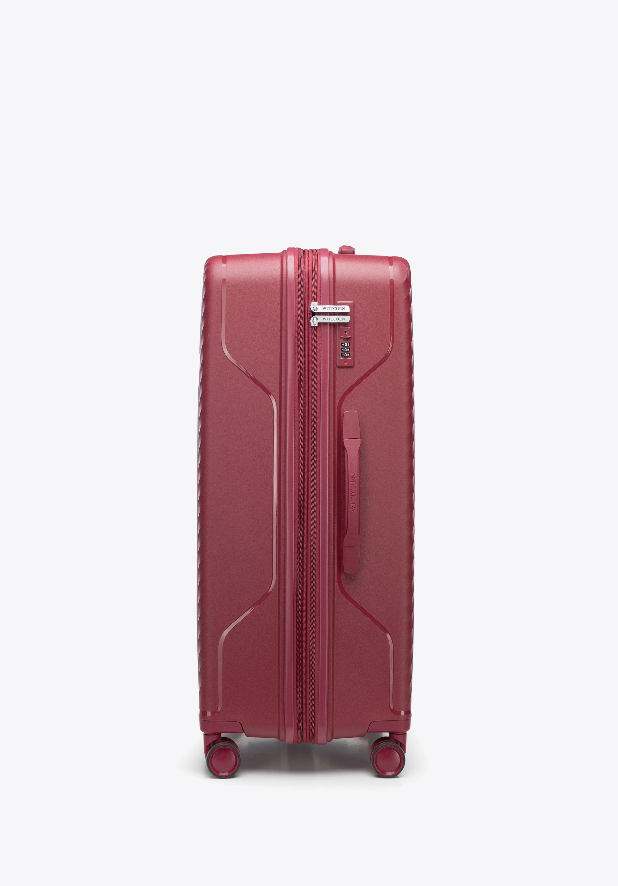 Duża walizka z polipropylenu w ukośne pasy bordowa