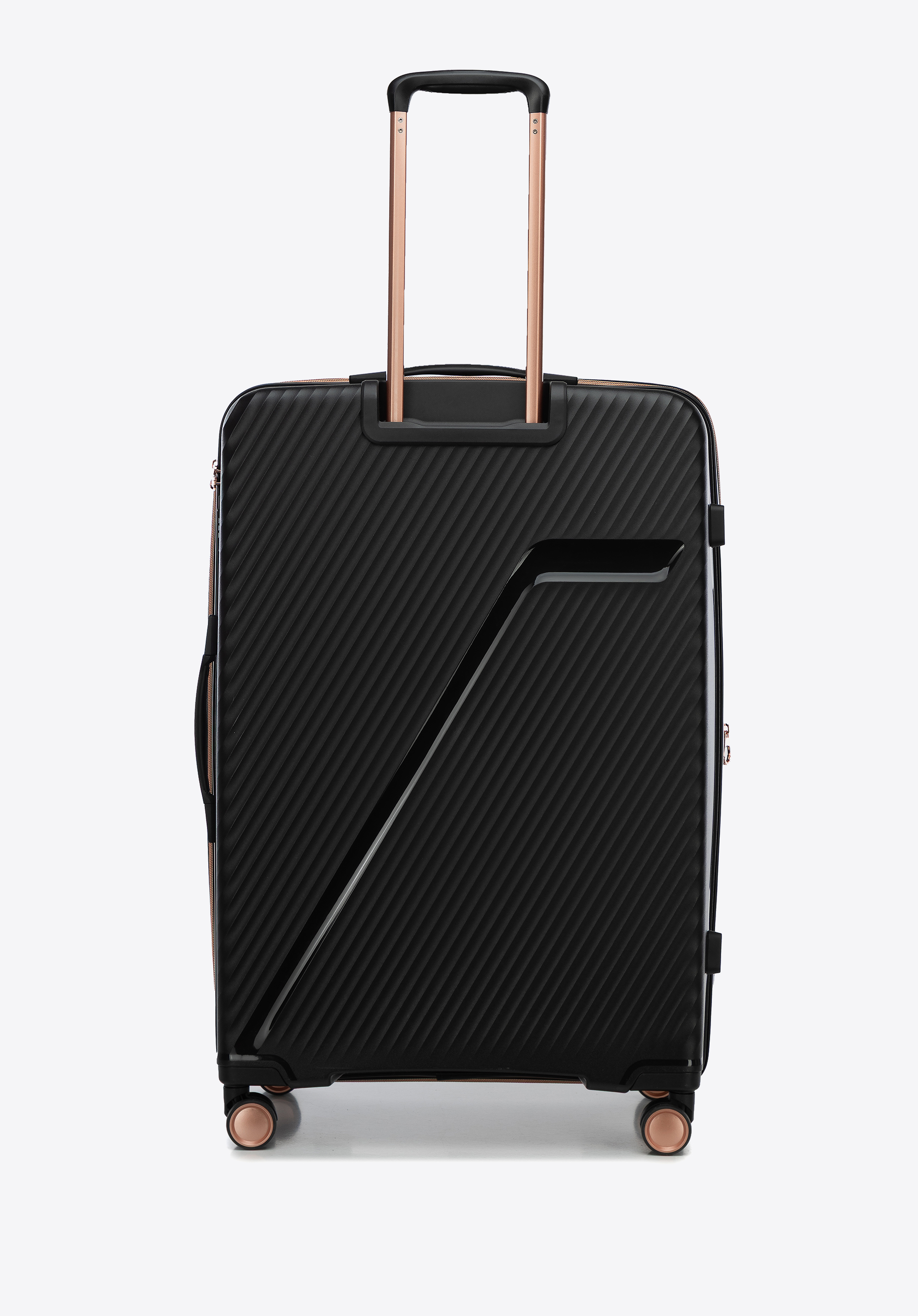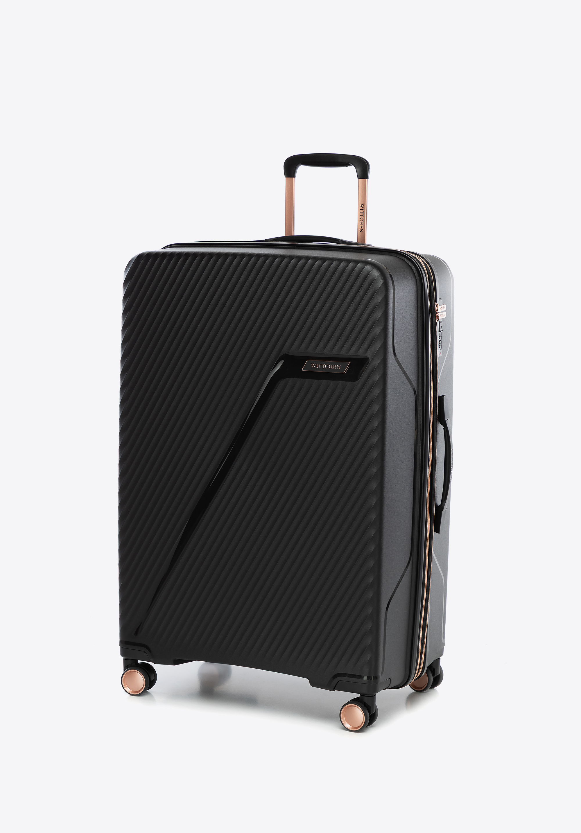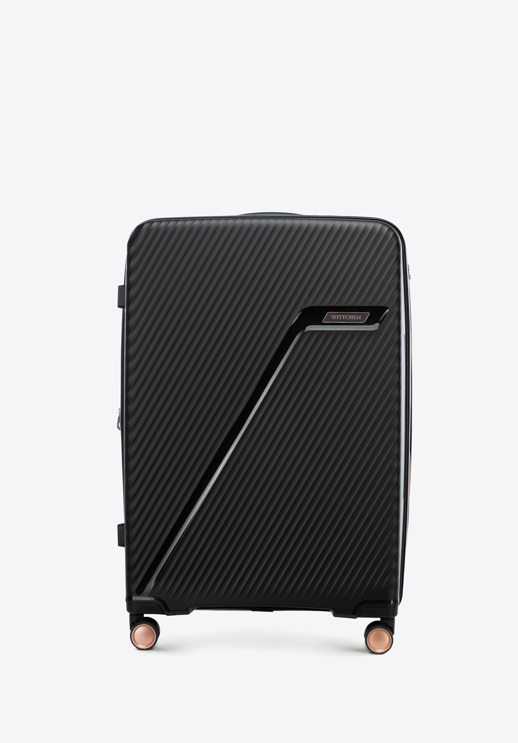 Duża walizka z polipropylenu w ukośne pasy czarno - złota