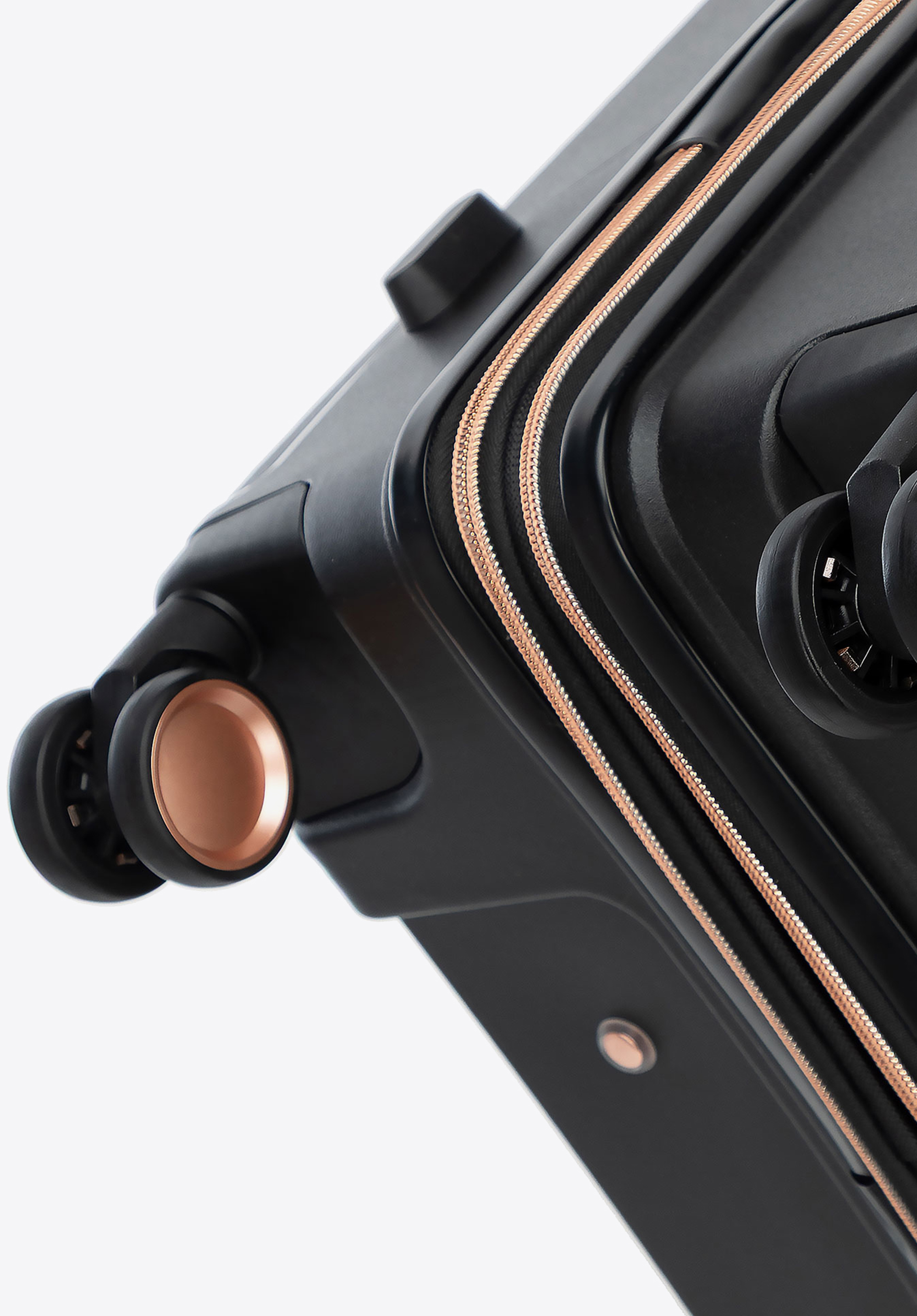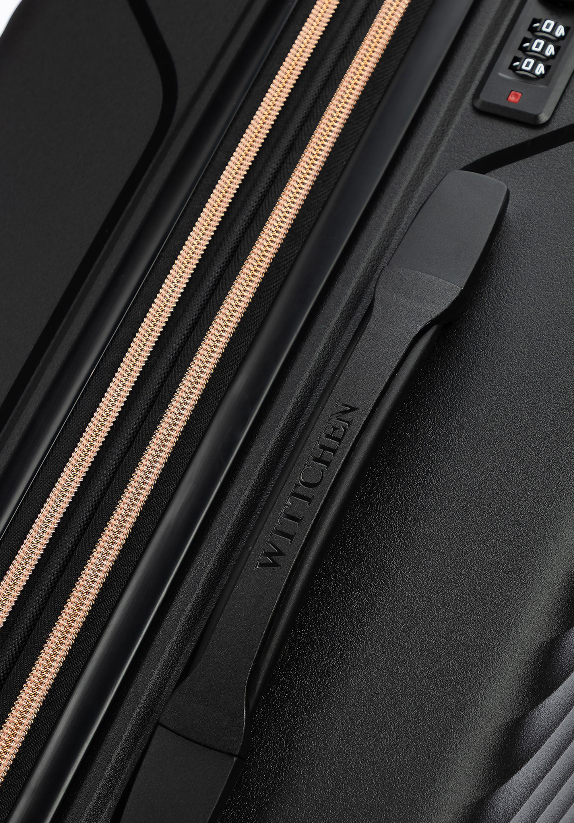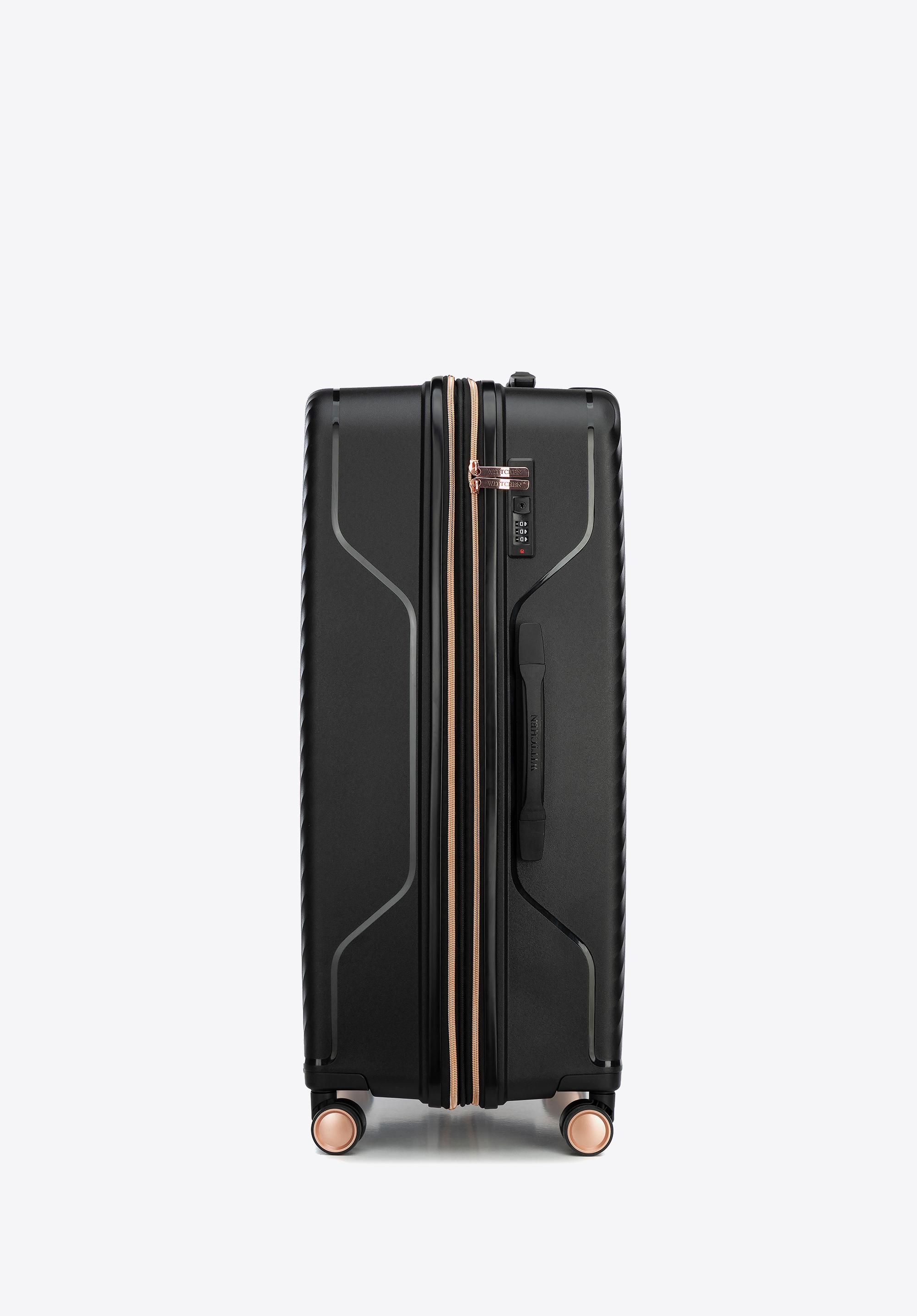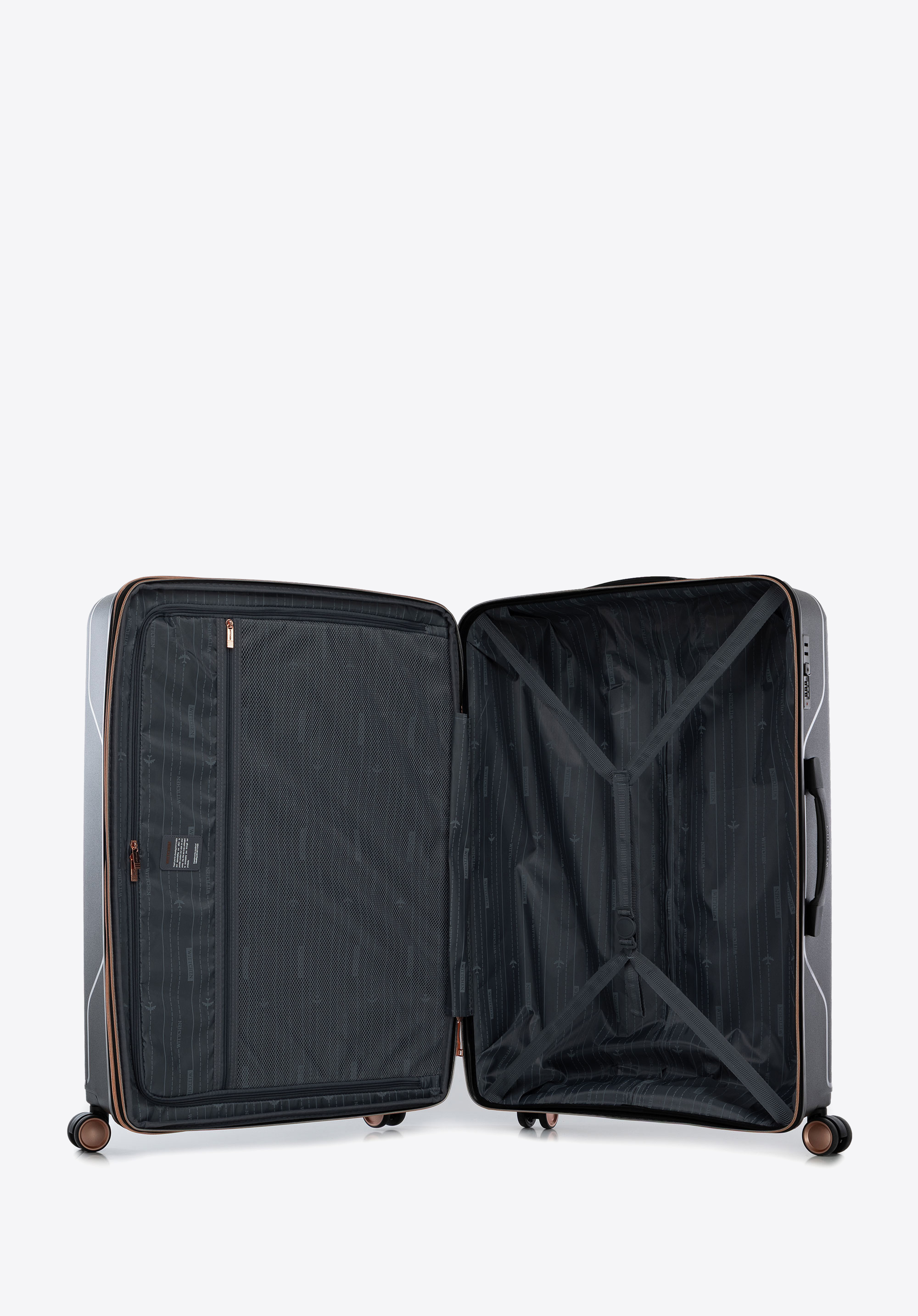 Duża walizka z polipropylenu w ukośne pasy czarno - złota