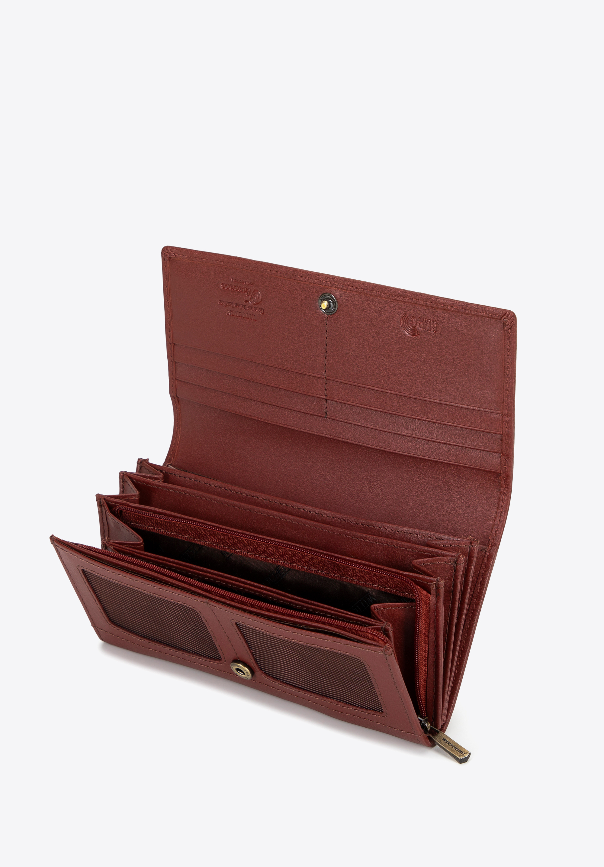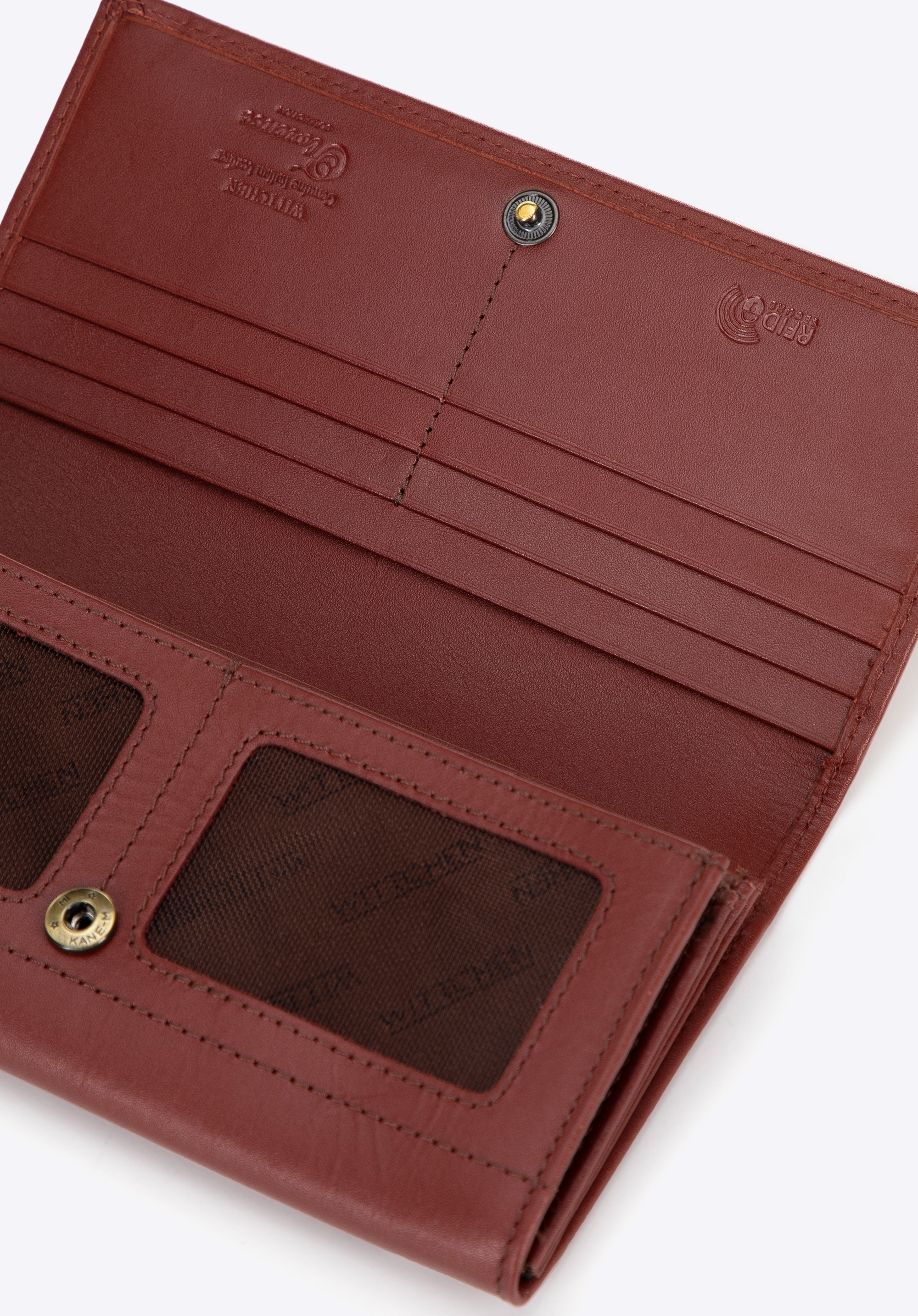 - Materiał: Portfel został wykonany ze skóry naturalnej, miłej w dotyku, która zachowuje swój piękny wygląd na długi czas.