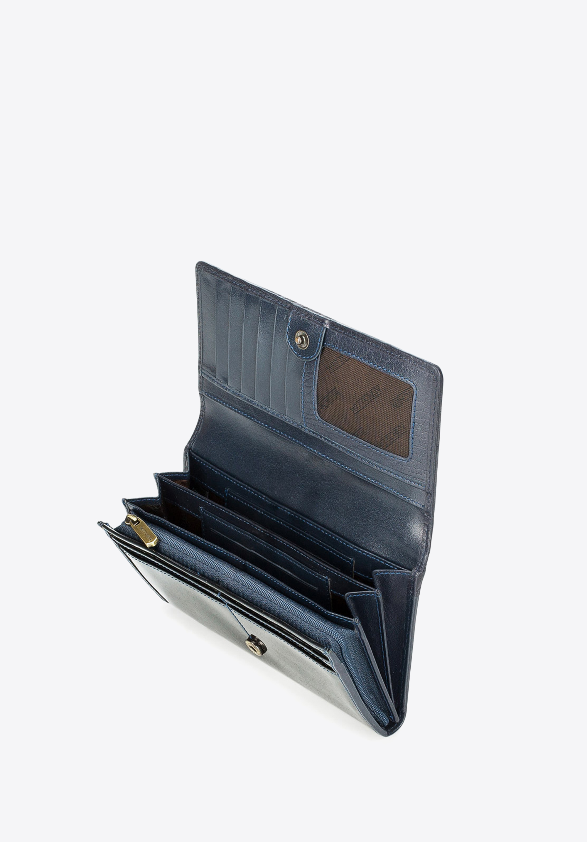 Duży portfel damski ze skóry lakierowanej to doskonały wybór do pracy i na podróże, gdy potrzebujesz maksymalnej organizacji w luksusowej oprawie. Lakierowana skóra, pojemne wnętrze na karty i dokumenty oraz ochrona RFID łączą efektowny wygląd z bezpieczeństwem i wygodą użytkowania.