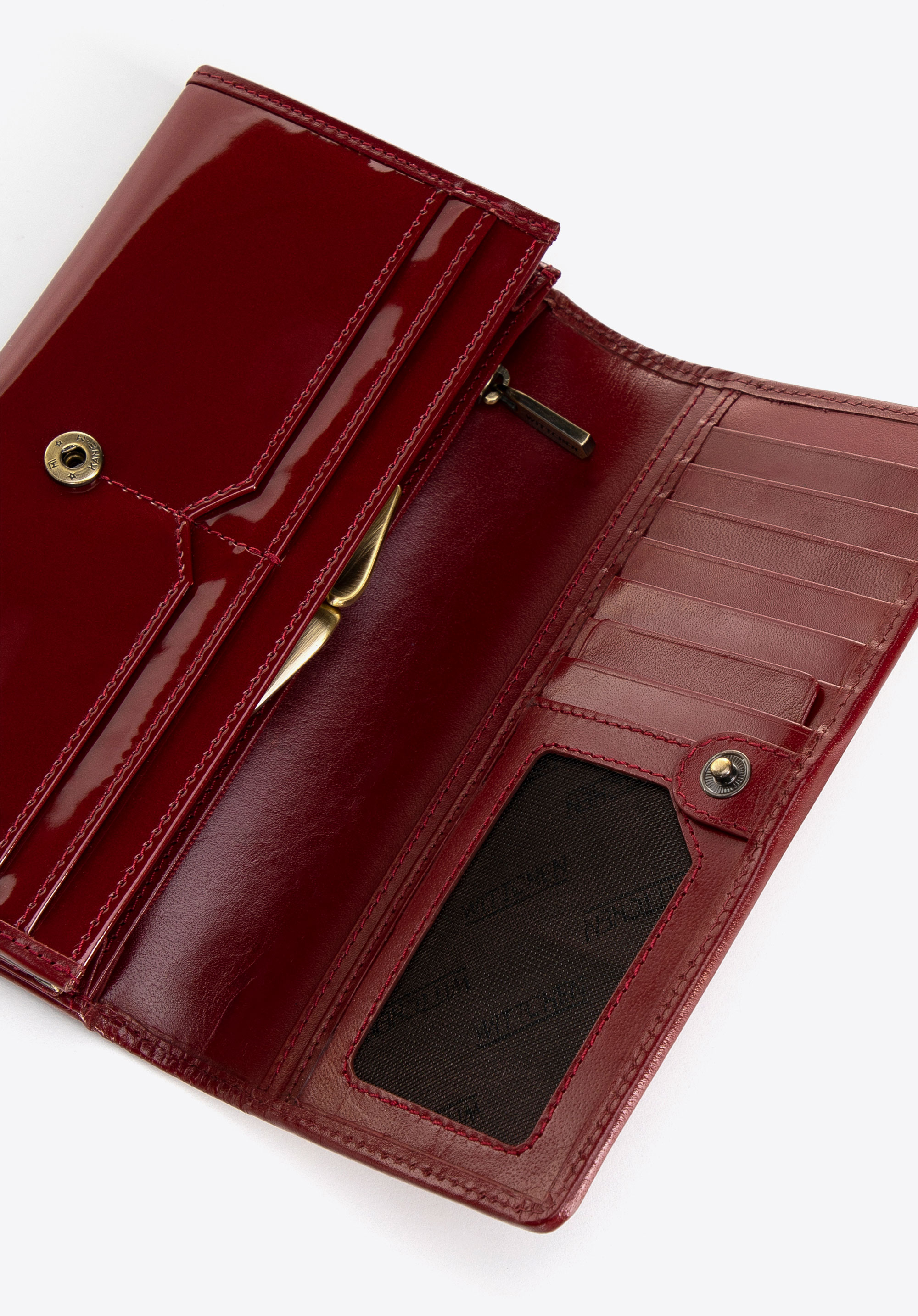 Portfel damski z kolekcji Florence to połączenie elegancji i funkcjonalności, wykonany z najwyższej jakości skóry naturalnej. Zewnętrzna powierzchnia portfela została pokryta lakierowaną skórą, która nadaje klasycznej kolorystyce subtelny połysk. Wnętrze wykończone matową skórą z wyraźnymi jarzmowaniami, co podkreśla jego elegancki charakter.